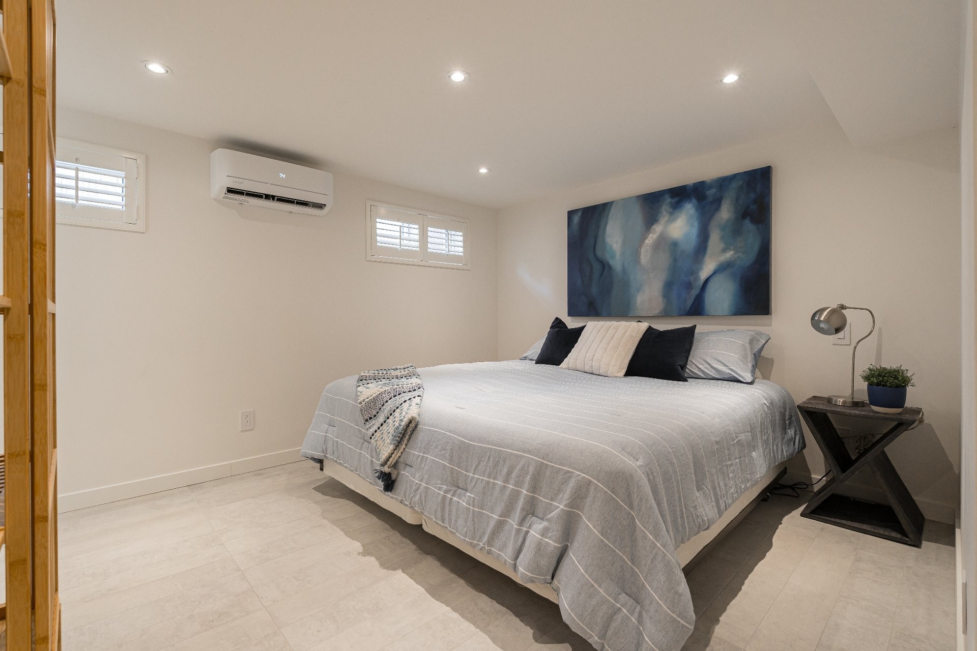 * Thermopompe centrale pour le rez-de-chaussée et thermopompes murales dans les chambres du sous-sol