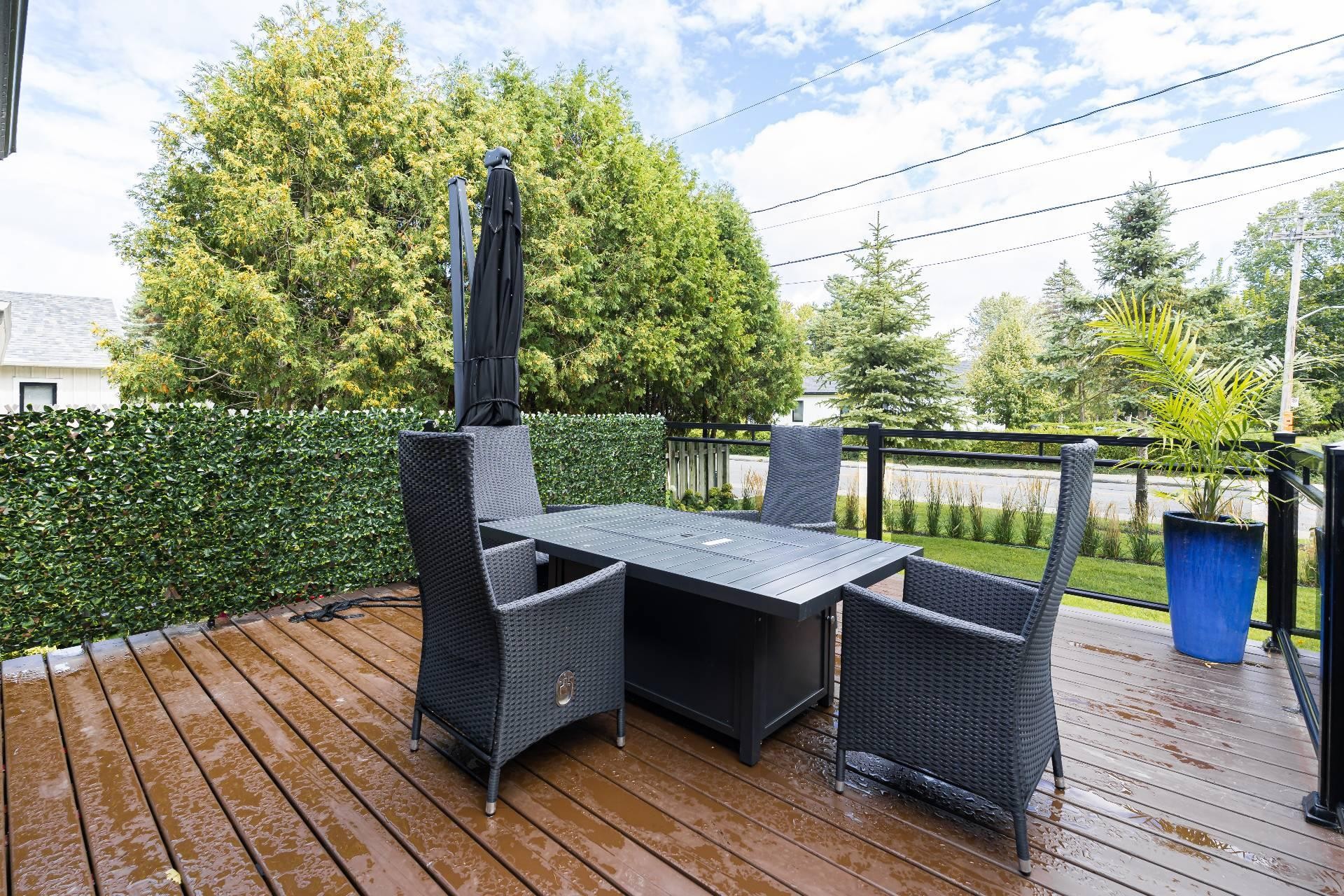 Extérieur: Garage spacieux avec rangement; Allée circulaire; Terrasse en bois sur le côté; Cour arrière privée avec terrasse, parfaite pour accueillir un spa