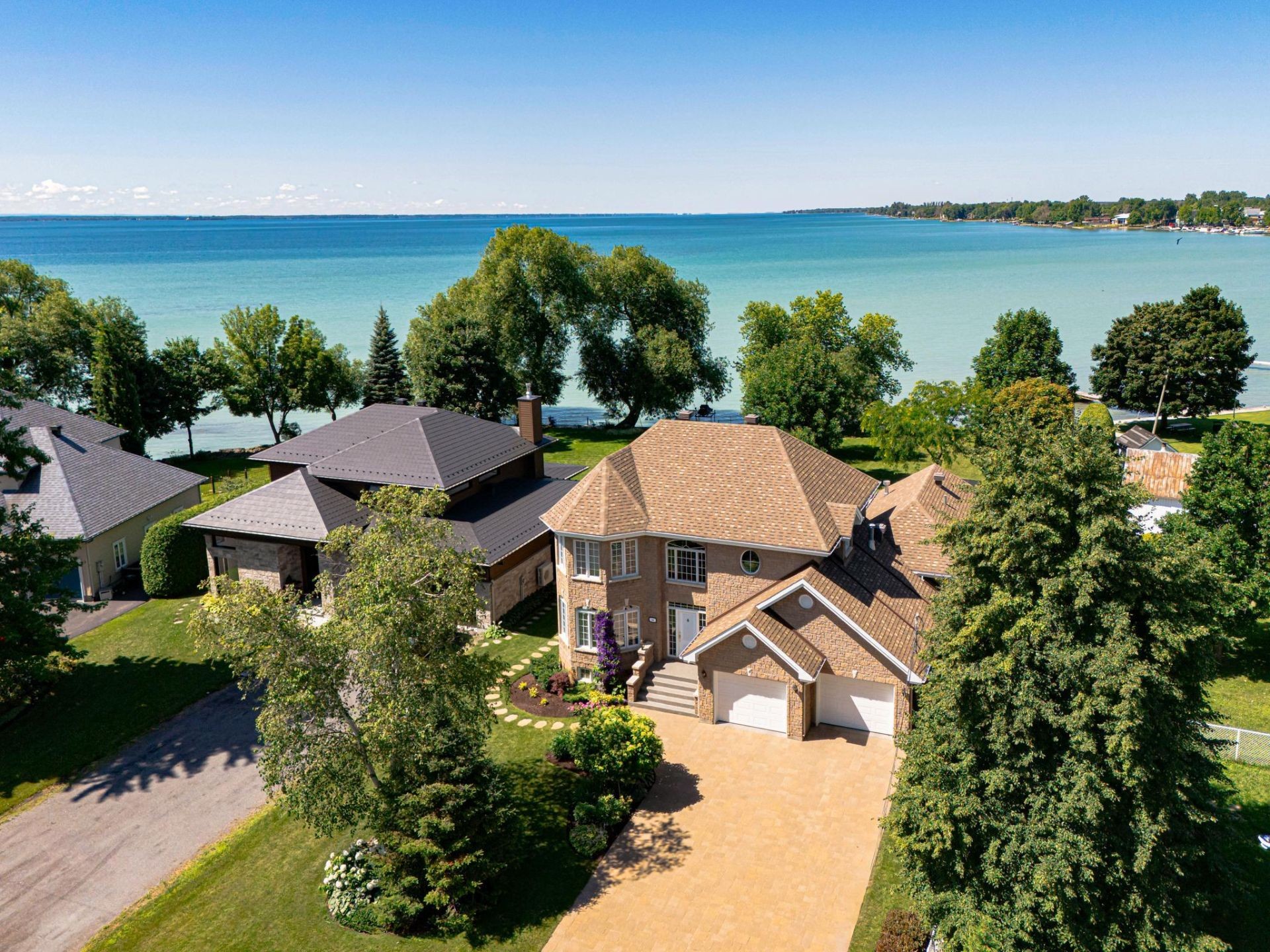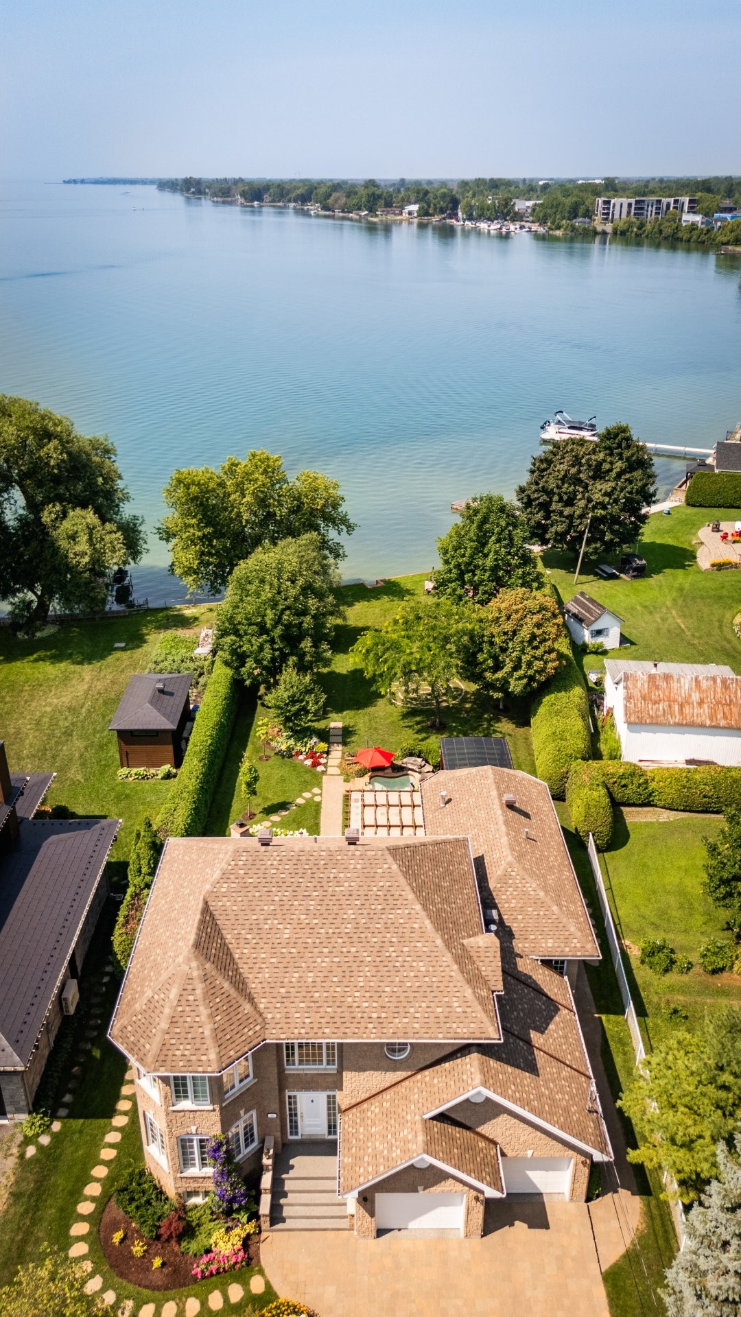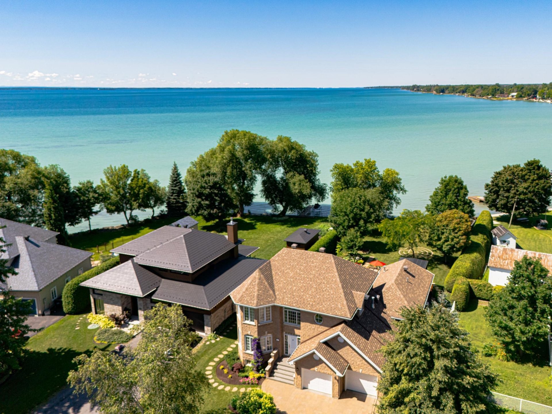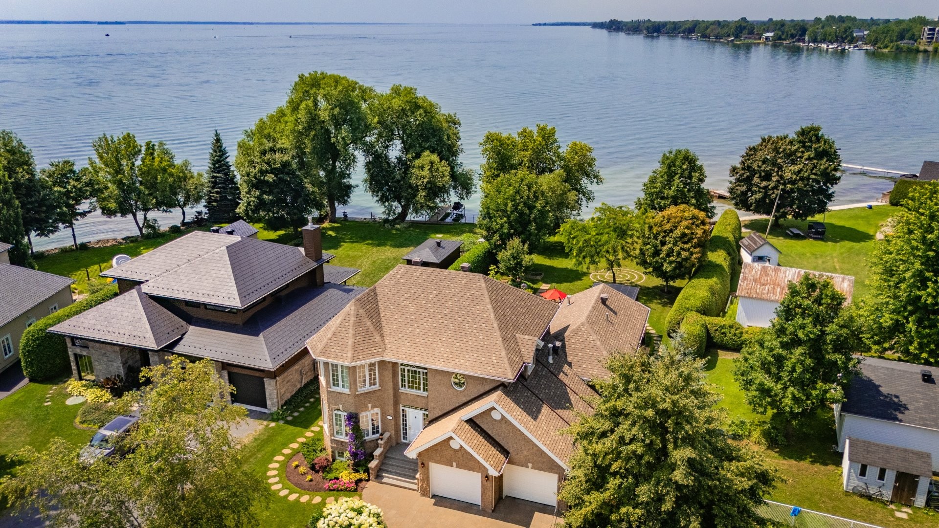 Rare et magnifique résidence au bord de l'eau entièrement en pierre,nichée sur un cul-de-sac dans une baie du lac Saint-François,où les résidents profitent d'eaux calmes,claires,peu profondes et d'un fond sablonneux.La propriété offre 581 370,00 $ en rénovations de qualité et 3 244 pi² d'espace de vie élégant, incluant 5 CACs, 3,5 SDBs, planchers & escalier en bois franc,grande salle, 2 salles familiales, salle à manger, cuisine de chef, dinette et suite principale. Parmi ses atouts :grand garage double,entrée en pavé uni,patio avec foyer en brique,pergola, terrasse couverte à moustiquaires automatisées, spa creusé, et cabanon au bord du lac.