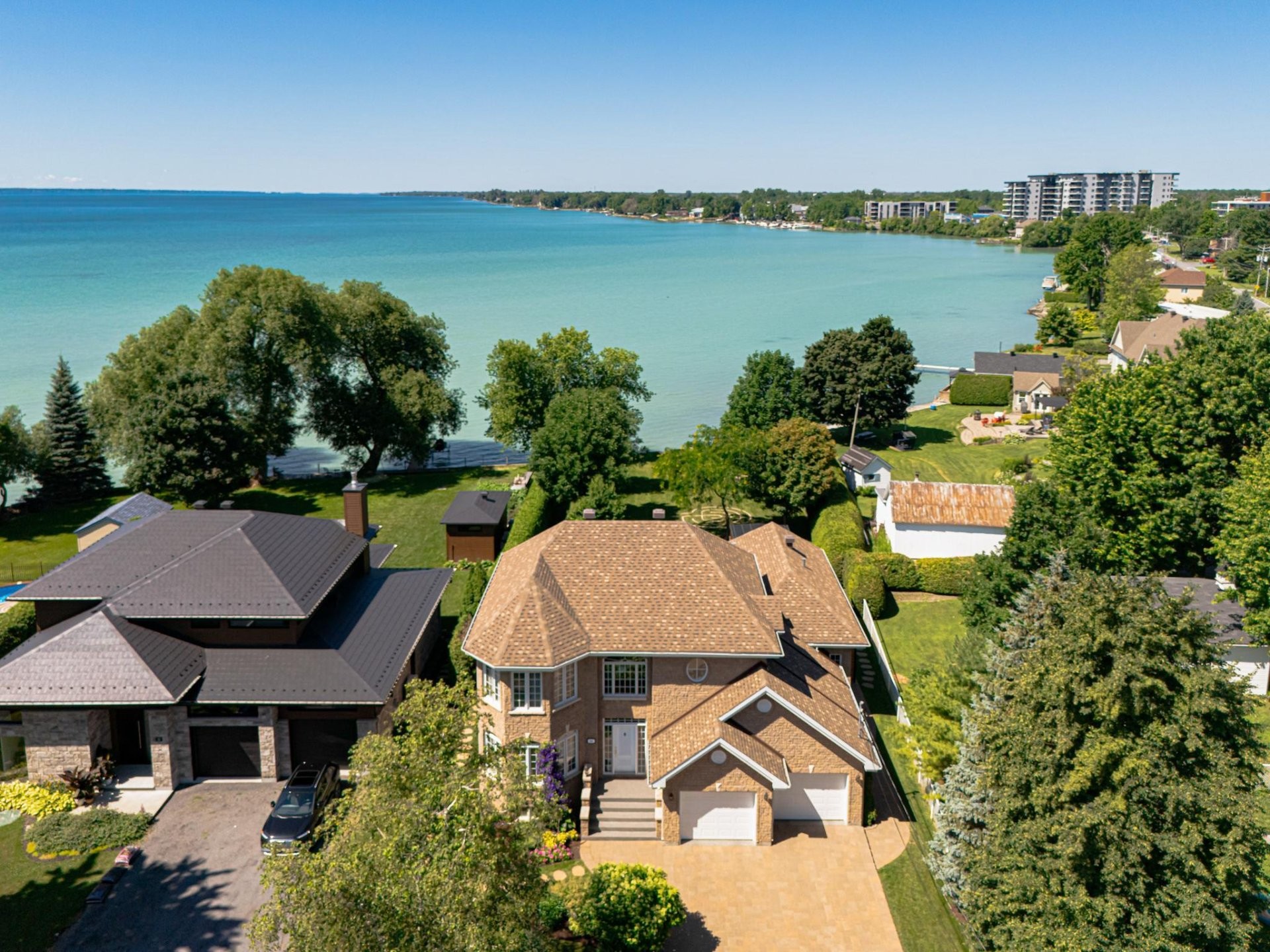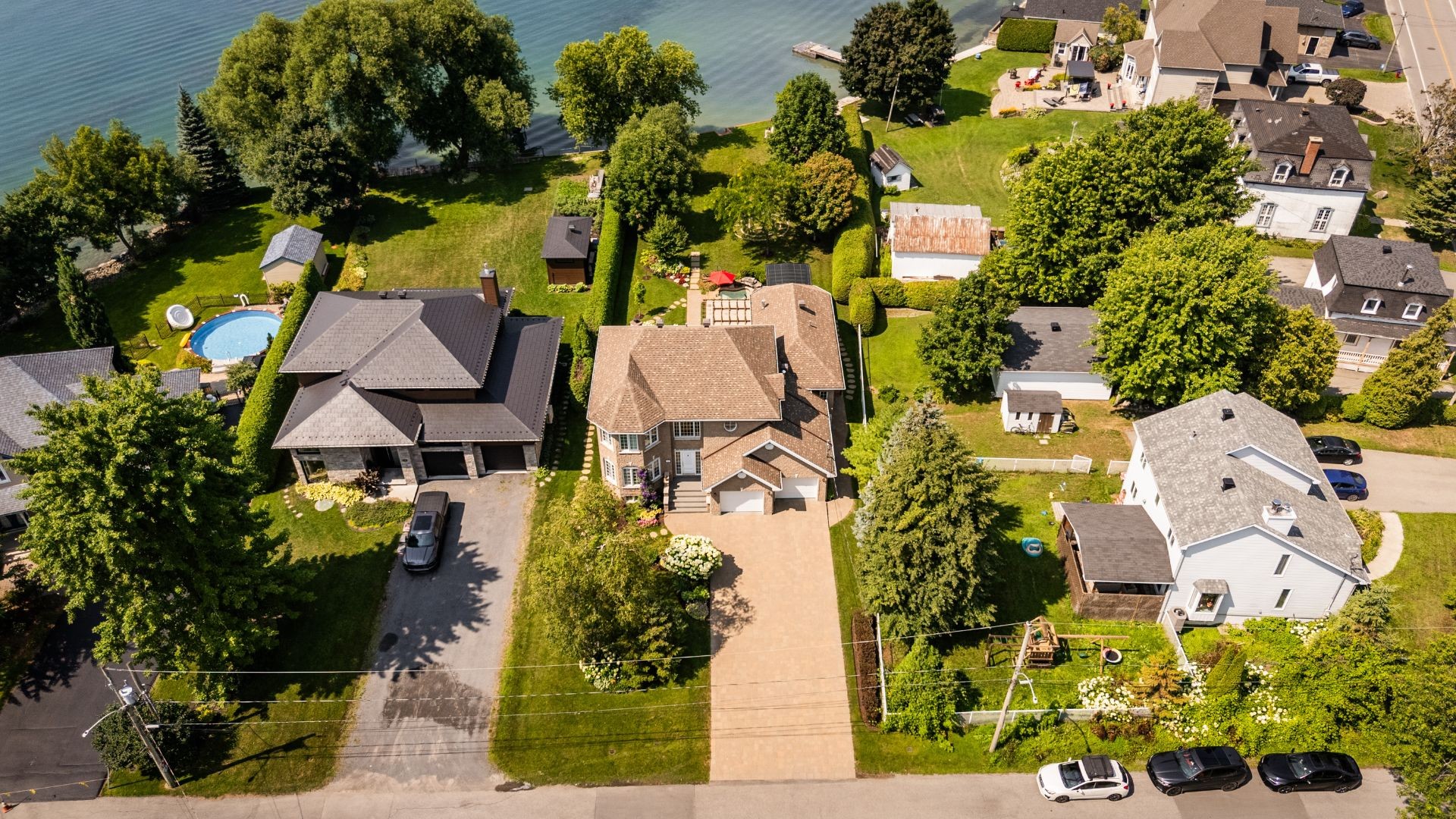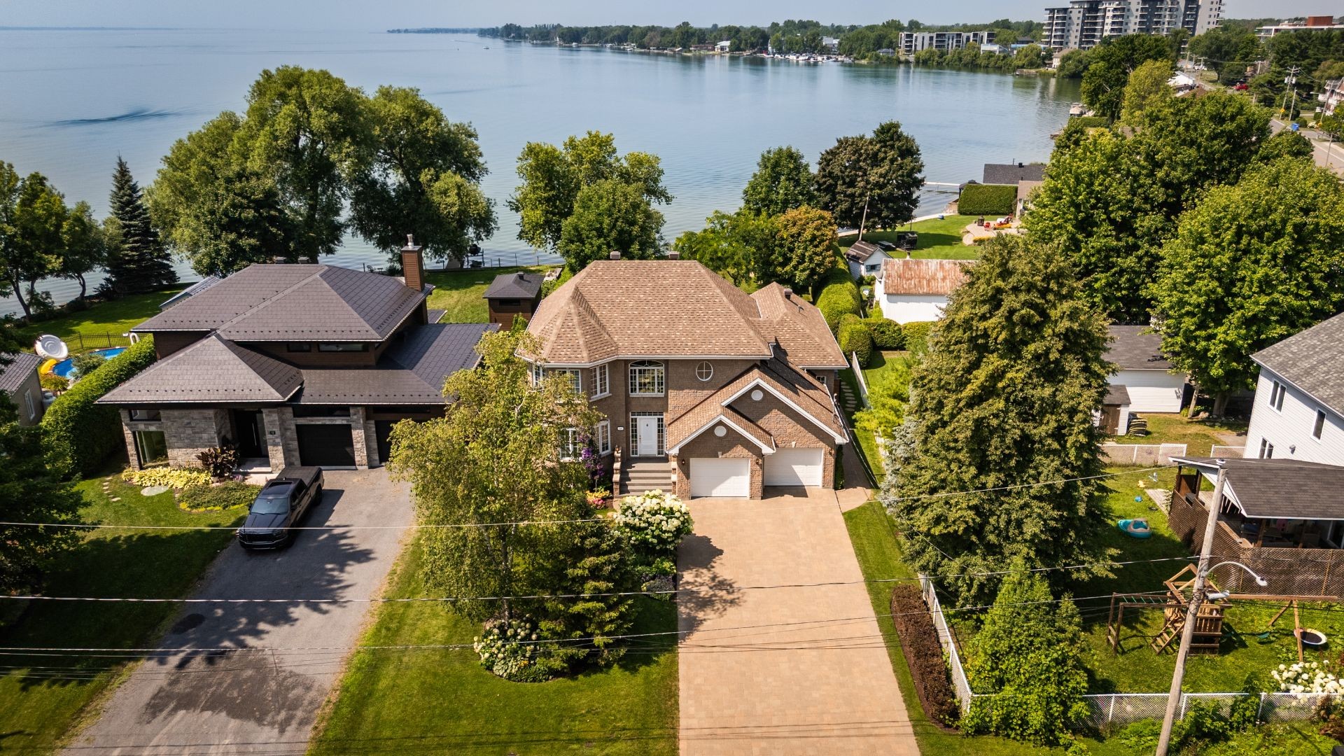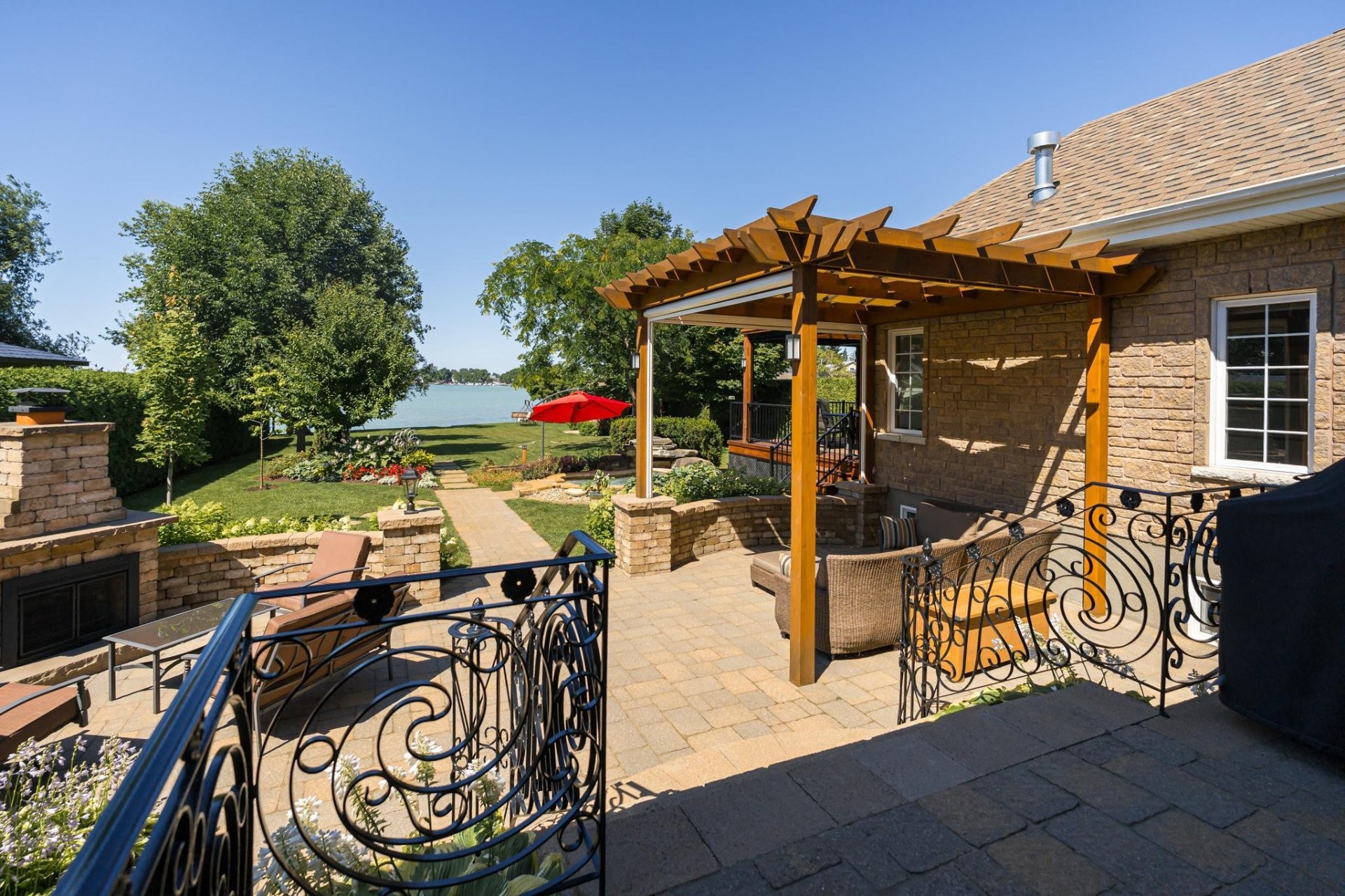 Rare et magnifique résidence au bord de l'eau entièrement en pierre,nichée sur un cul-de-sac dans une baie du lac Saint-François,où les résidents profitent d'eaux calmes,claires,peu profondes et d'un fond sablonneux.La propriété offre 581 370,00 $ en rénovations de qualité et 3 244 pi² d'espace de vie élégant, incluant 5 CACs, 3,5 SDBs, planchers & escalier en bois franc,grande salle, 2 salles familiales, salle à manger, cuisine de chef, dinette et suite principale. Parmi ses atouts :grand garage double,entrée en pavé uni,patio avec foyer en brique,pergola, terrasse couverte à moustiquaires automatisées, spa creusé, et cabanon au bord du lac.