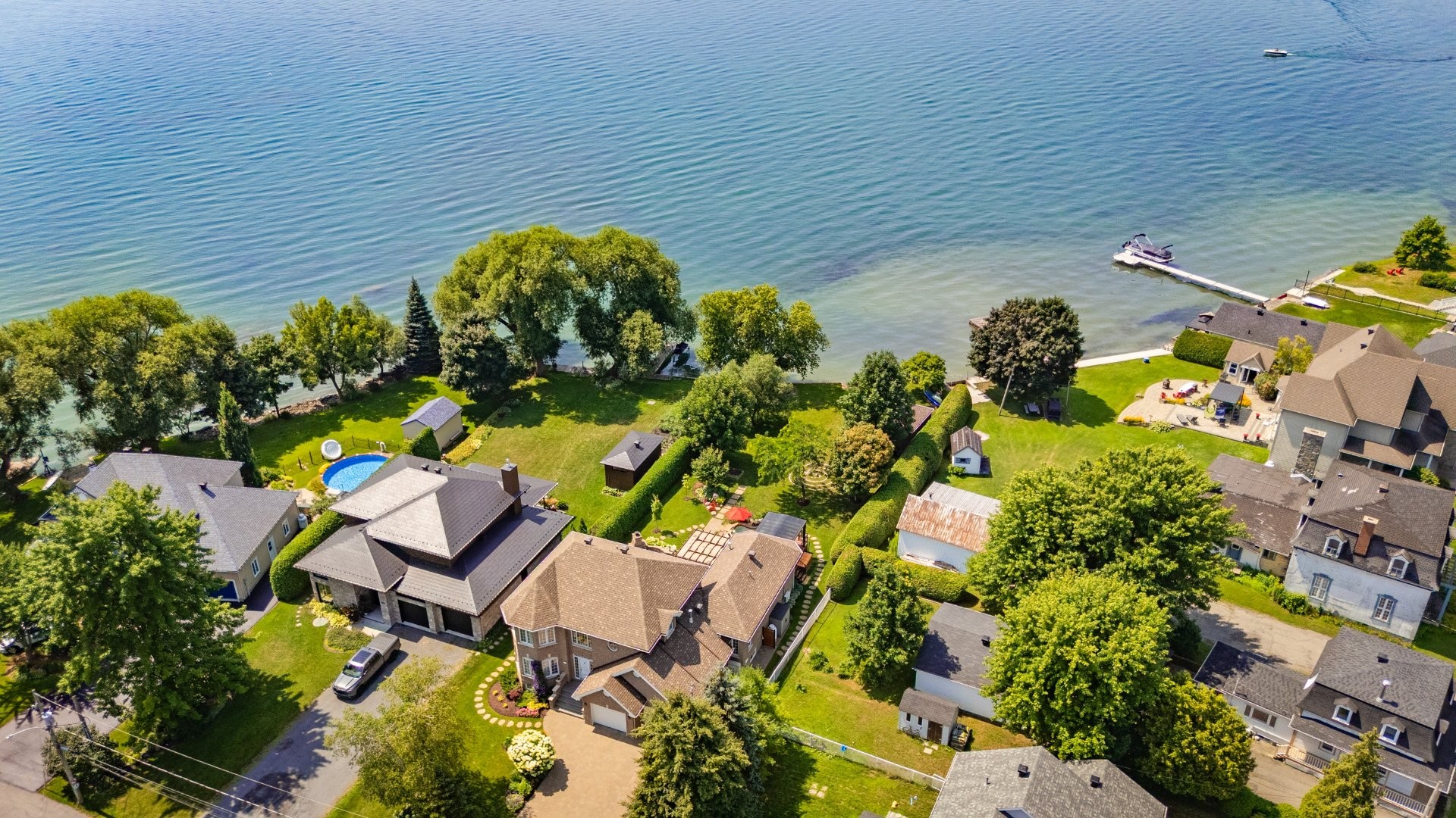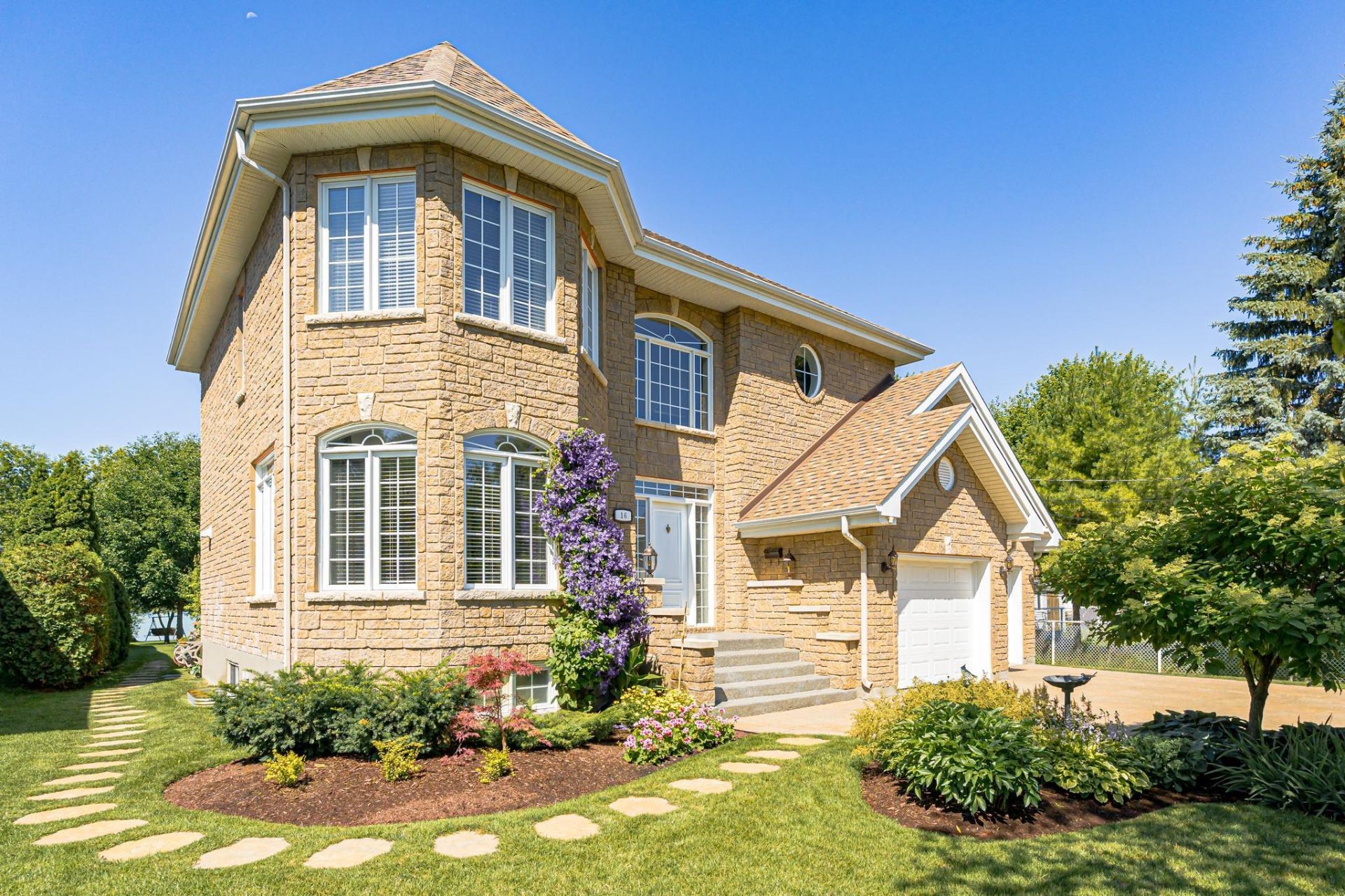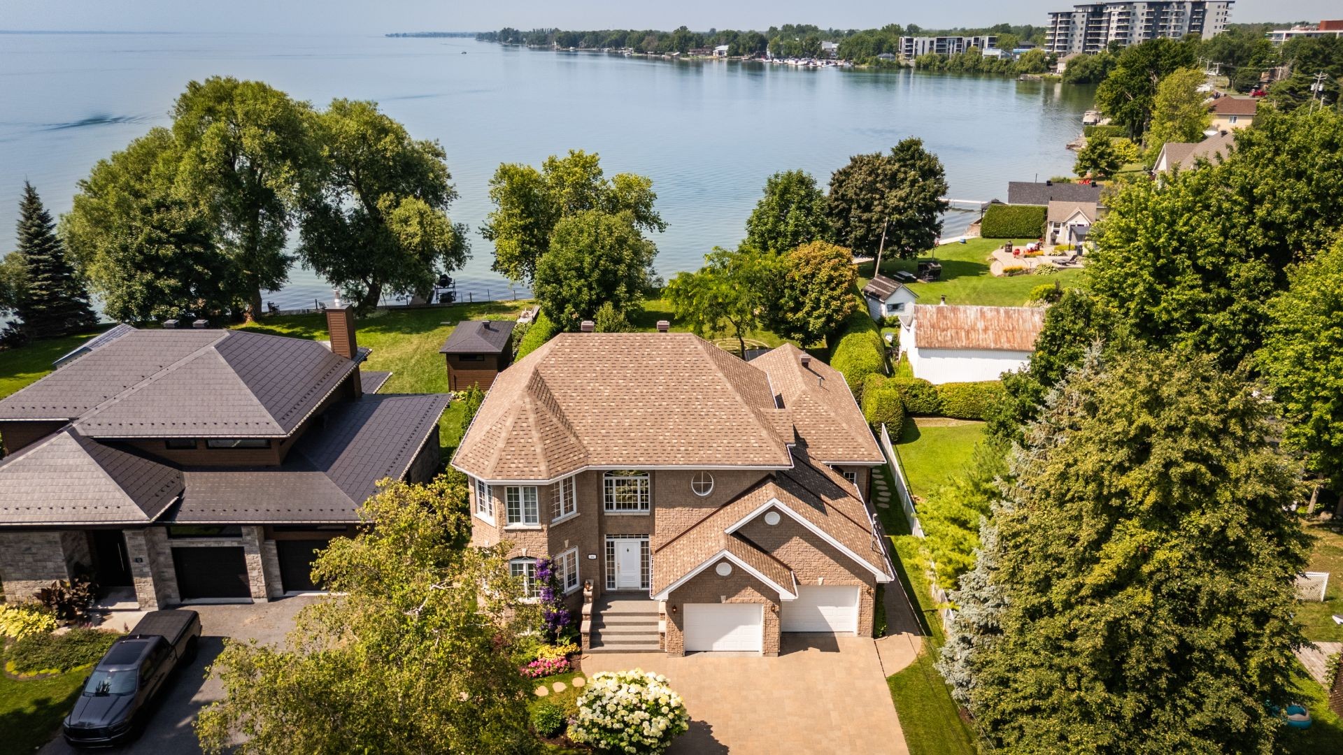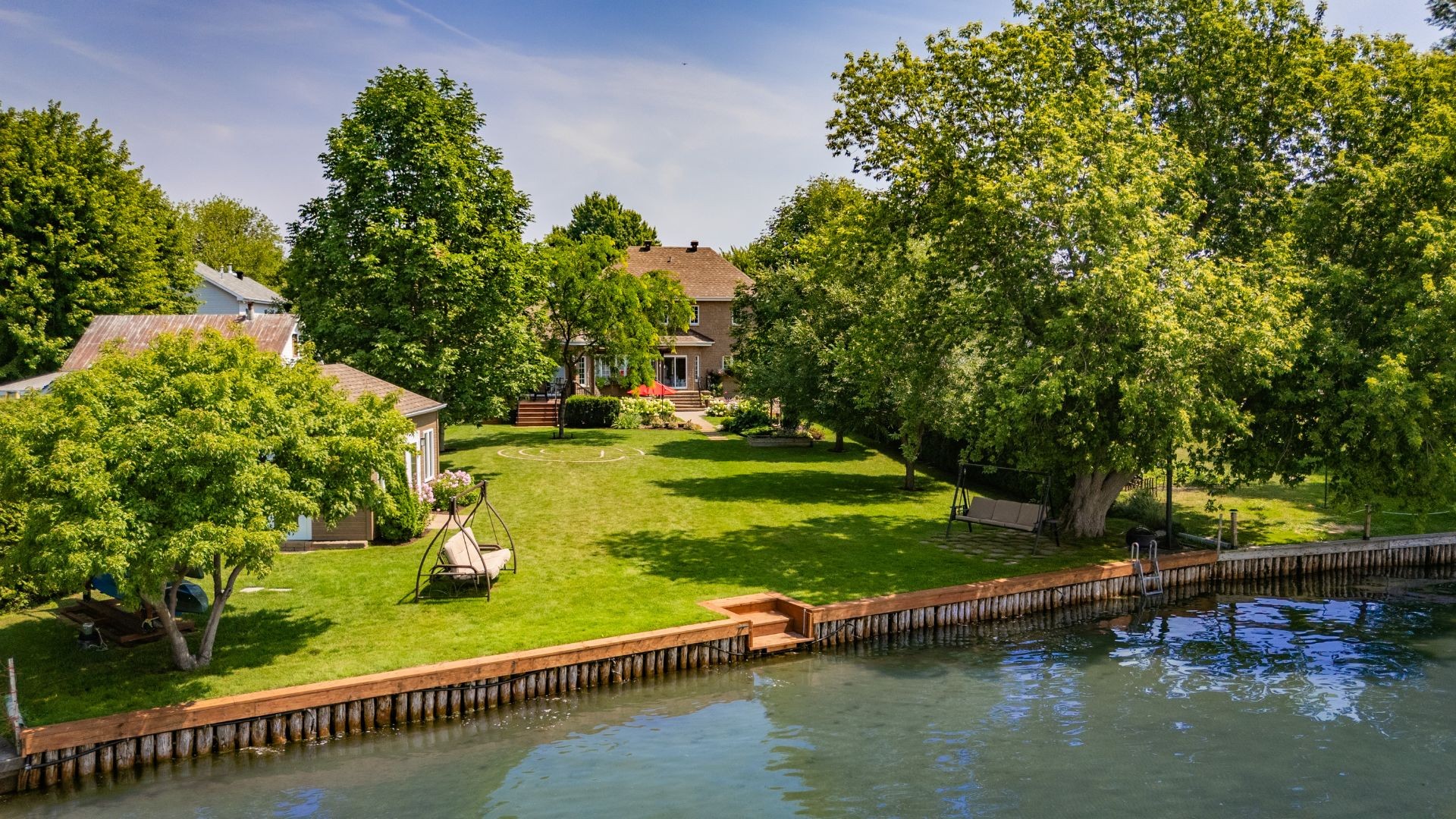 Rare et magnifique résidence au bord de l'eau entièrement en pierre,nichée sur un cul-de-sac dans une baie du lac Saint-François,où les résidents profitent d'eaux calmes,claires,peu profondes et d'un fond sablonneux.La propriété offre 581 370,00 $ en rénovations de qualité et 3 244 pi² d'espace de vie élégant, incluant 5 CACs, 3,5 SDBs, planchers & escalier en bois franc,grande salle, 2 salles familiales, salle à manger, cuisine de chef, dinette et suite principale. Parmi ses atouts :grand garage double,entrée en pavé uni,patio avec foyer en brique,pergola, terrasse couverte à moustiquaires automatisées, spa creusé, et cabanon au bord du lac.