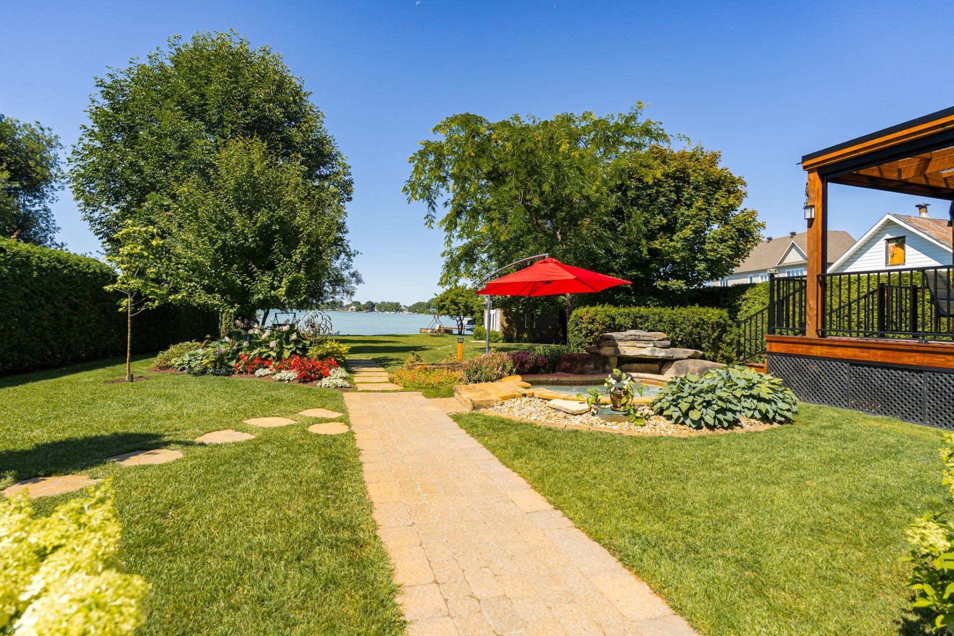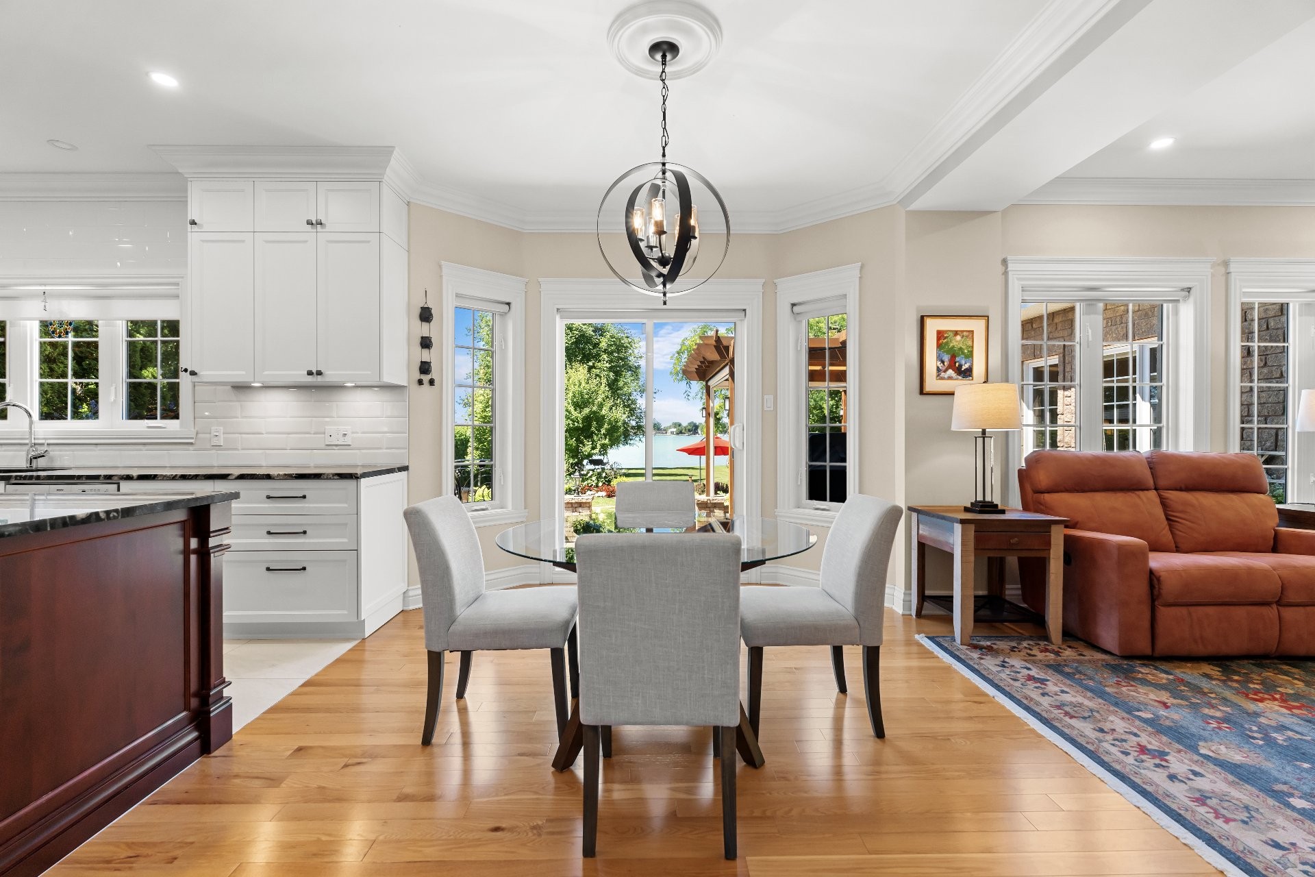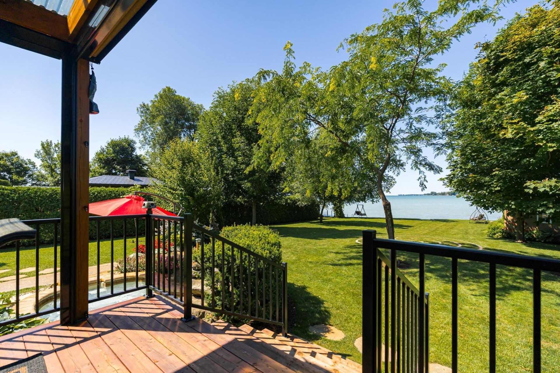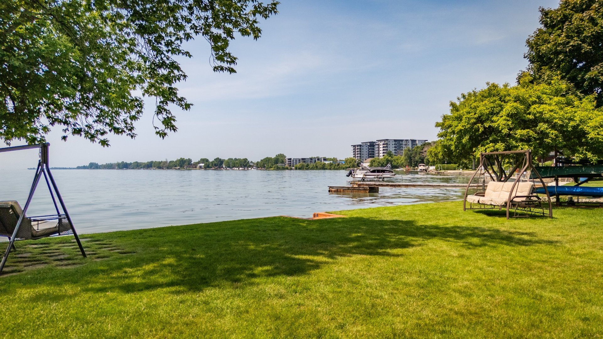 Rare et magnifique résidence au bord de l'eau entièrement en pierre,nichée sur un cul-de-sac dans une baie du lac Saint-François,où les résidents profitent d'eaux calmes,claires,peu profondes et d'un fond sablonneux.La propriété offre 581 370,00 $ en rénovations de qualité et 3 244 pi² d'espace de vie élégant, incluant 5 CACs, 3,5 SDBs, planchers & escalier en bois franc,grande salle, 2 salles familiales, salle à manger, cuisine de chef, dinette et suite principale. Parmi ses atouts :grand garage double,entrée en pavé uni,patio avec foyer en brique,pergola, terrasse couverte à moustiquaires automatisées, spa creusé, et cabanon au bord du lac.