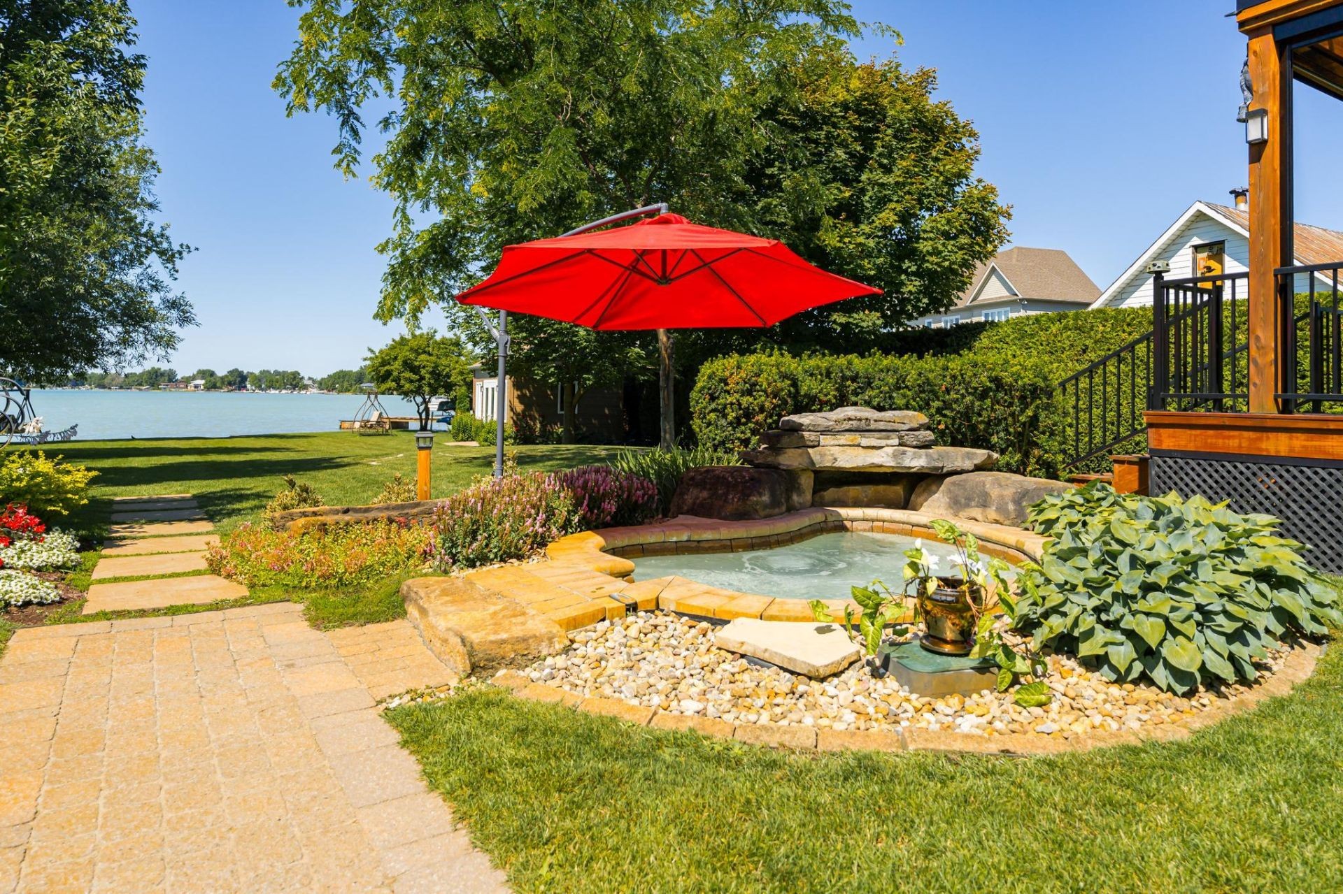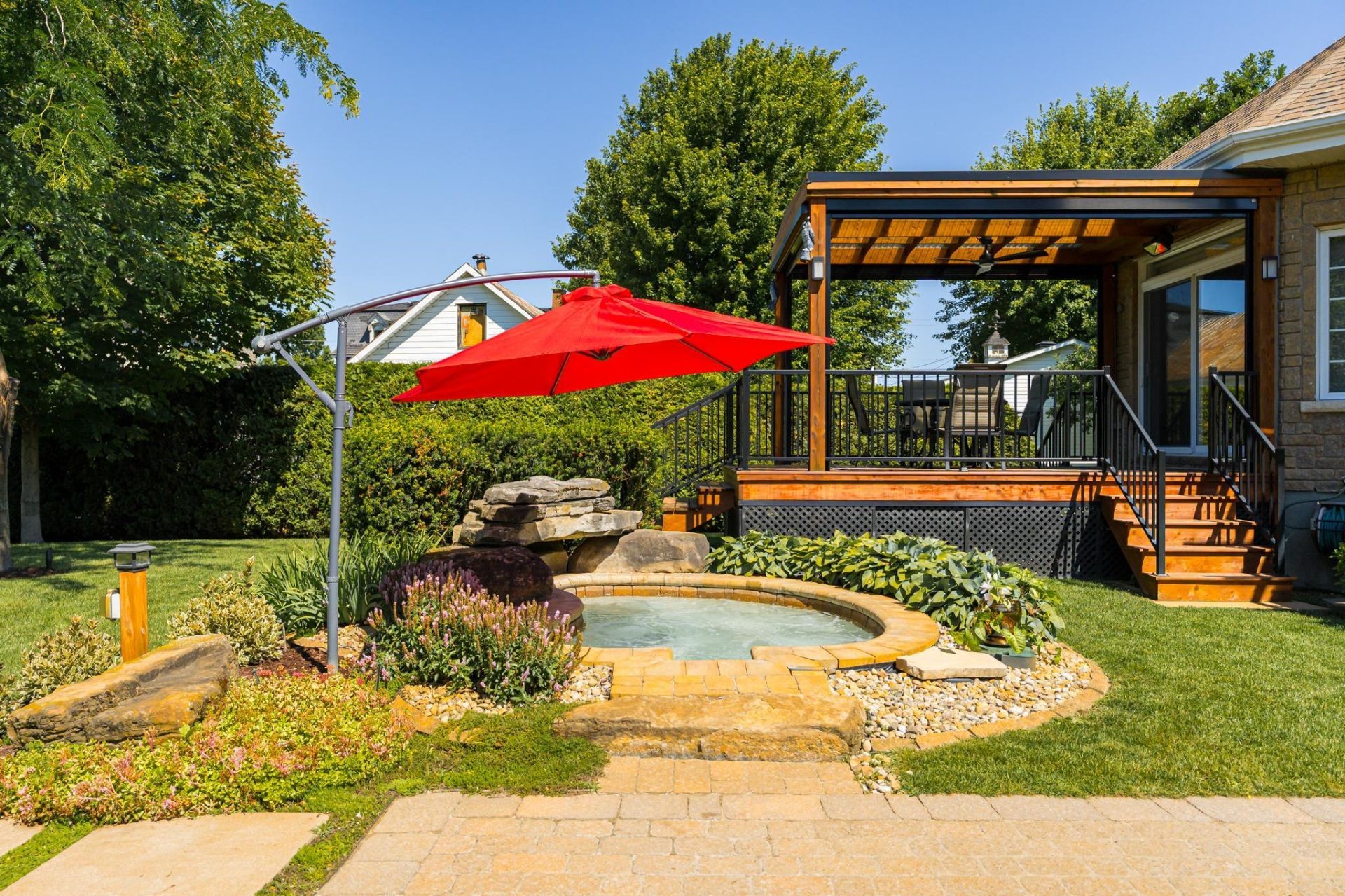 Pergola 2 300 $Patio en pavé uni, foyer, rampe d'escalier sur mesure et haie (côté sud) 40 250 $2010