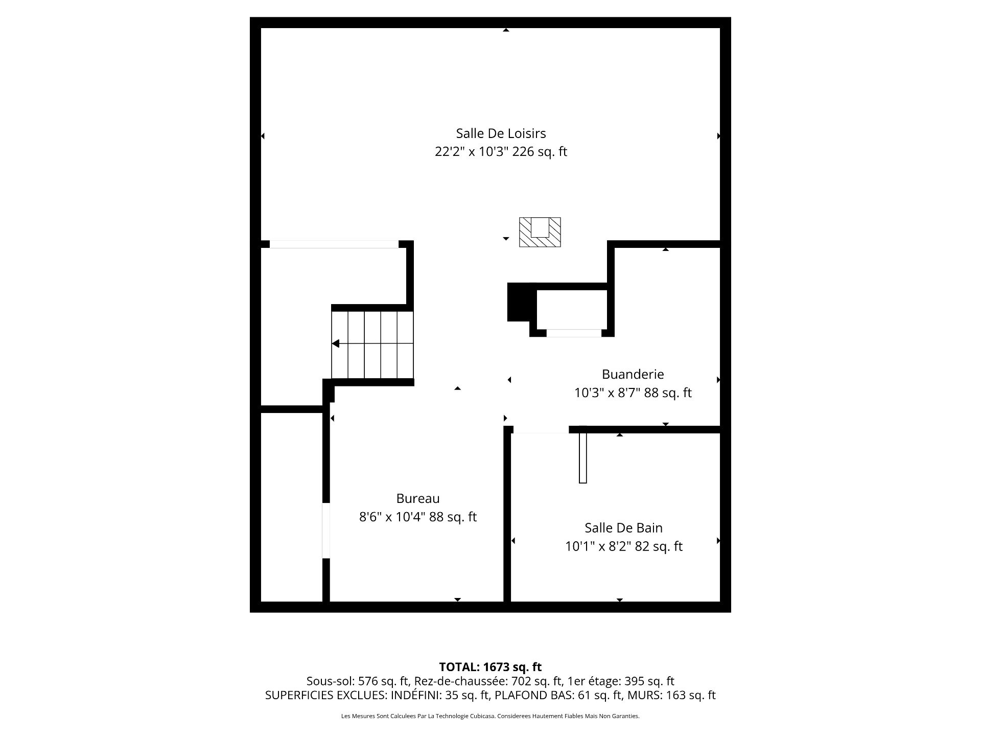 | Salle de lavage | Sous-sol | 10.3x8.7 P | Plancher flottant | |
