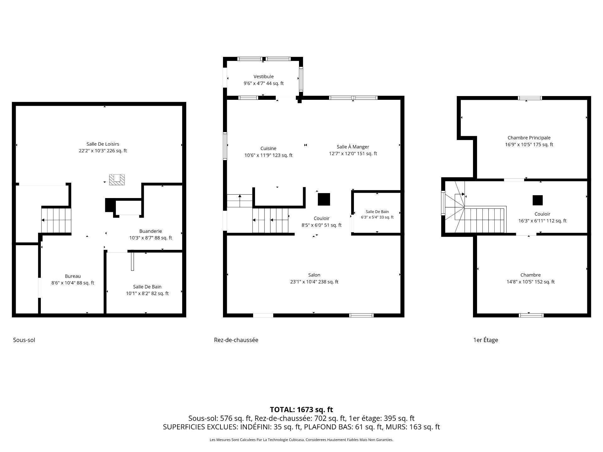 | Salle familiale | Sous-sol | 22.2x10.3 P | Plancher flottant | |