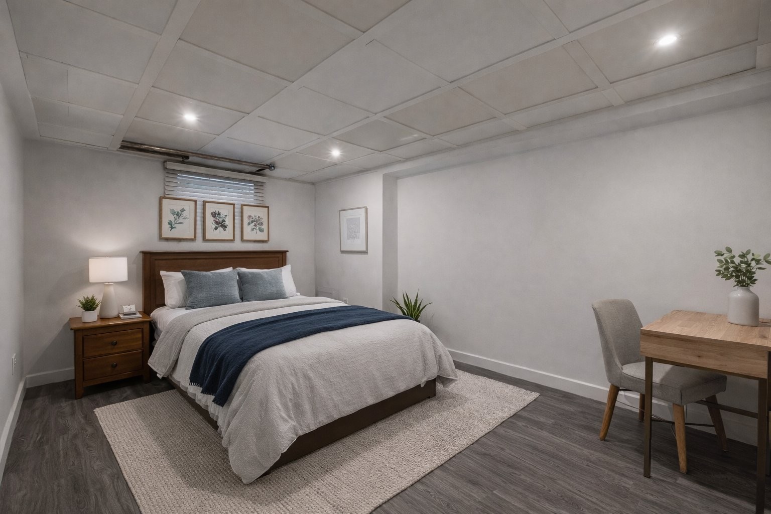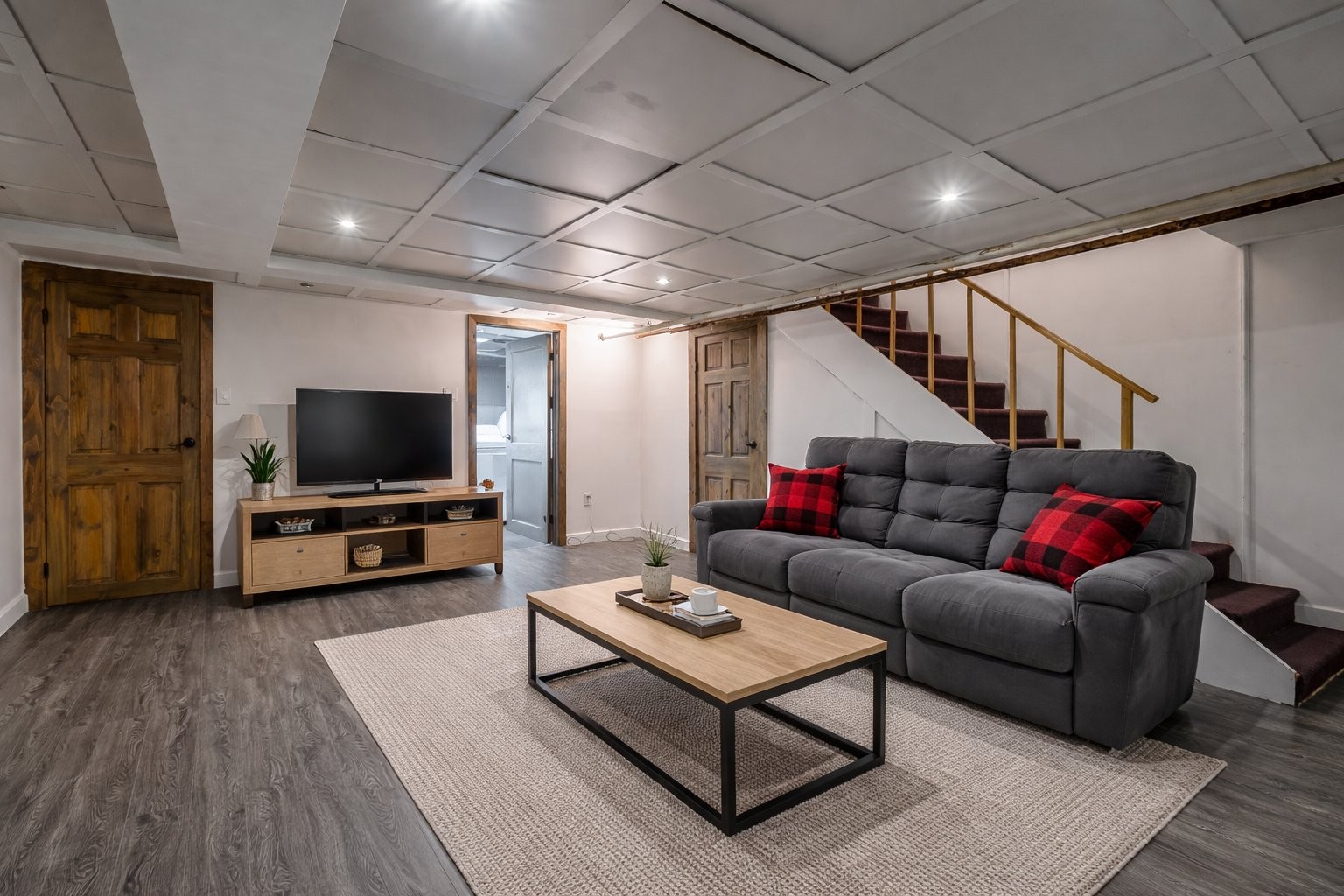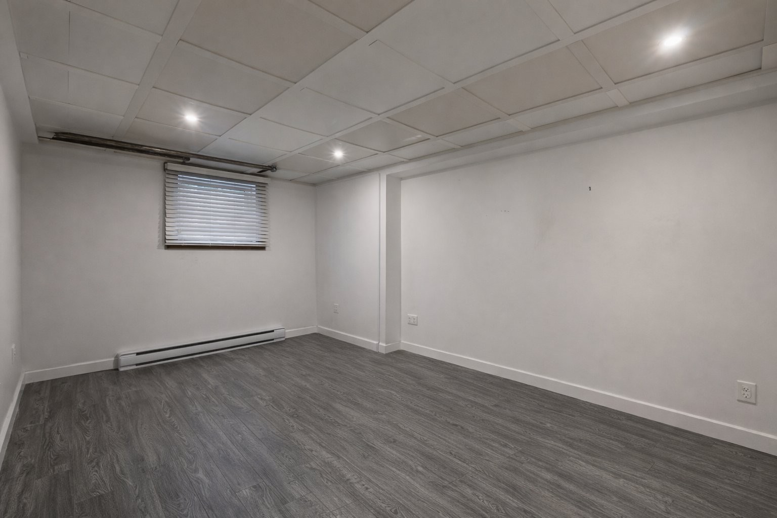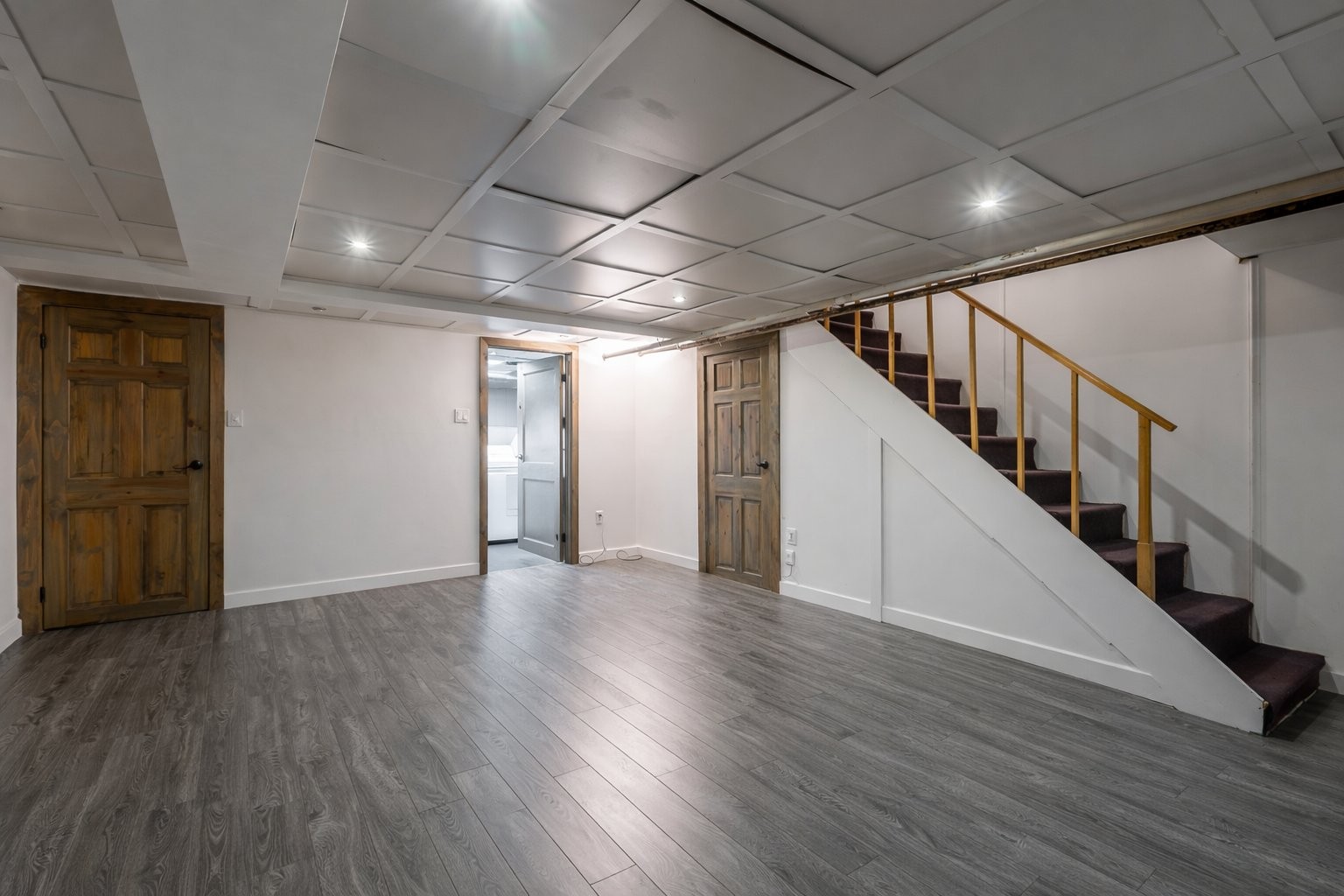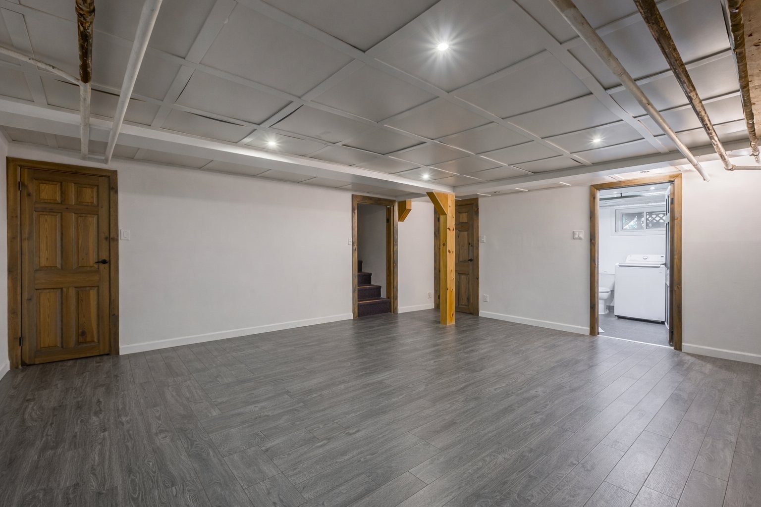 Sous-sol rénové et isolé, idéal pour une salle familiale ou un espace de jeux
