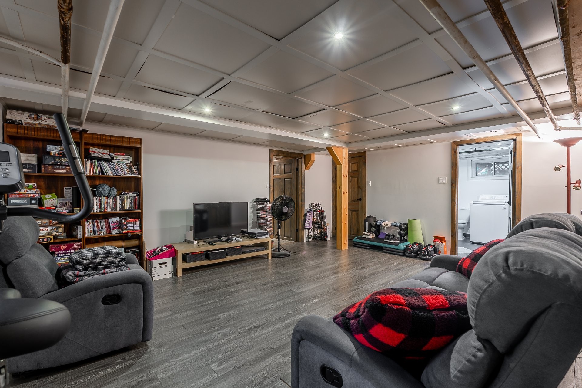Sous-sol rénové et isolé, idéal pour une salle familiale ou un espace de jeux