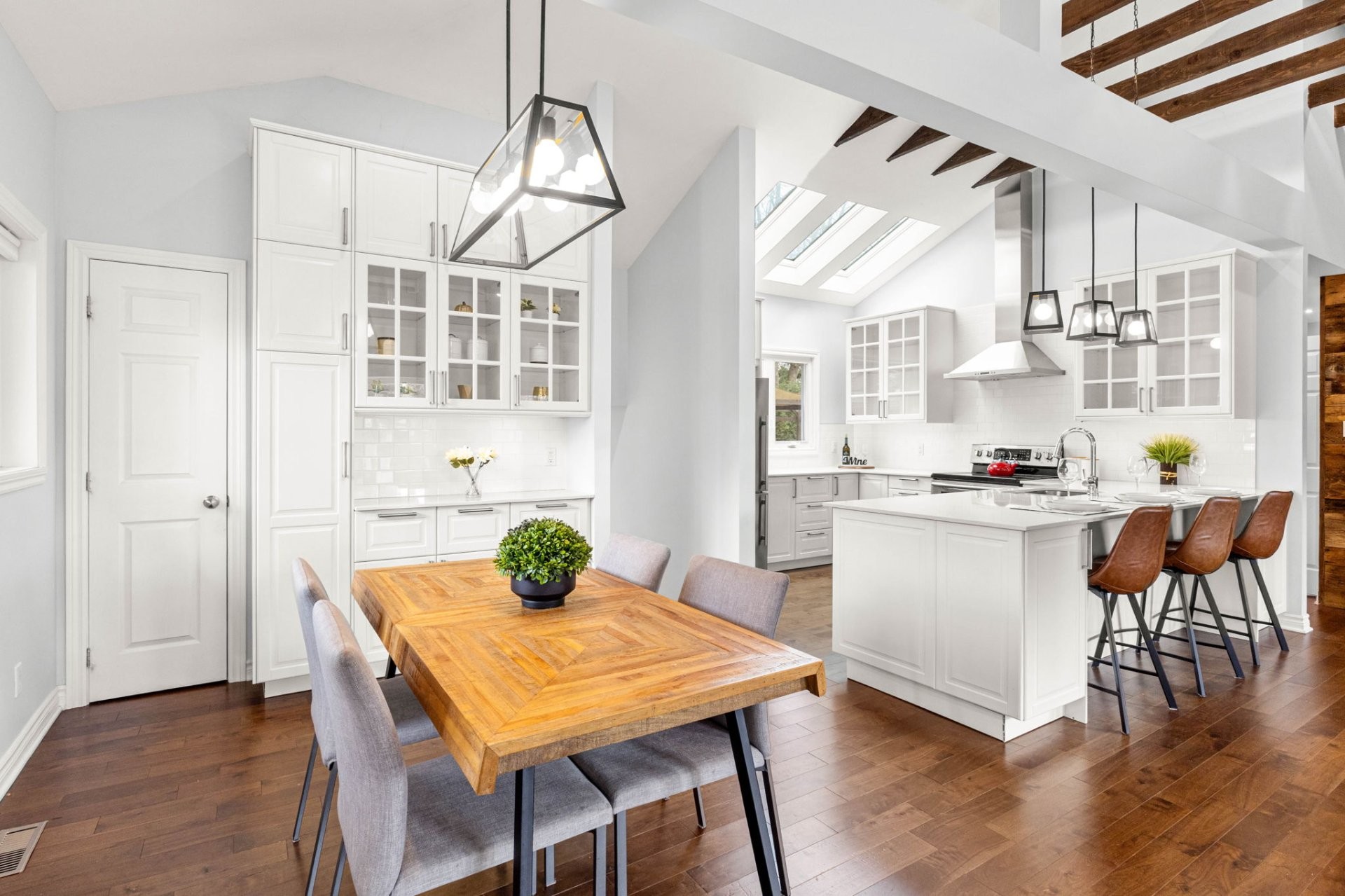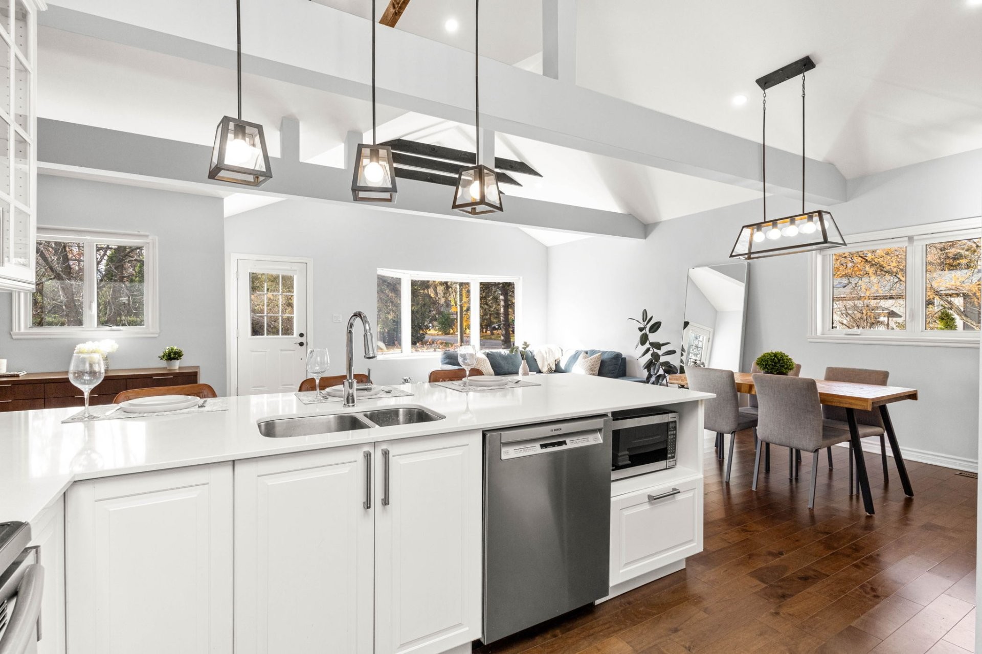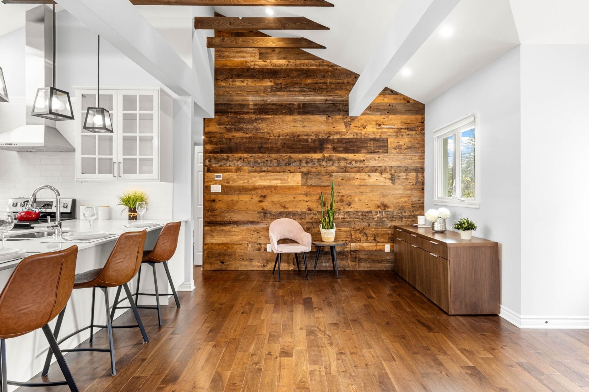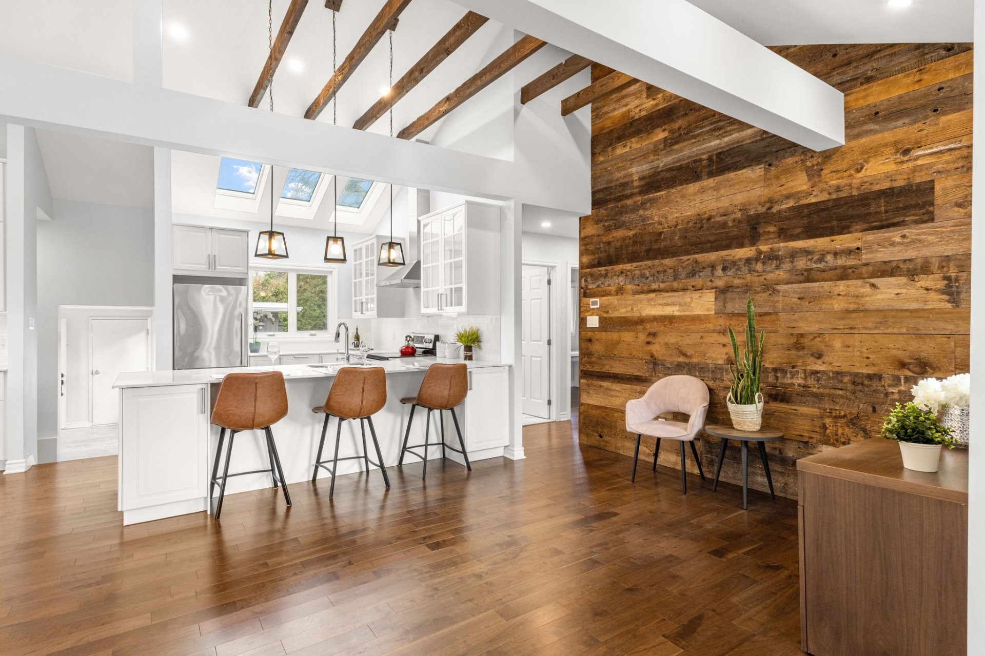 Dès l'entrée, vous serez charmé par l'espace de vie lumineux à aire ouverte, doté de plafonds cathédrale de 14 pieds, d'une grande baie vitrée et de trois puits de lumière inondant la pièce de lumière naturelle. Les planchers en noyer et le mur accent en bois de grange apportent chaleur et caractère. La cuisine moderne fera le bonheur des passionnés de gastronomie : elle offre un vaste îlot en quartz de 10 pieds avec évier double, un grand espace de rangement incluant un garde-manger, et s'ouvre harmonieusement sur une salle à manger spacieuse avec mobilier intégré sur mesure -- parfaite pour recevoir. La suite principale dispose de généreux placards intégrés et d'une salle de bains attenante élégante, avec comptoir en quartz, lavabo vasque, et une douche extra large à effet pluie. Une deuxième chambre, une salle de bains complète supplémentaire ainsi qu'un vaste mudroom avec accès au garage, à l'entrée extérieure et à la cour arrière complètent le rez-de-chaussée -- un parfait mélange de style et de fonctionnalité.