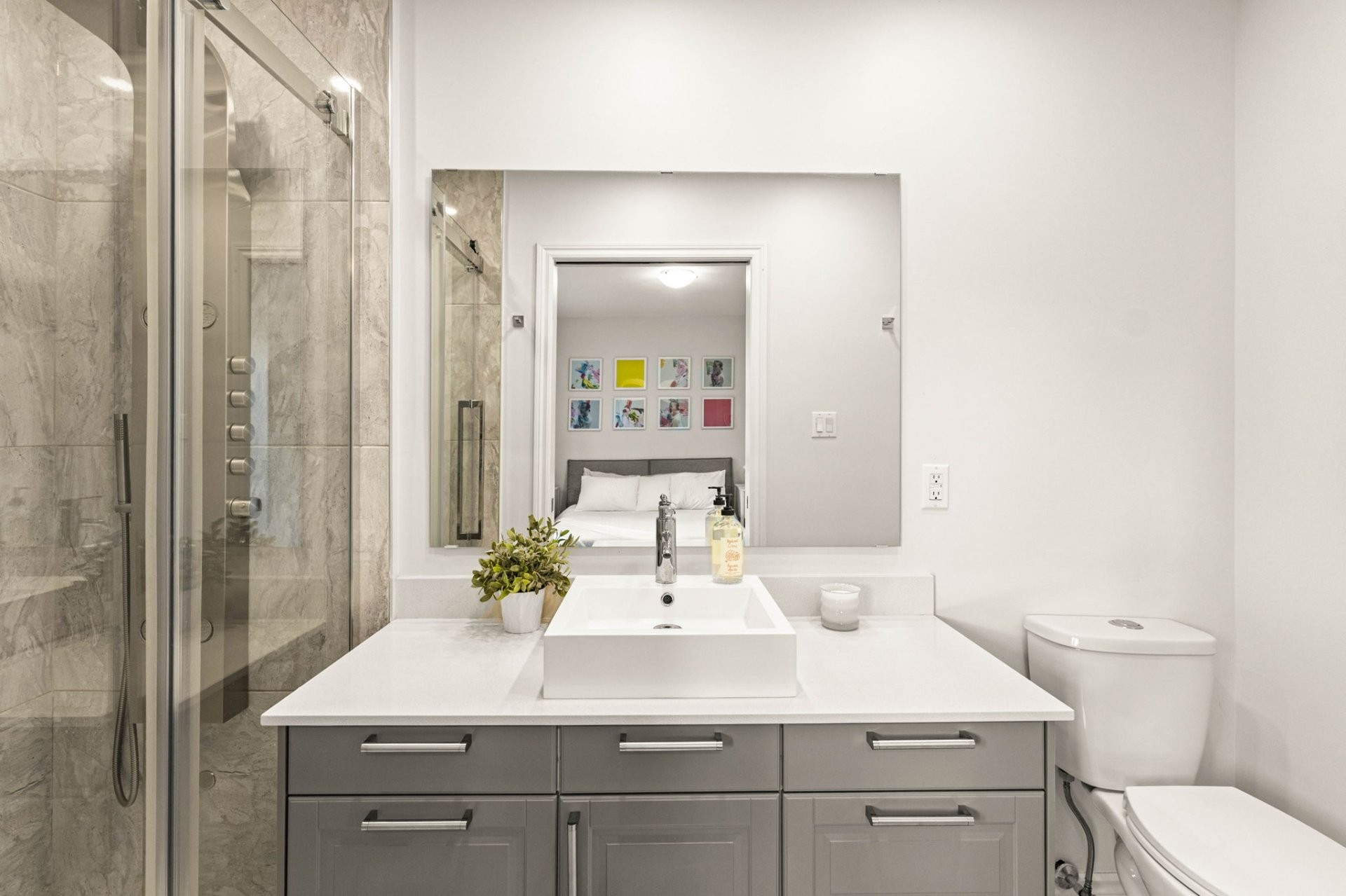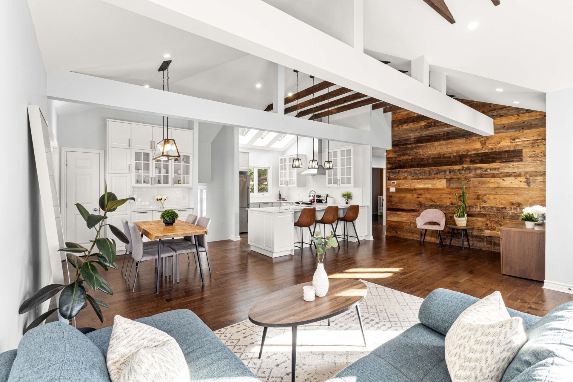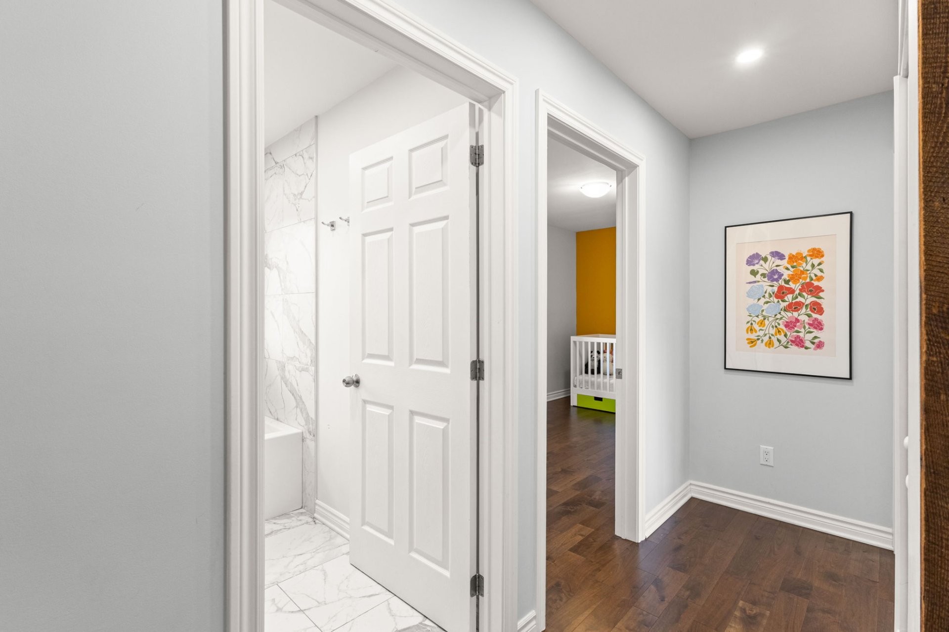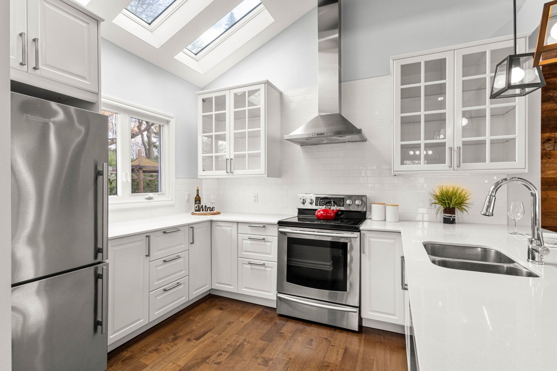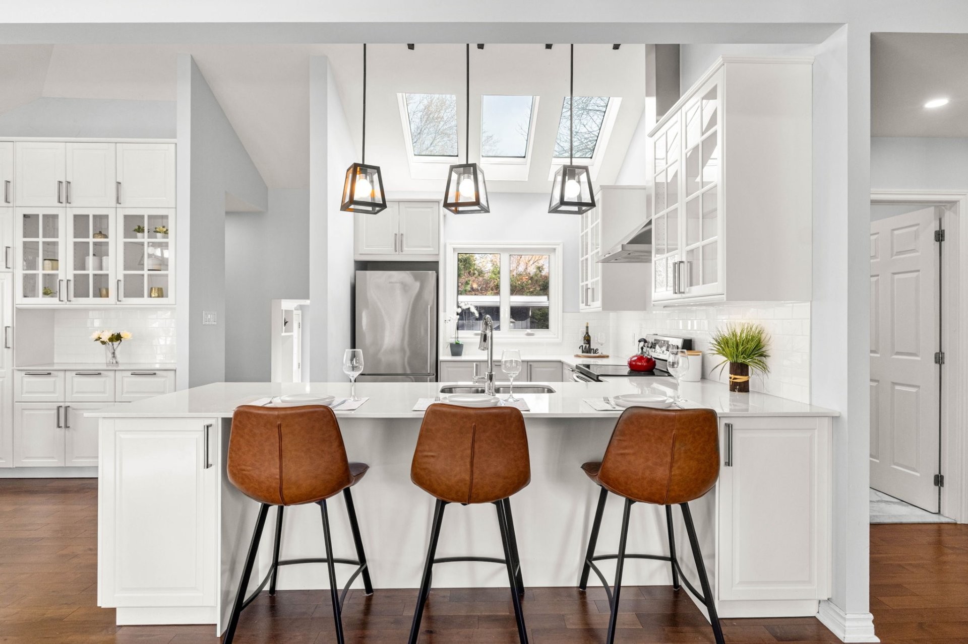Dès l'entrée, vous serez charmé par l'espace de vie lumineux à aire ouverte, doté de plafonds cathédrale de 14 pieds, d'une grande baie vitrée et de trois puits de lumière inondant la pièce de lumière naturelle. Les planchers en noyer et le mur accent en bois de grange apportent chaleur et caractère. La cuisine moderne fera le bonheur des passionnés de gastronomie : elle offre un vaste îlot en quartz de 10 pieds avec évier double, un grand espace de rangement incluant un garde-manger, et s'ouvre harmonieusement sur une salle à manger spacieuse avec mobilier intégré sur mesure -- parfaite pour recevoir. La suite principale dispose de généreux placards intégrés et d'une salle de bains attenante élégante, avec comptoir en quartz, lavabo vasque, et une douche extra large à effet pluie. Une deuxième chambre, une salle de bains complète supplémentaire ainsi qu'un vaste mudroom avec accès au garage, à l'entrée extérieure et à la cour arrière complètent le rez-de-chaussée -- un parfait mélange de style et de fonctionnalité.
