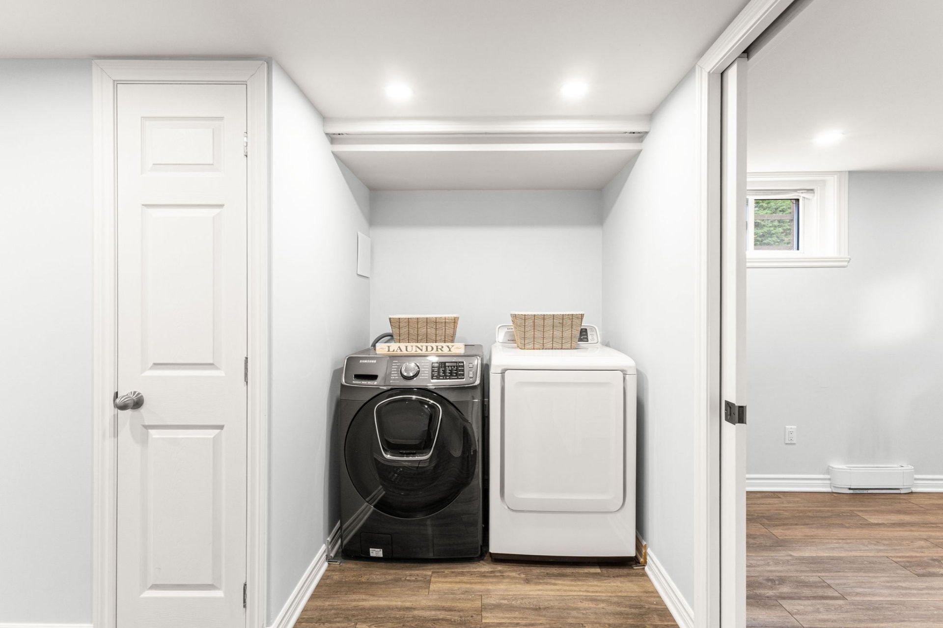 Le sous-sol entièrement aménagé prolonge l'espace de vie avec une grande salle familiale, deux autres chambres de bonnes dimensions, une salle de bains complète, un espace buanderie dédié ainsi qu'un vaste rangement -- idéal pour une famille grandissante ou pour recevoir des invités.