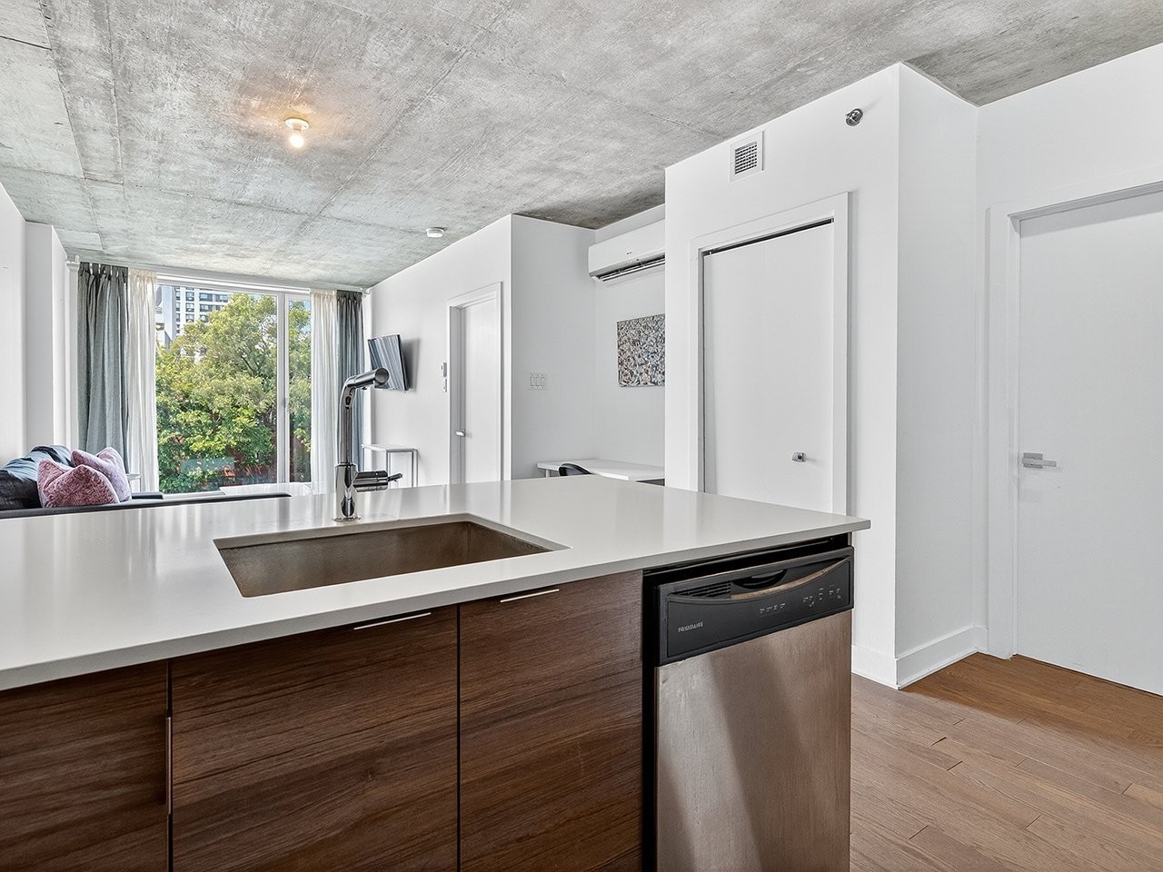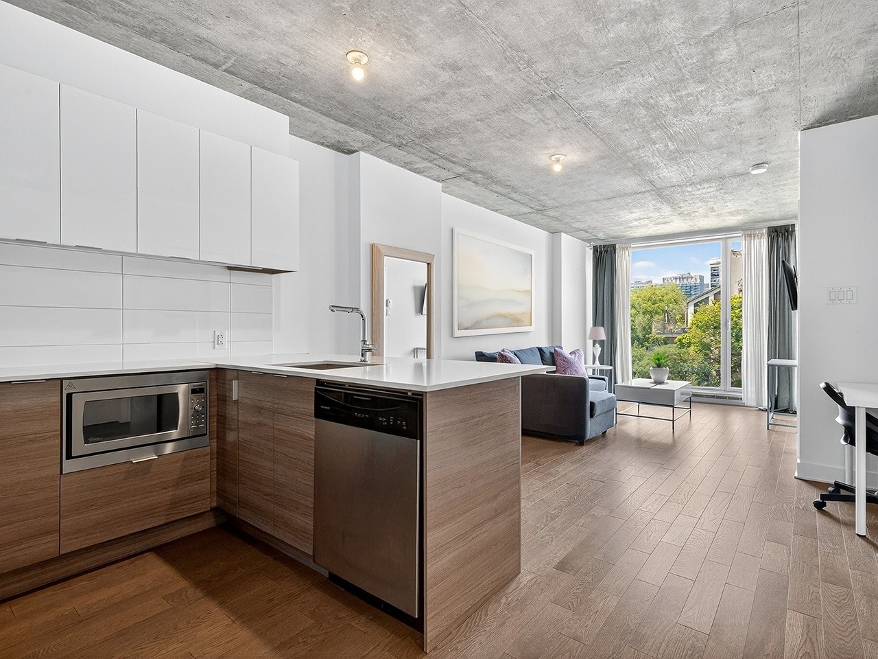 Entrez dans ce condo vibrant et baigné de lumière, situé au 4e étage d'un immeuble soigneusement entretenu en plein coeur de la ville. À quelques pas des stations de métro, de l'Université Concordia, de la gare et de nombreux restaurants et boutiques populaires, cette résidence offre une commodité incomparable.