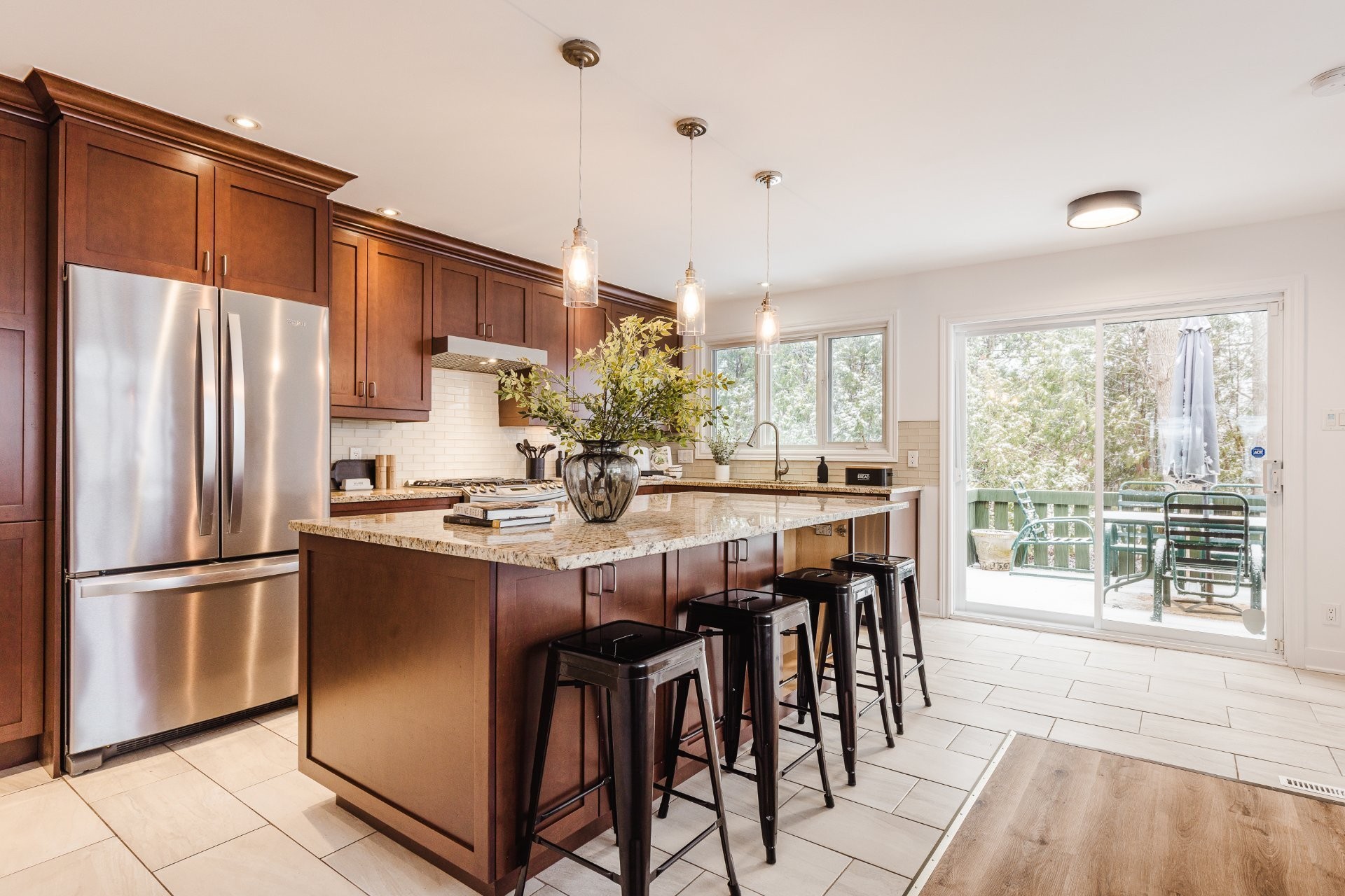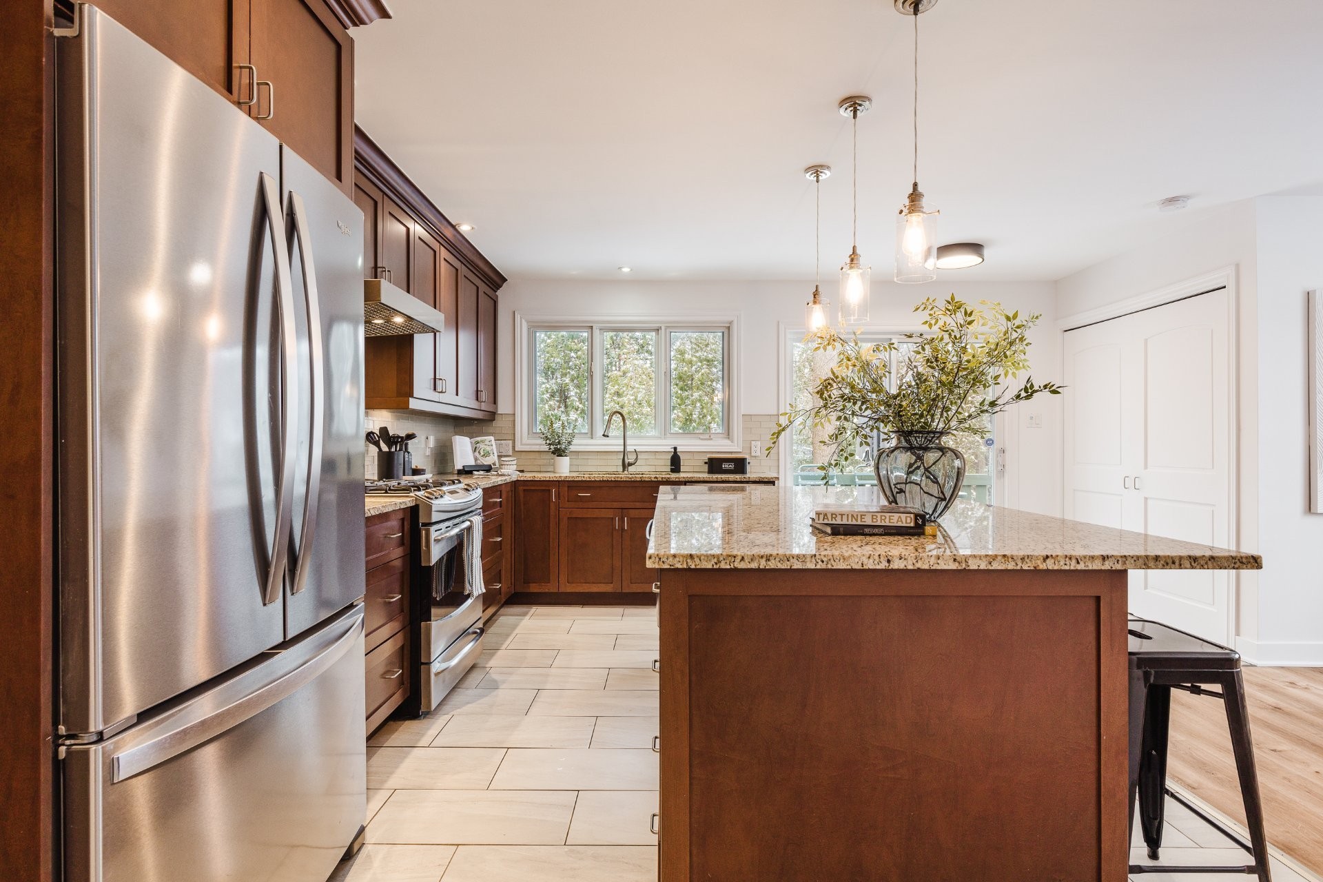 À l'intérieur, vous découvrirez un rez-de-chaussée spacieux avec un salon ensoleillé, une salle à manger formelle et une grande cuisine de chef avec beaucoup de rangement. Le concept ouvert entre la cuisine et la salle à manger est parfait pour recevoir ou partager de bons repas en famille.