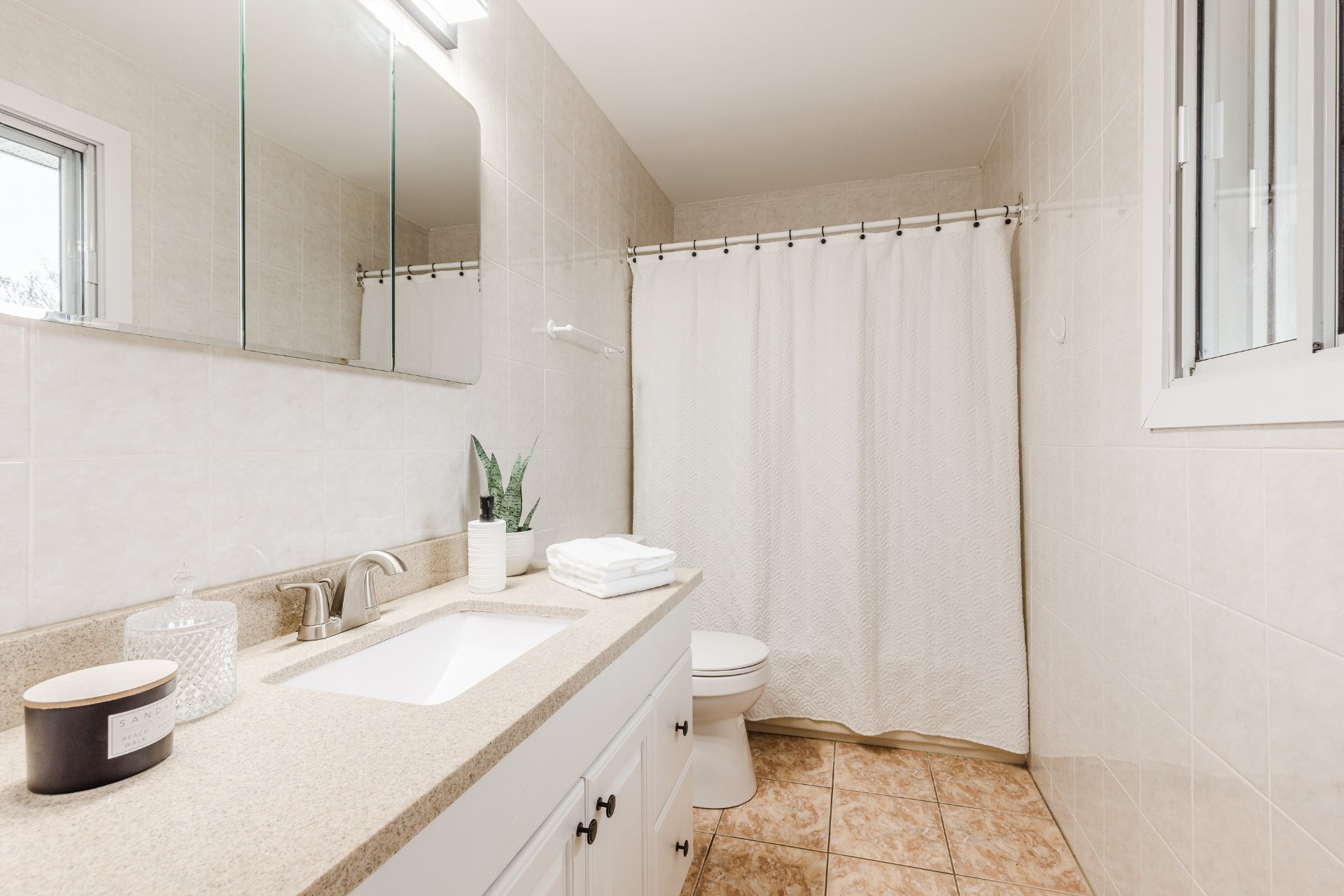 Maison à paliers multiples, lumineuse et fraîchement rénovée, située sur une rue paisible bordée d'arbres avec un beau cachet extérieur. Comprend 4 grandes chambres, 2,5 salles de bain, une cuisine de chef, une salle à manger ouverte et une grande salle familiale avec accès à la cour et au garage. Terrain privé de 7 000 pi² avec terrasse, idéal pour recevoir. À pied de l'école Sherbrooke, parcs, piscine, pistes cyclables. Près du transport, A-20 et boul. St-Charles. À voir absolument !