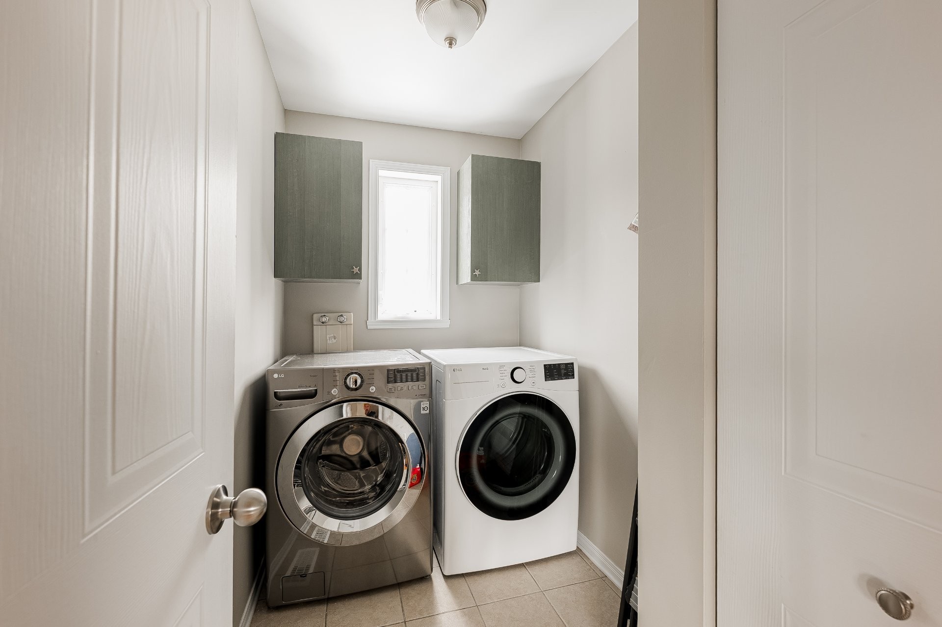 Réfrigérateur, cuisinière, laveuse, sécheuse, micro-ondes, rideaux et tringles.