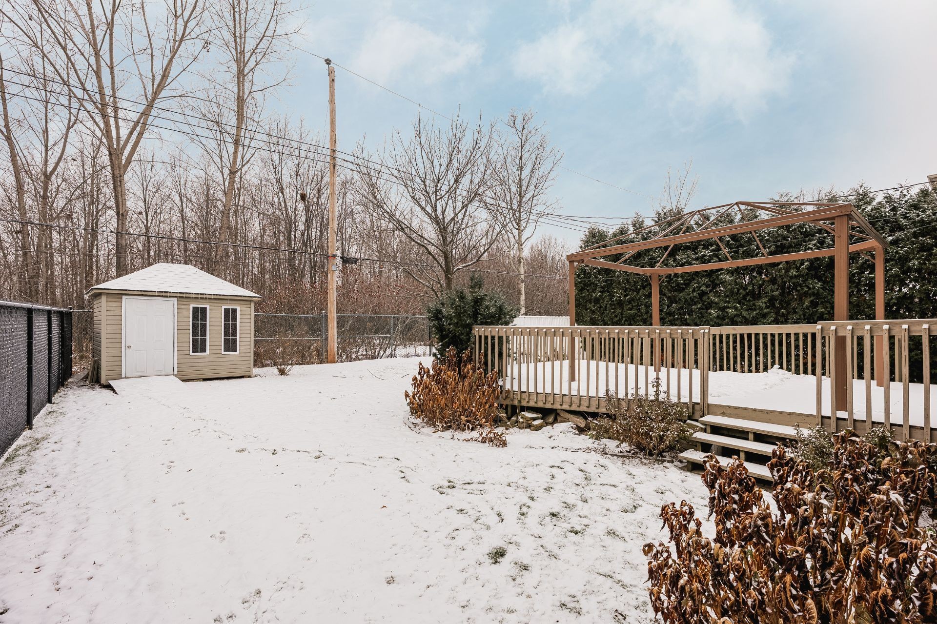 Chauffe-eau, lave-vaisselle, cabanon, gazebo (tel quel), système d'alarme, tous les luminaires, haut-parleurs encastrés pour le cinéma maison, système d'irrigation (tel quel), ouvre-porte de garage et télécommande.
