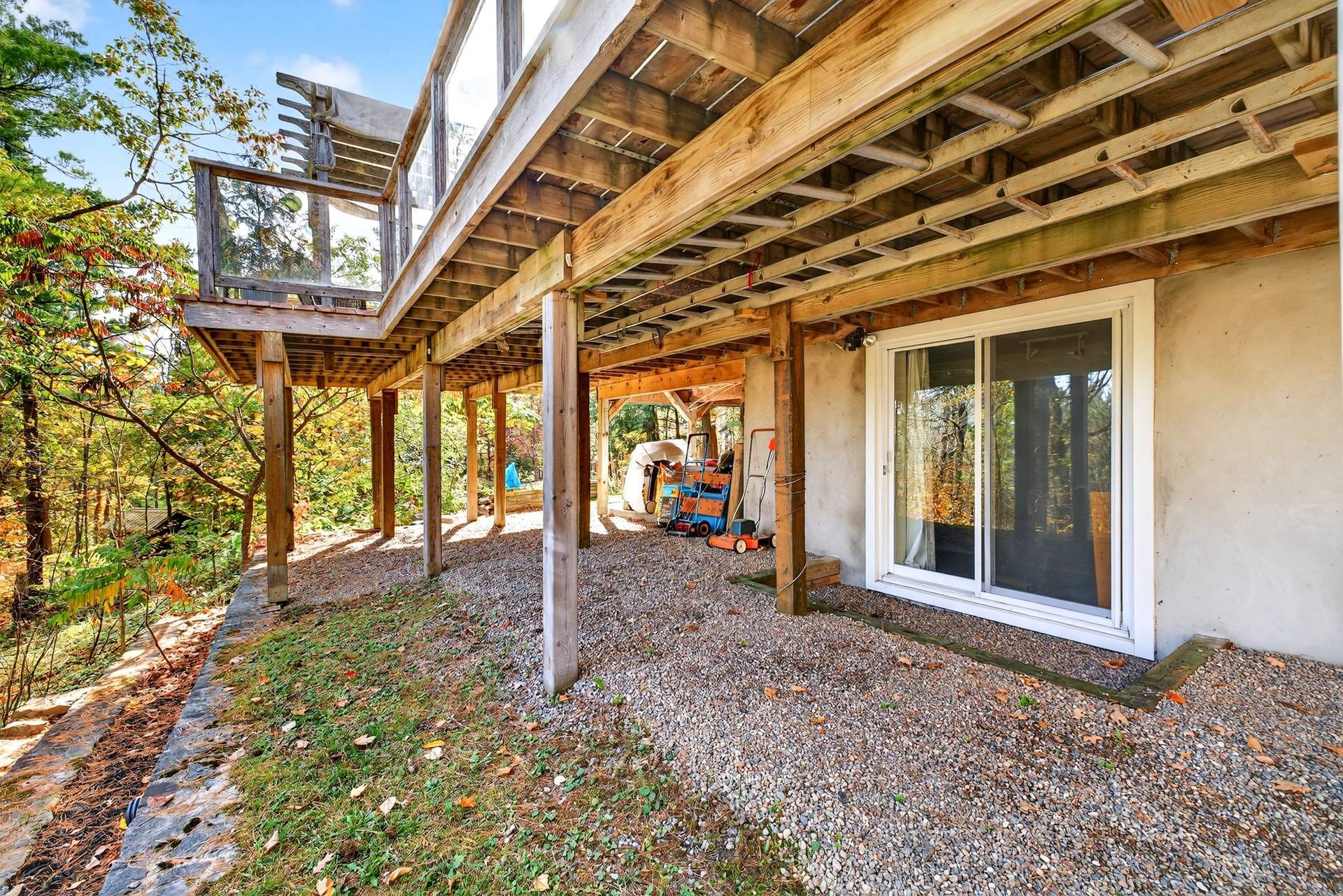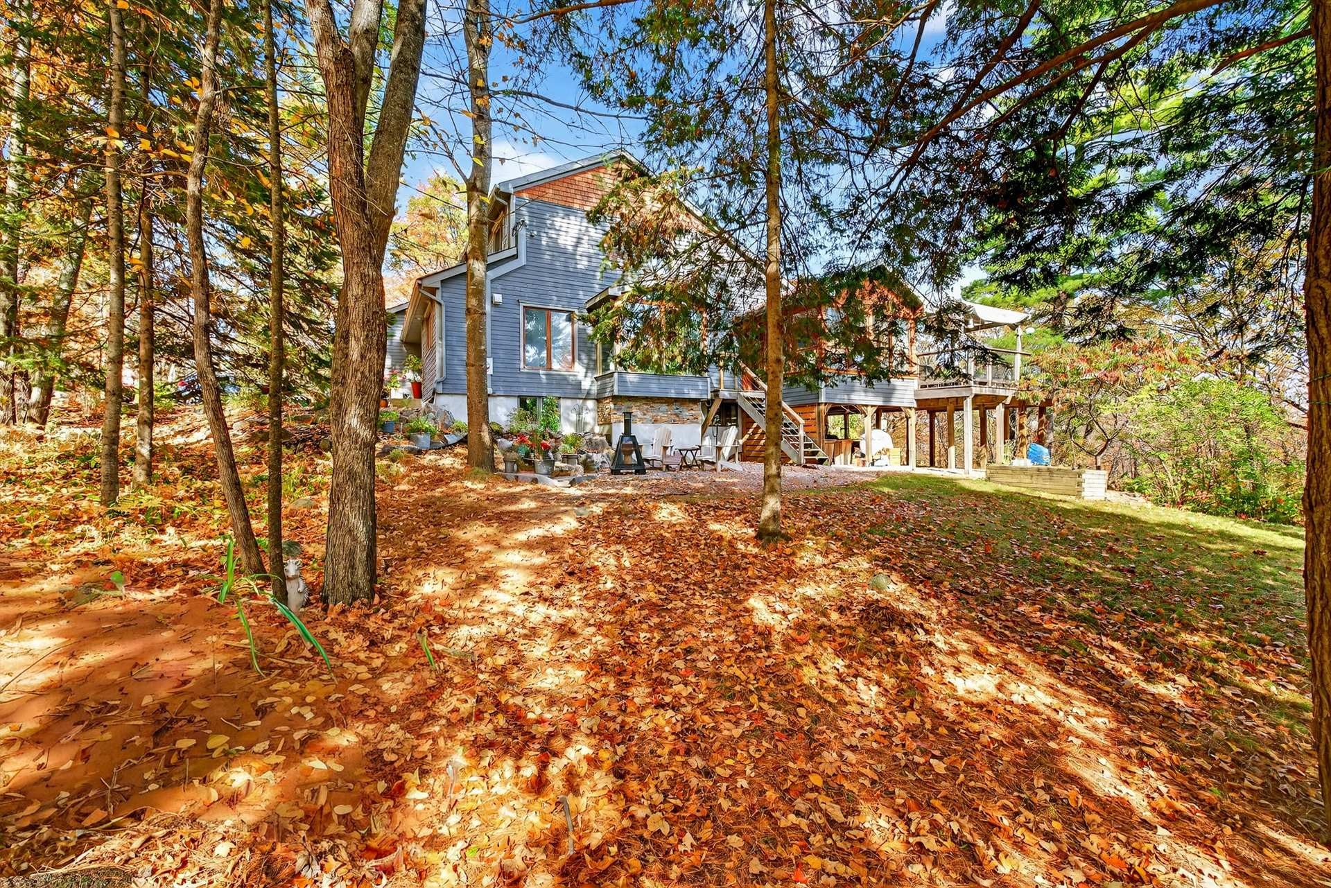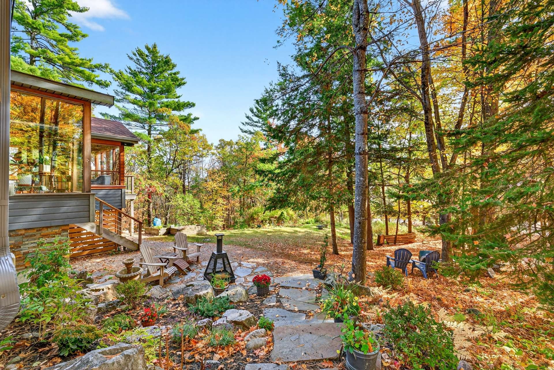 À l'extérieur, le terrain intime entièrement boisé crée une ambiance unique et enveloppante. Les vastes terrasses permettent d'aménager plusieurs zones: coin repas, espace détente ou aire lounge, tandis que le coin feu promet de mémorables soirées conviviales.