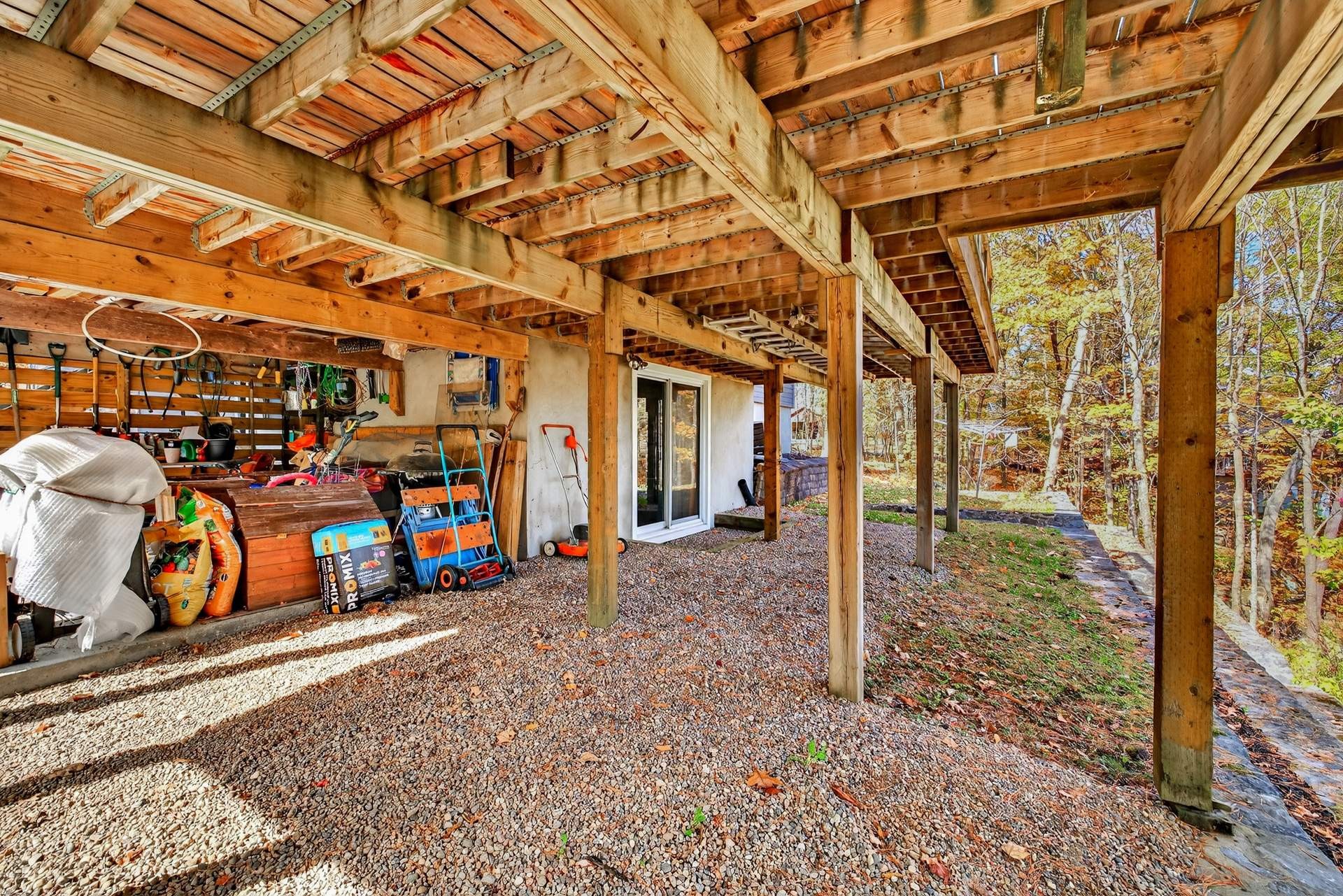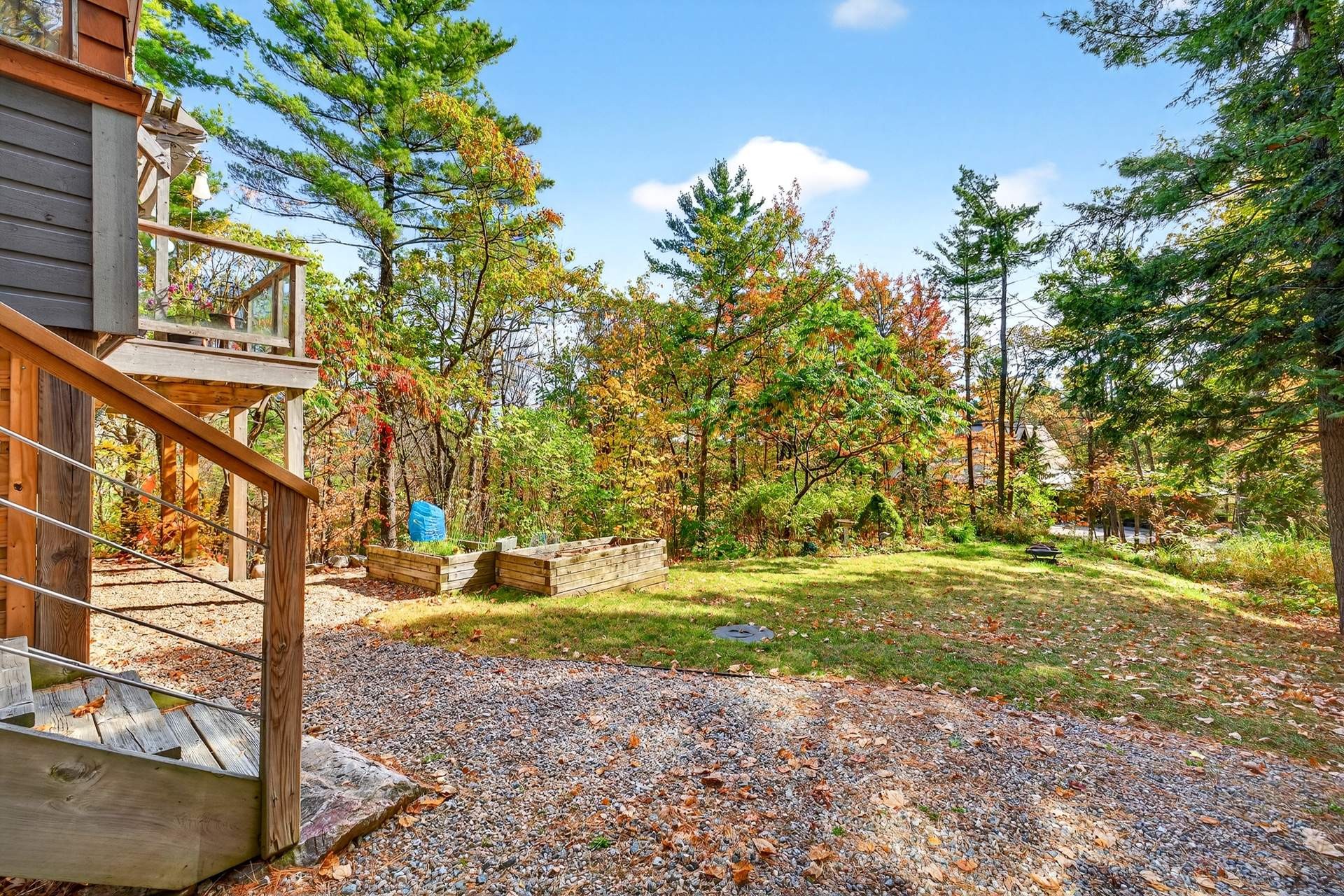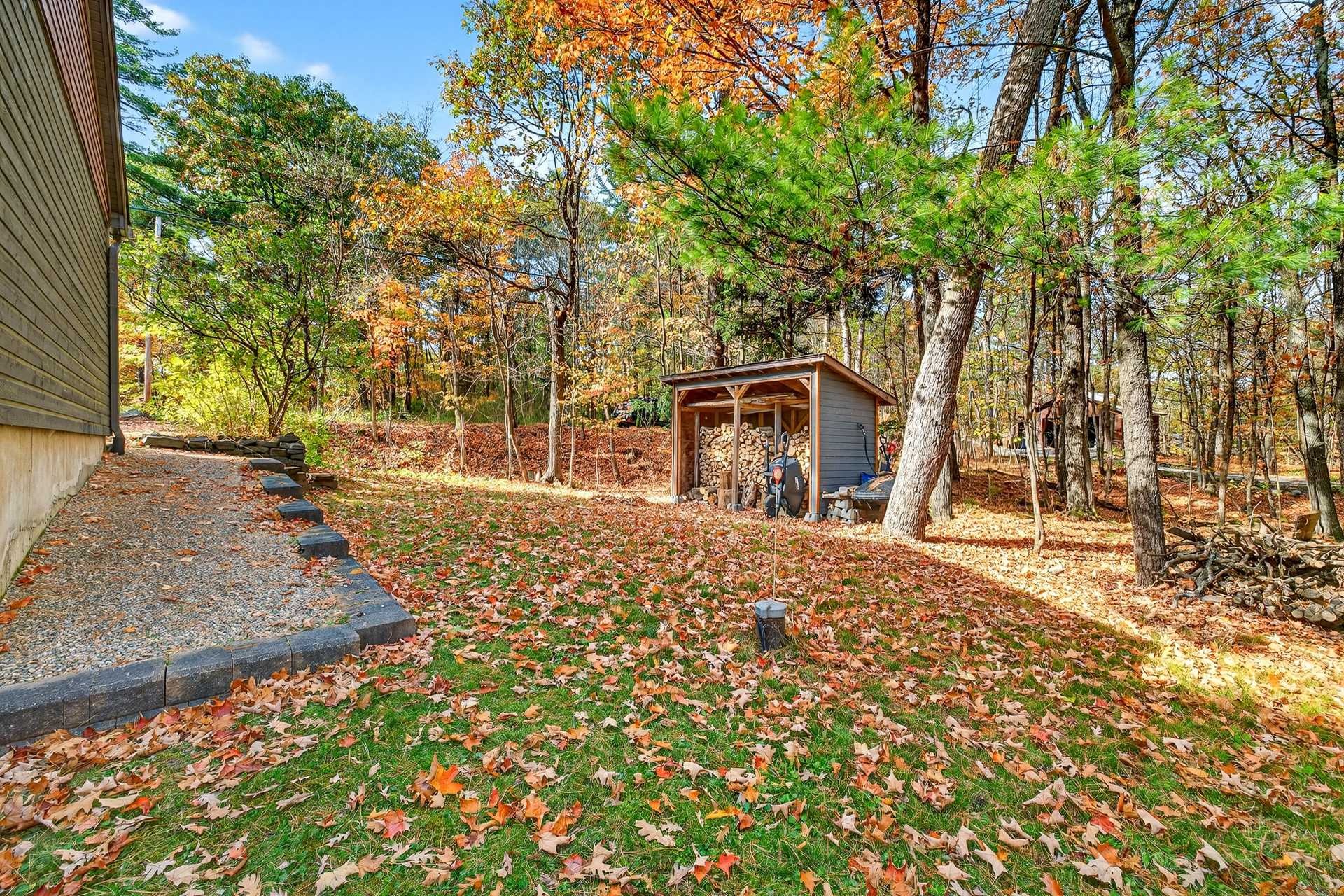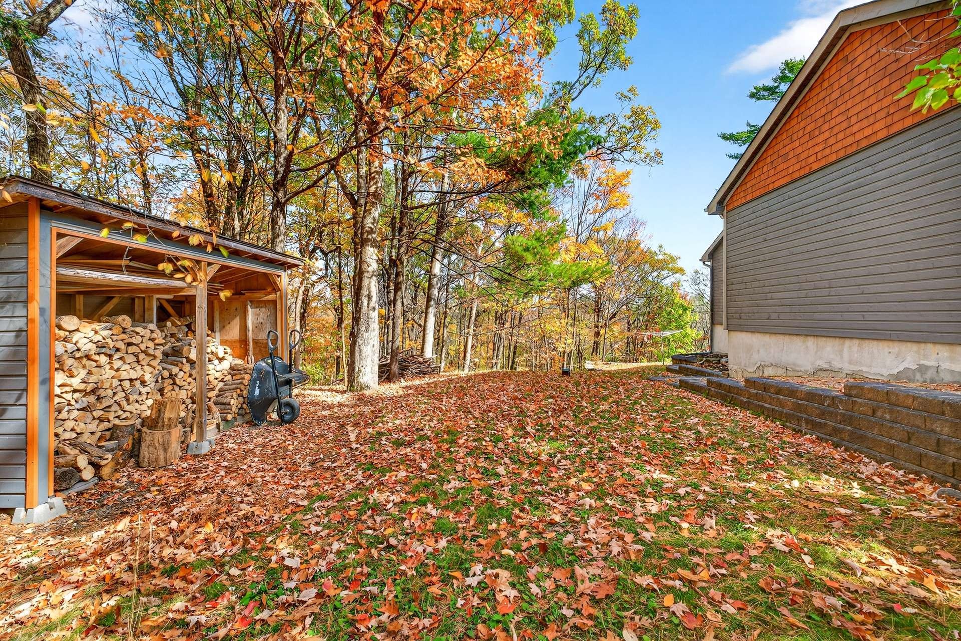 À l'extérieur, le terrain intime entièrement boisé crée une ambiance unique et enveloppante. Les vastes terrasses permettent d'aménager plusieurs zones: coin repas, espace détente ou aire lounge, tandis que le coin feu promet de mémorables soirées conviviales.