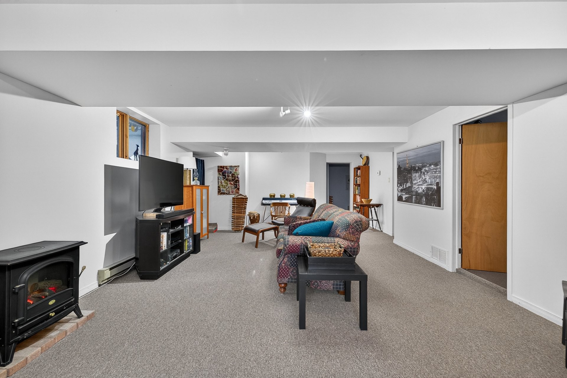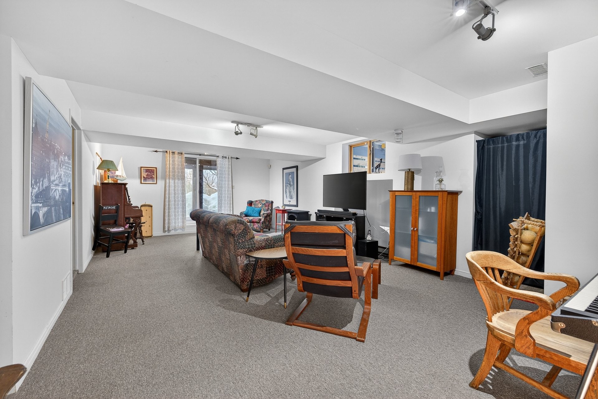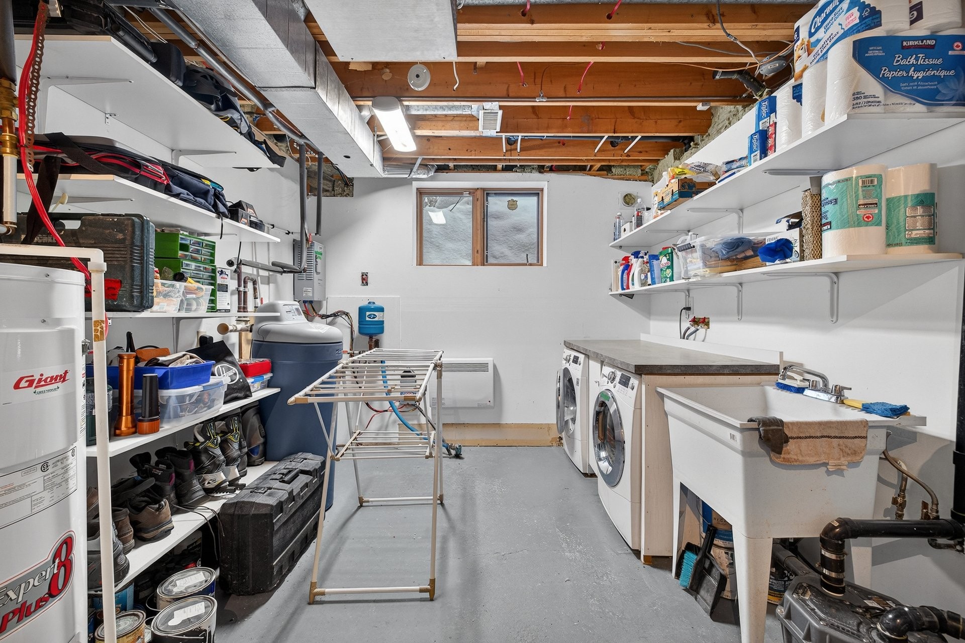 Le sous-sol offre de grands espaces polyvalents, incluant une vaste salle familiale avec porte patio donnant accès à la cour arrière, deux chambres supplémentaires et une salle de lavage fonctionnelle avec rangement.