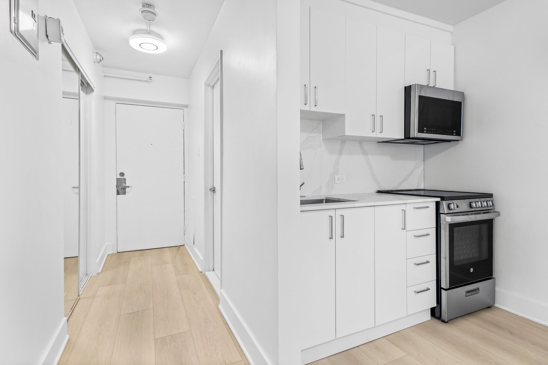 Studio bien aménagé au coeur du centre-ville de Montréal. Unité lumineuse et fonctionnelle à aire ouverte, conçue pour maximiser l'espace et le confort, idéale pour professionnels ou étudiants. Finitions modernes, cuisine épurée avec électroménagers essentiels et espace de vie optimisé pour séjour et repos. Emplacement très accessible à pied, à quelques minutes de l'Université Concordia, du métro Guy-Concordia, ainsi que des restaurants, cafés et commodités.
