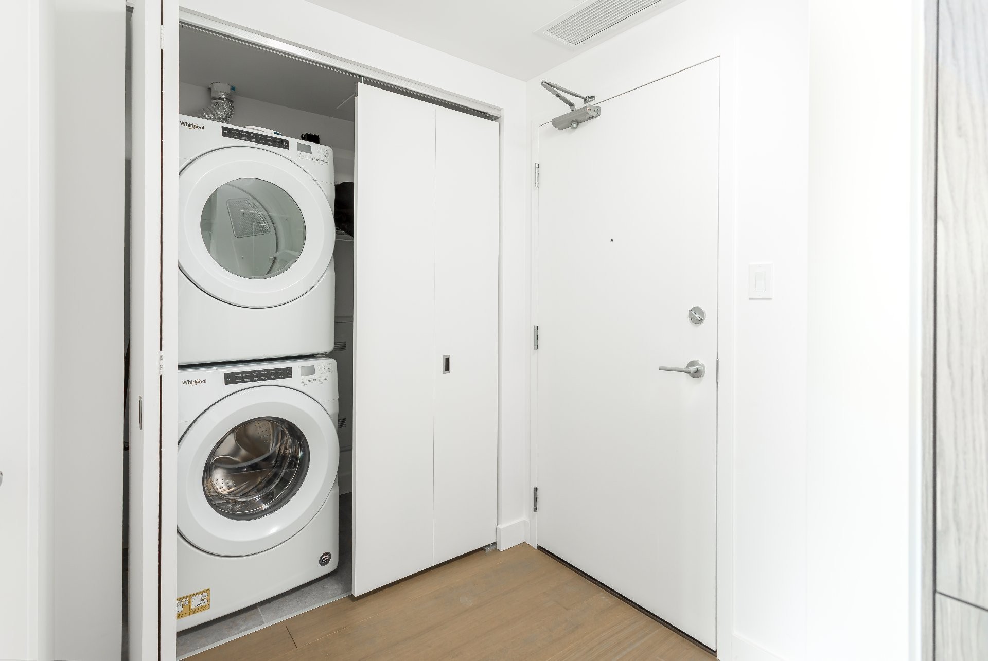 Réfrigérateur, cuisinière, lave-vaisselle, hotte, stores, laveuse/sécheuse, eau chaude, 1 stationnement intérieur (garage)