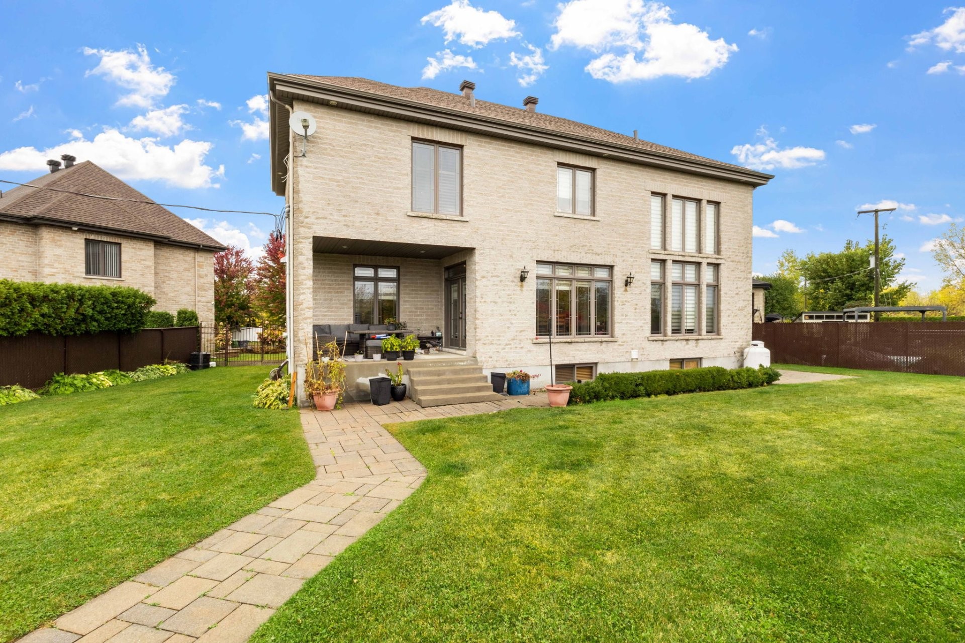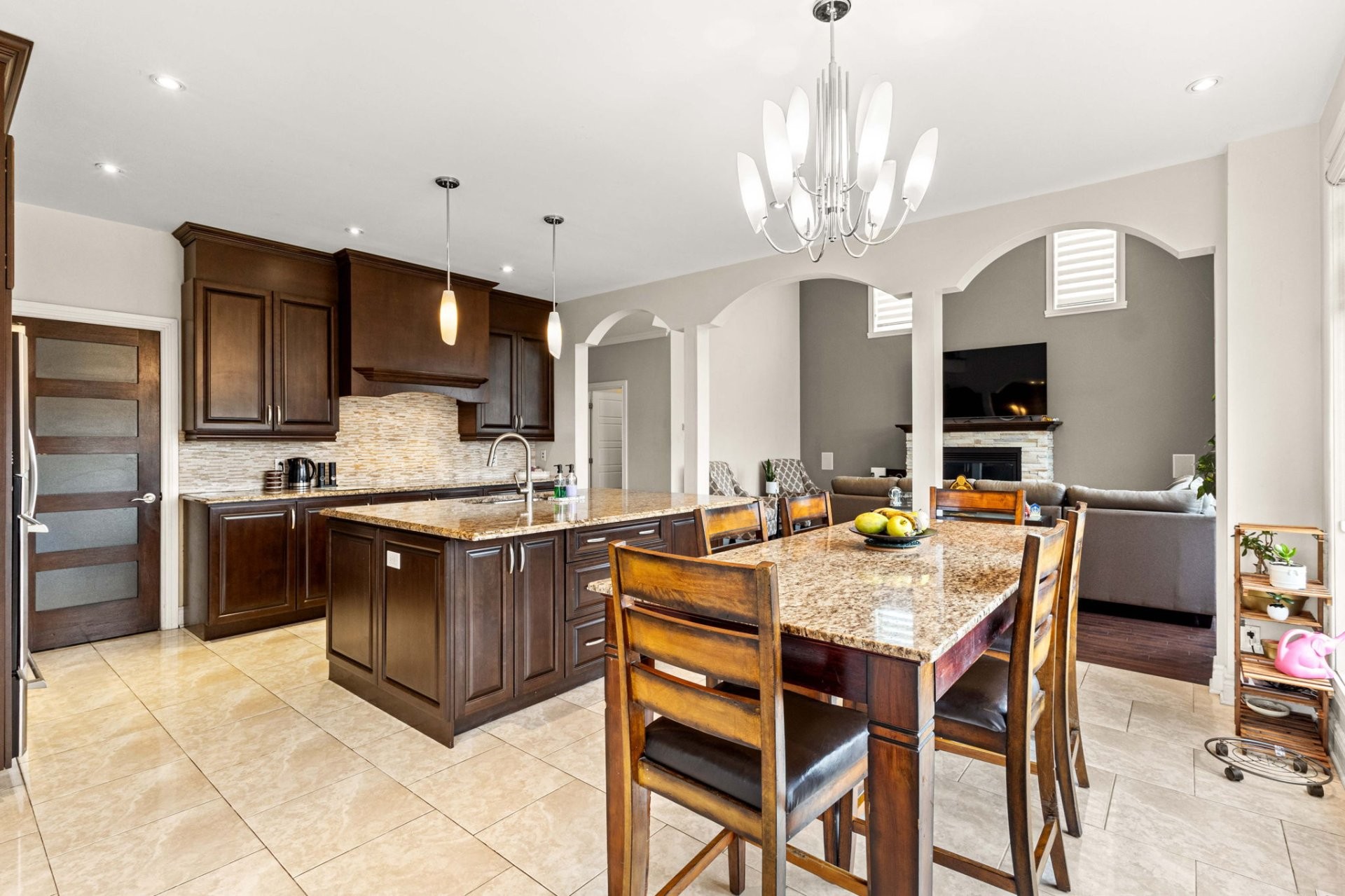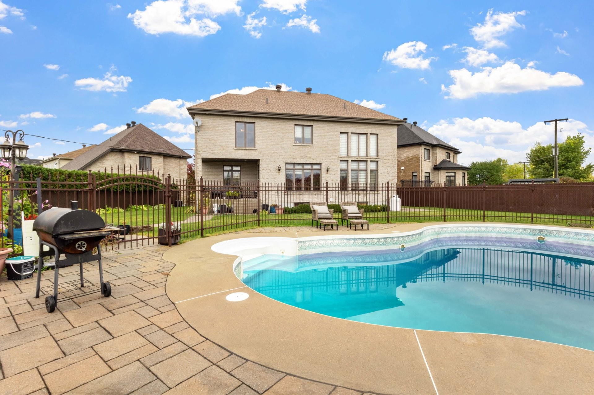 Bienvenue dans cette résidence de luxe construite sur mesure offrant plus de 4 400 pi² d'espace habitable sur un terrain de coin aménagé de plus de 11 000 pi². Façade en pierre, brique sur les quatre côtés, allée en pavé uni et superbe apparence extérieure. Hall d'entrée grandiose avec céramique et escalier circulaire menant à une aire ouverte lumineuse : cuisine, salle à manger et salle familiale avec plafonds cathédrale et grandes fenêtres. Comprend 5 chambres, 4 salles de bain complètes, 1 salle d'eau, finitions haut de gamme, sous-sol aménagé, cour clôturée sans voisins arrière et piscine creusée chauffée. Près de tout.