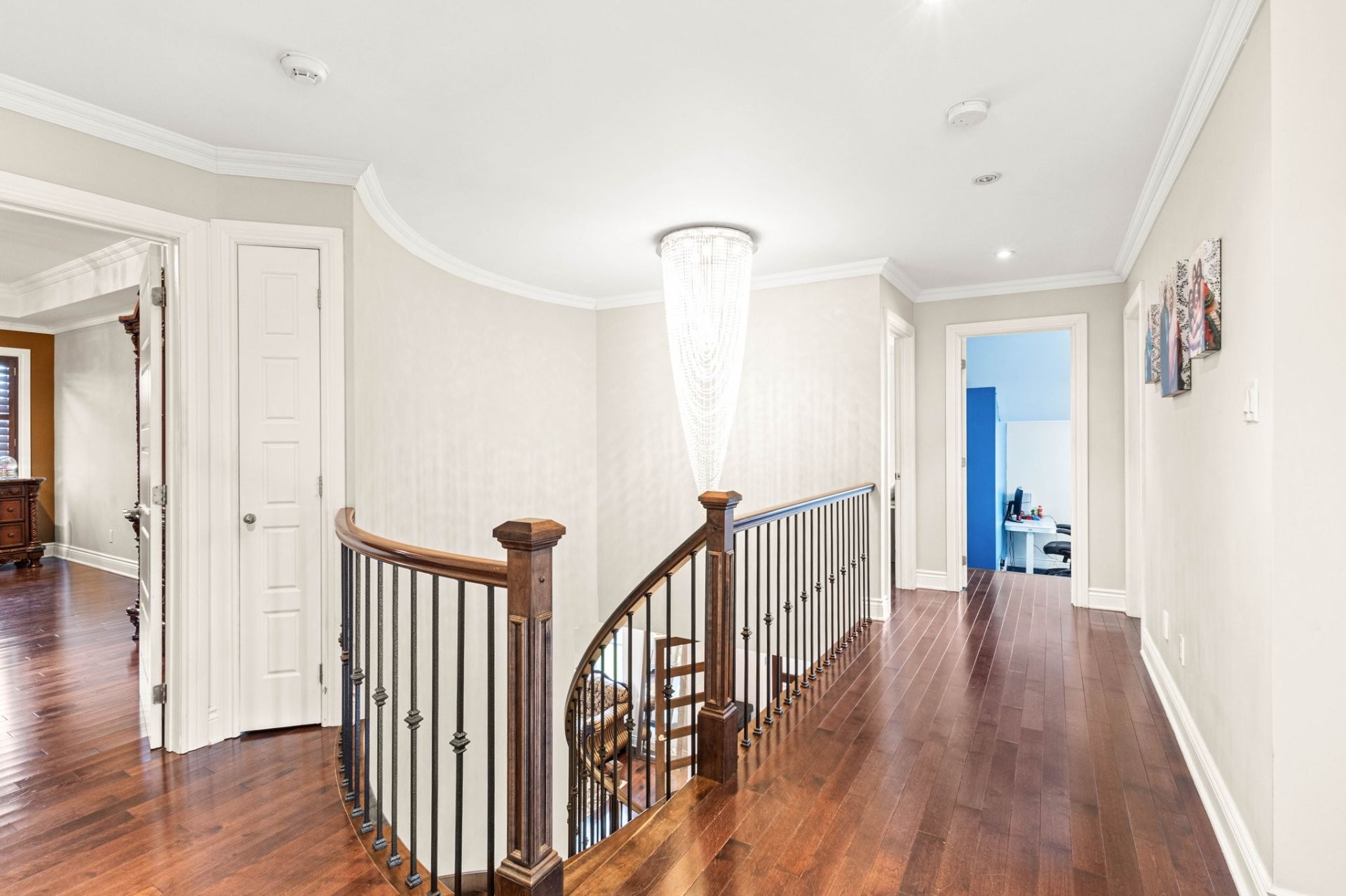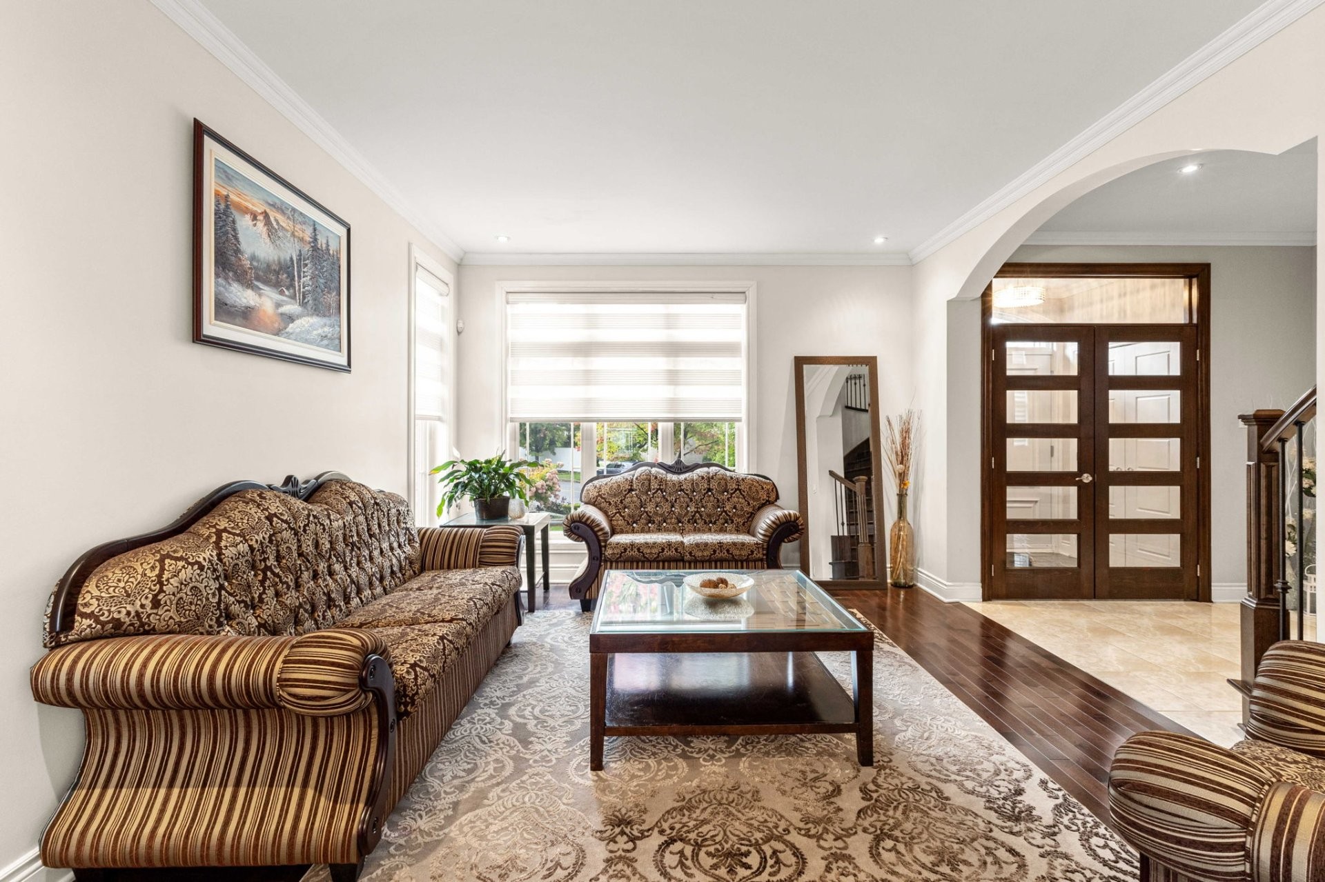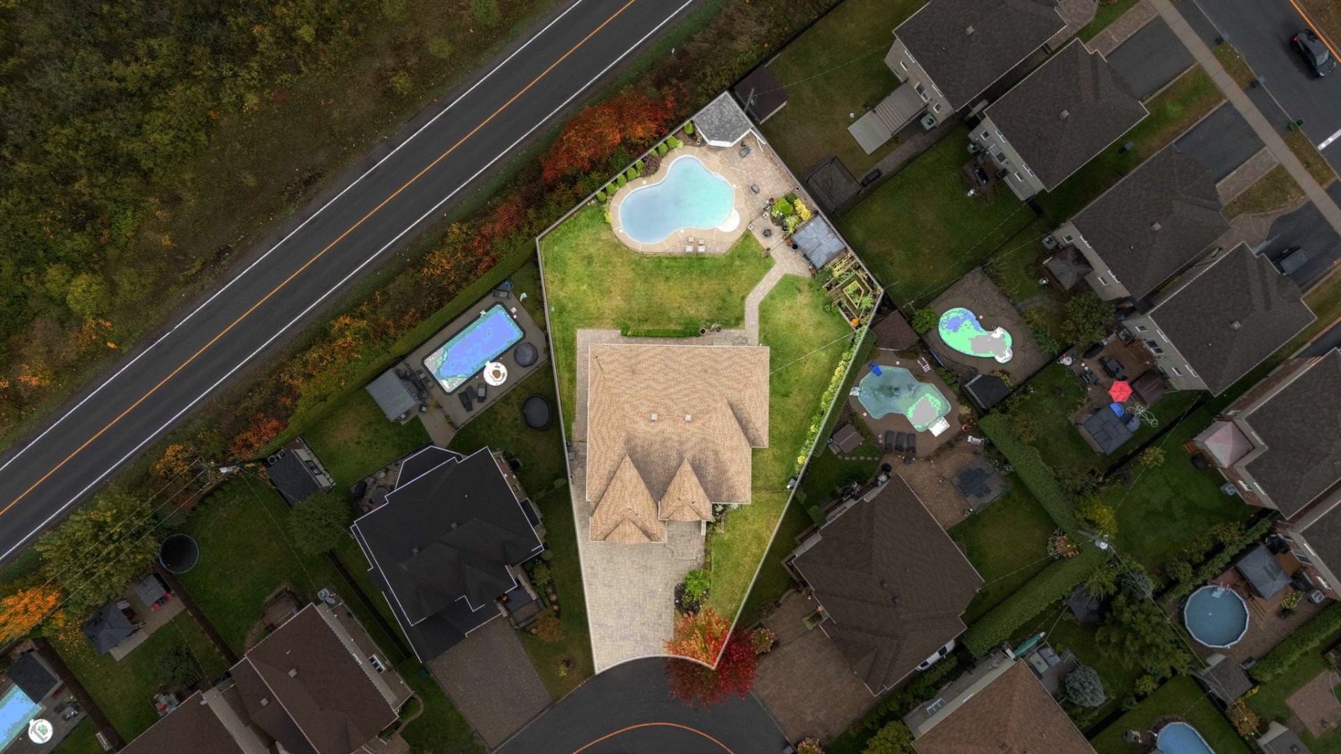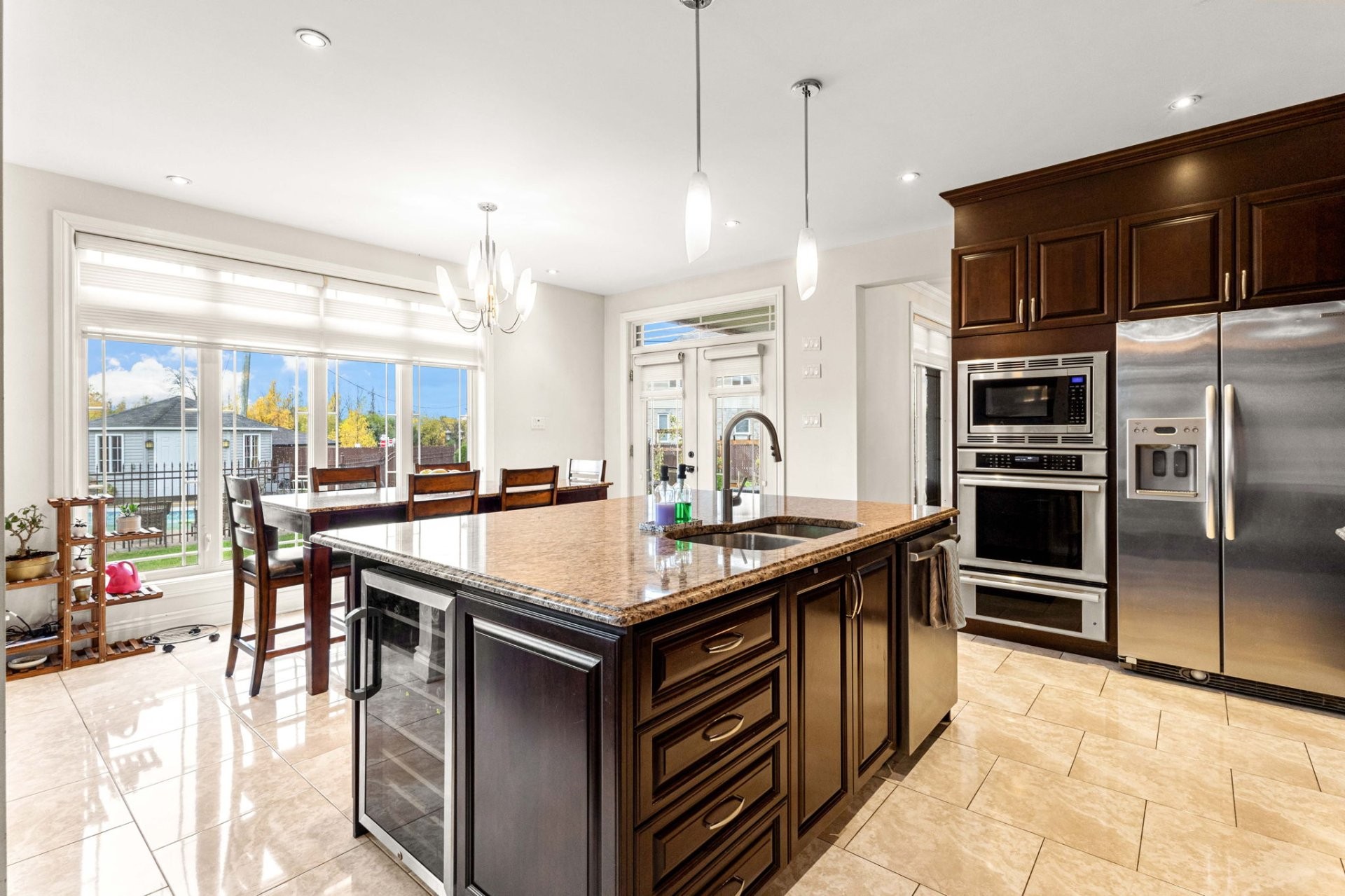 Bienvenue dans cette résidence de luxe construite sur mesure offrant plus de 4 400 pi² d'espace habitable sur un terrain de coin aménagé de plus de 11 000 pi². Façade en pierre, brique sur les quatre côtés, allée en pavé uni et superbe apparence extérieure. Hall d'entrée grandiose avec céramique et escalier circulaire menant à une aire ouverte lumineuse : cuisine, salle à manger et salle familiale avec plafonds cathédrale et grandes fenêtres. Comprend 5 chambres, 4 salles de bain complètes, 1 salle d'eau, finitions haut de gamme, sous-sol aménagé, cour clôturée sans voisins arrière et piscine creusée chauffée. Près de tout.