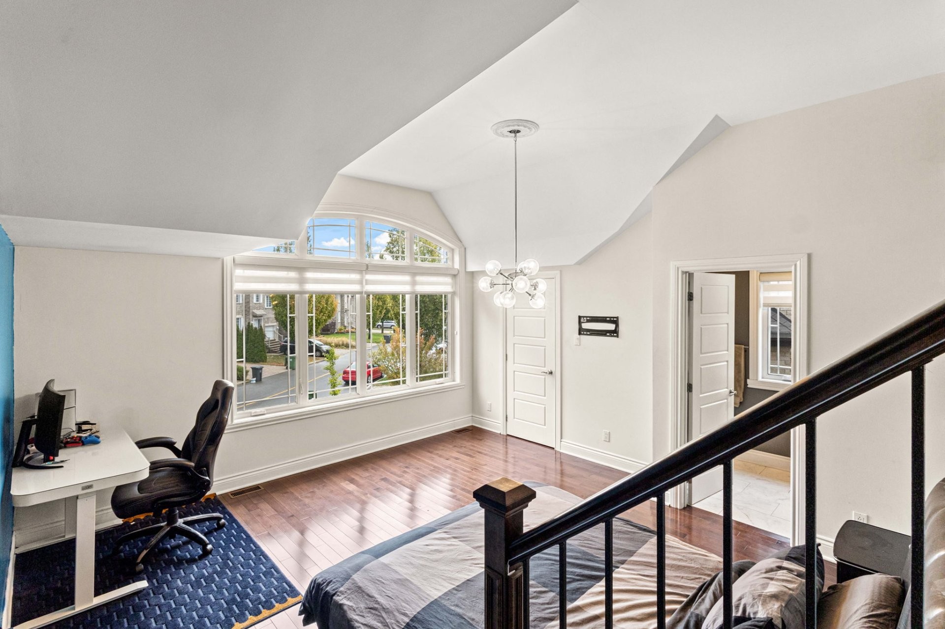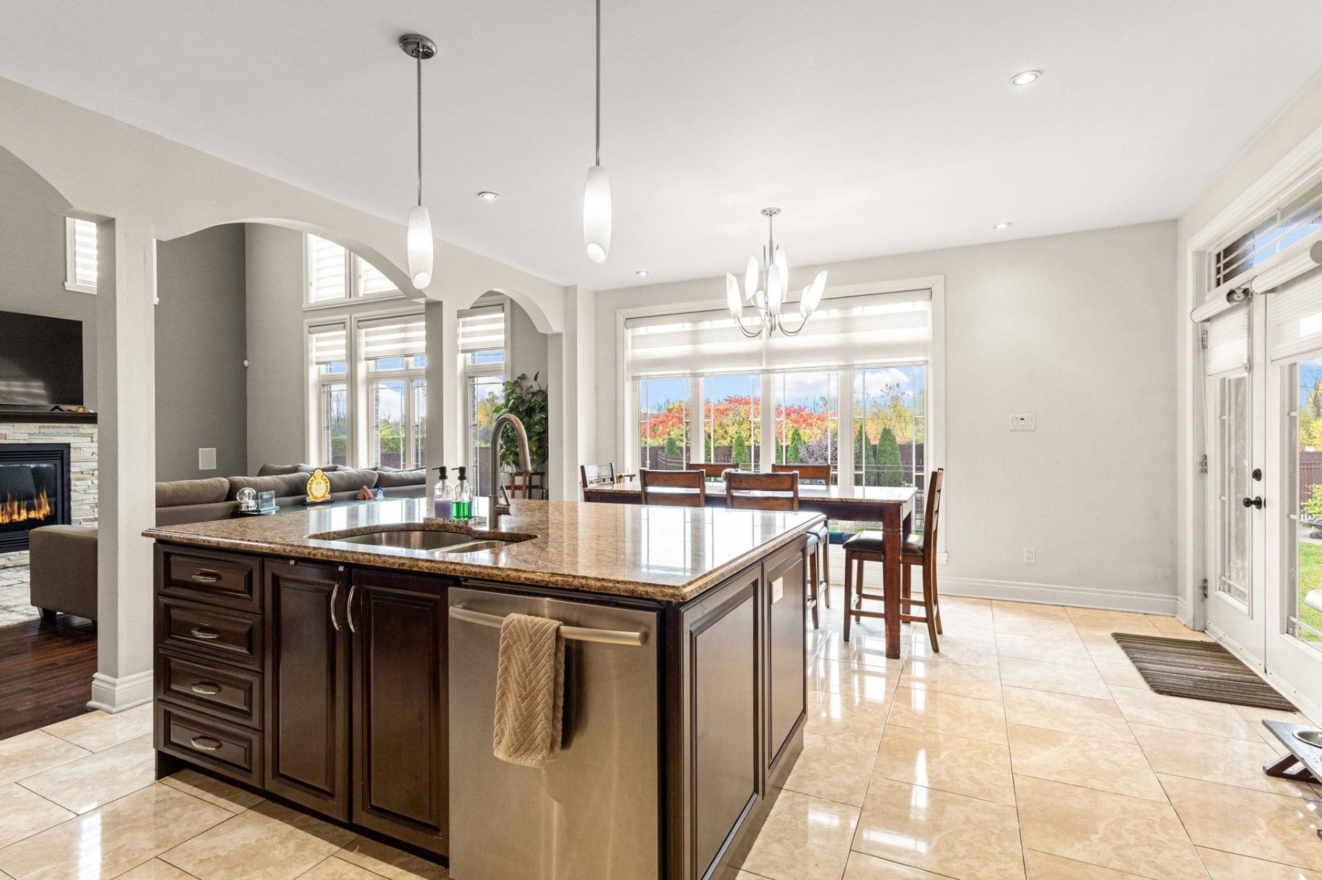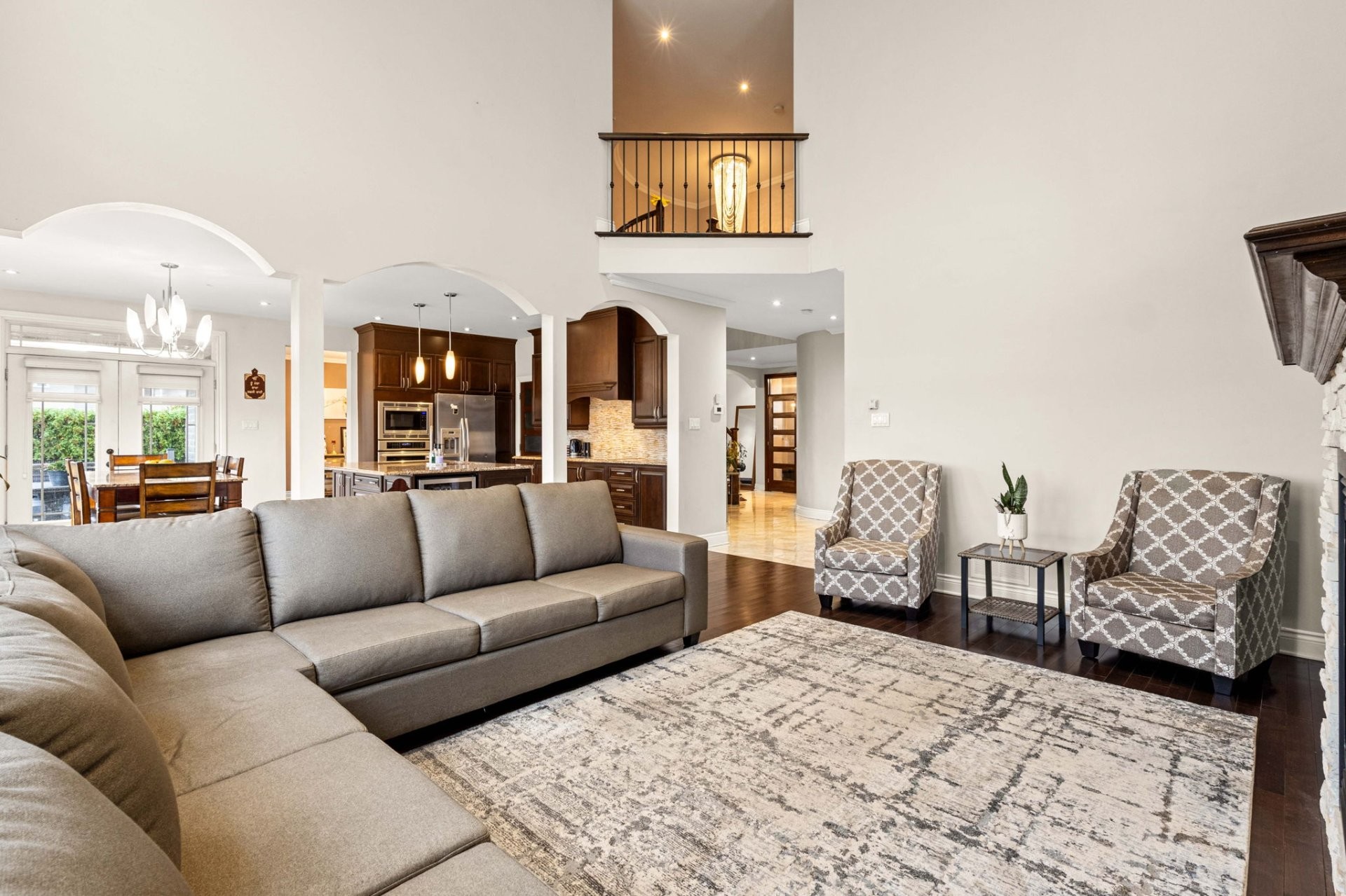 - Aire ouverte au rez-de-chaussée : cuisine, salle à manger, salon et salle familiale avec plafonds cathédrale et grandes fenêtres