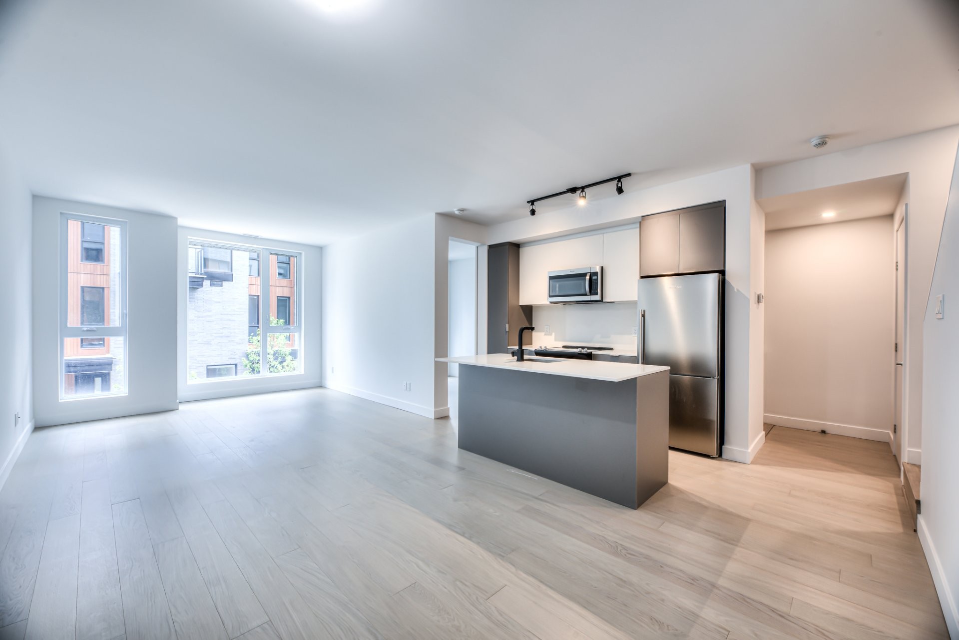 Charmant condo de 2 chambres avec concept à aire ouverte, plafonds 9', grandes fenêtres, chambre principale avec walk-in, jolie cuisine avec...