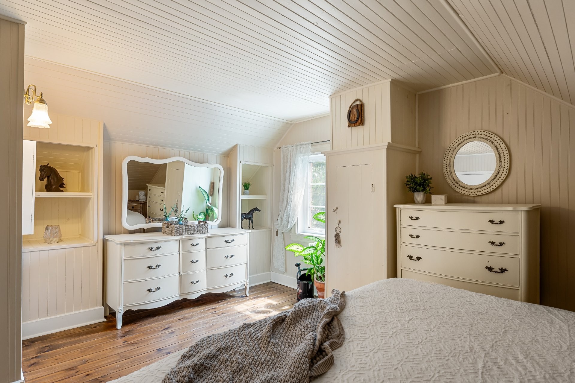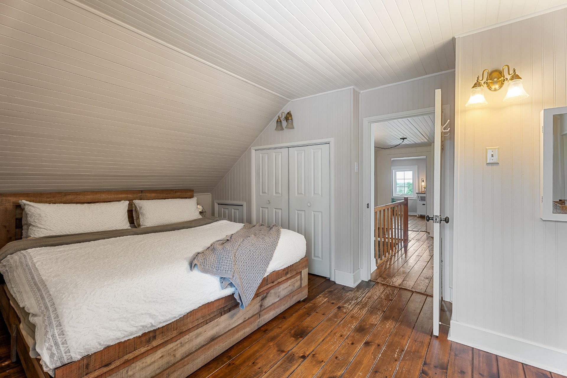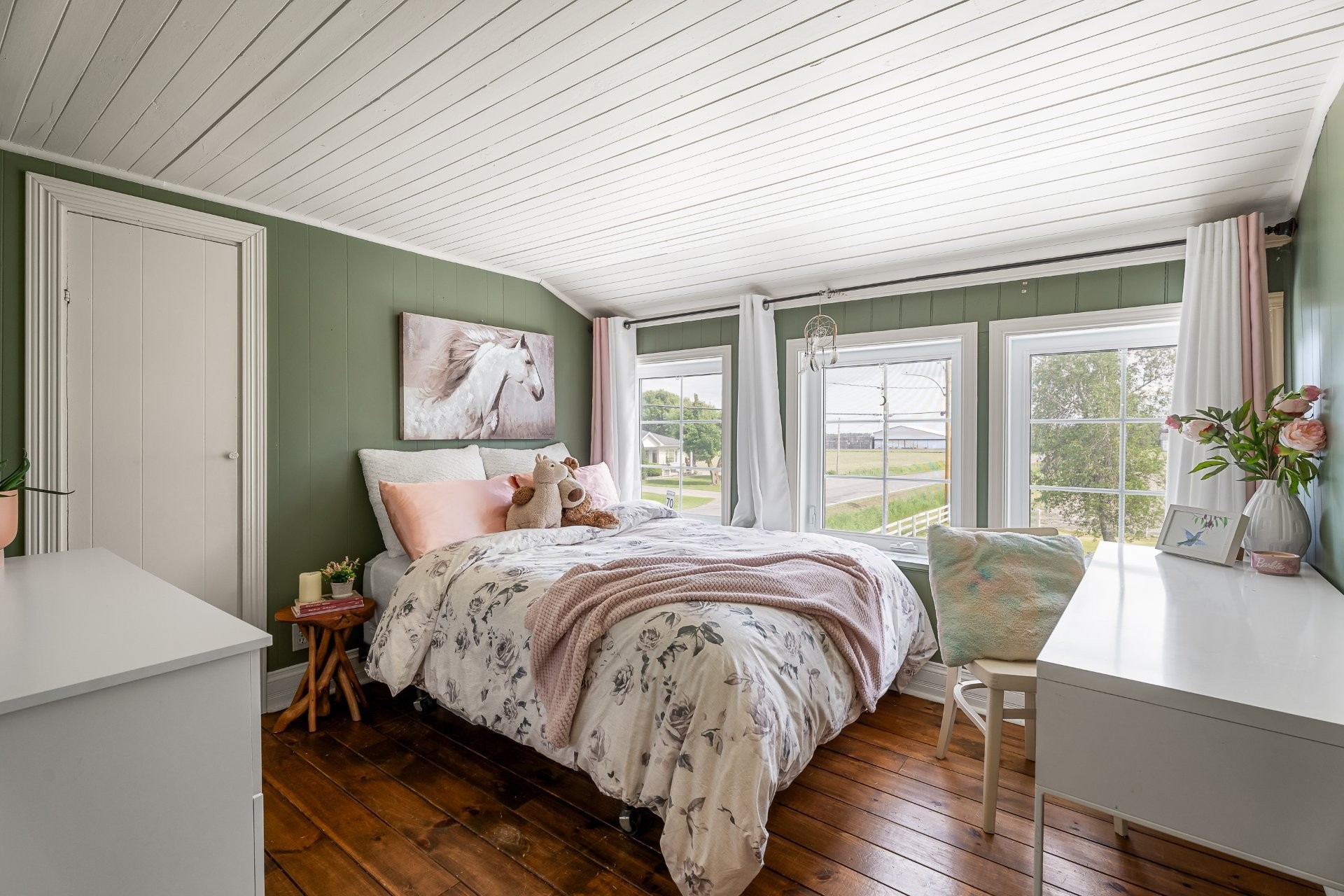 La chaleureuse maison ancestrale offre trois chambres à coucher et deux salles de bain complètes, combinant charme rustique et fonctionnalité. Un grand garage atelier avec deux portes de garage et un loft à l'étage offre un vaste espace de rangement, d'atelier ou de conversion selon vos besoins.