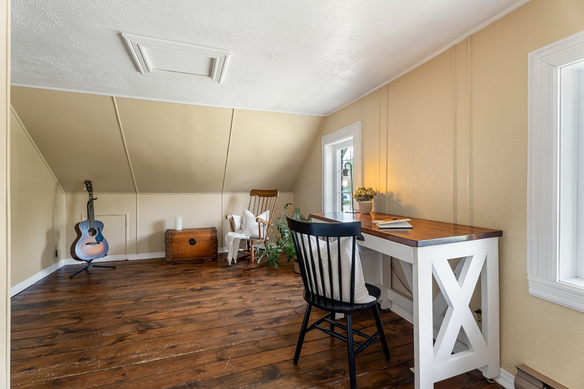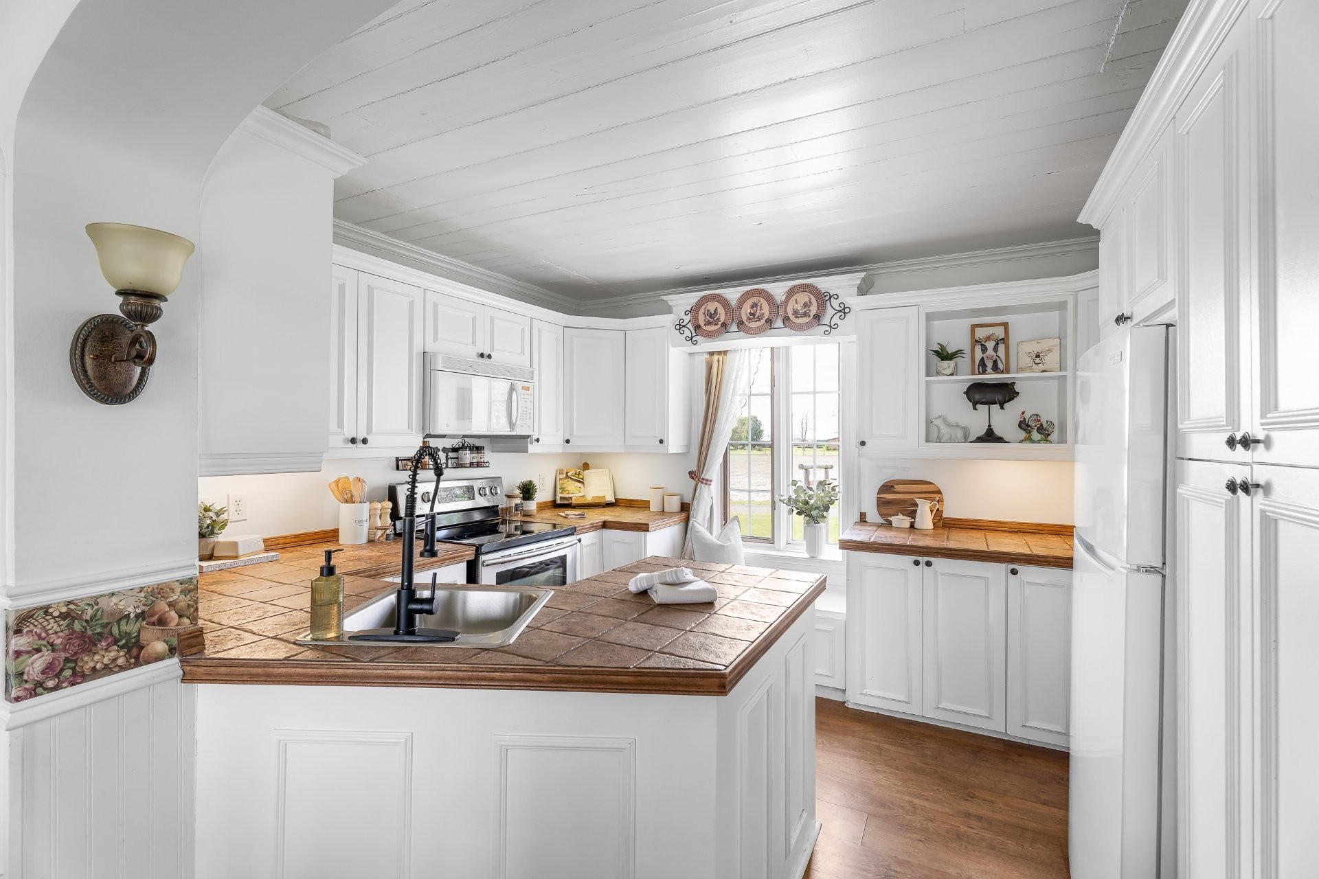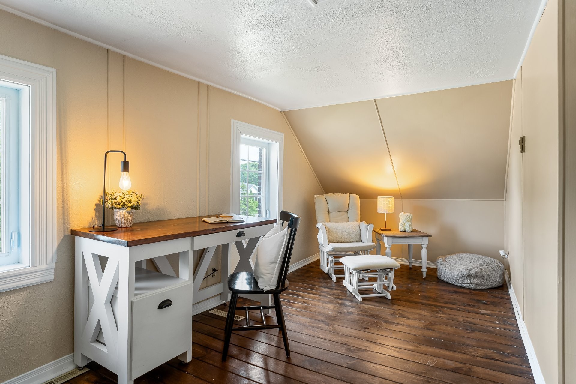 La chaleureuse maison ancestrale offre trois chambres à coucher et deux salles de bain complètes, combinant charme rustique et fonctionnalité. Un grand garage atelier avec deux portes de garage et un loft à l'étage offre un vaste espace de rangement, d'atelier ou de conversion selon vos besoins.