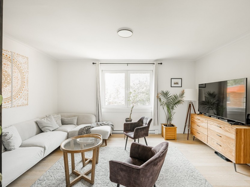 Unité entièrement rénovée en 2023 offrant 3 chambres, bureau et 2 salles de bain. Aire de vie lumineuse et conviviale, cuisine avec îlot cen...