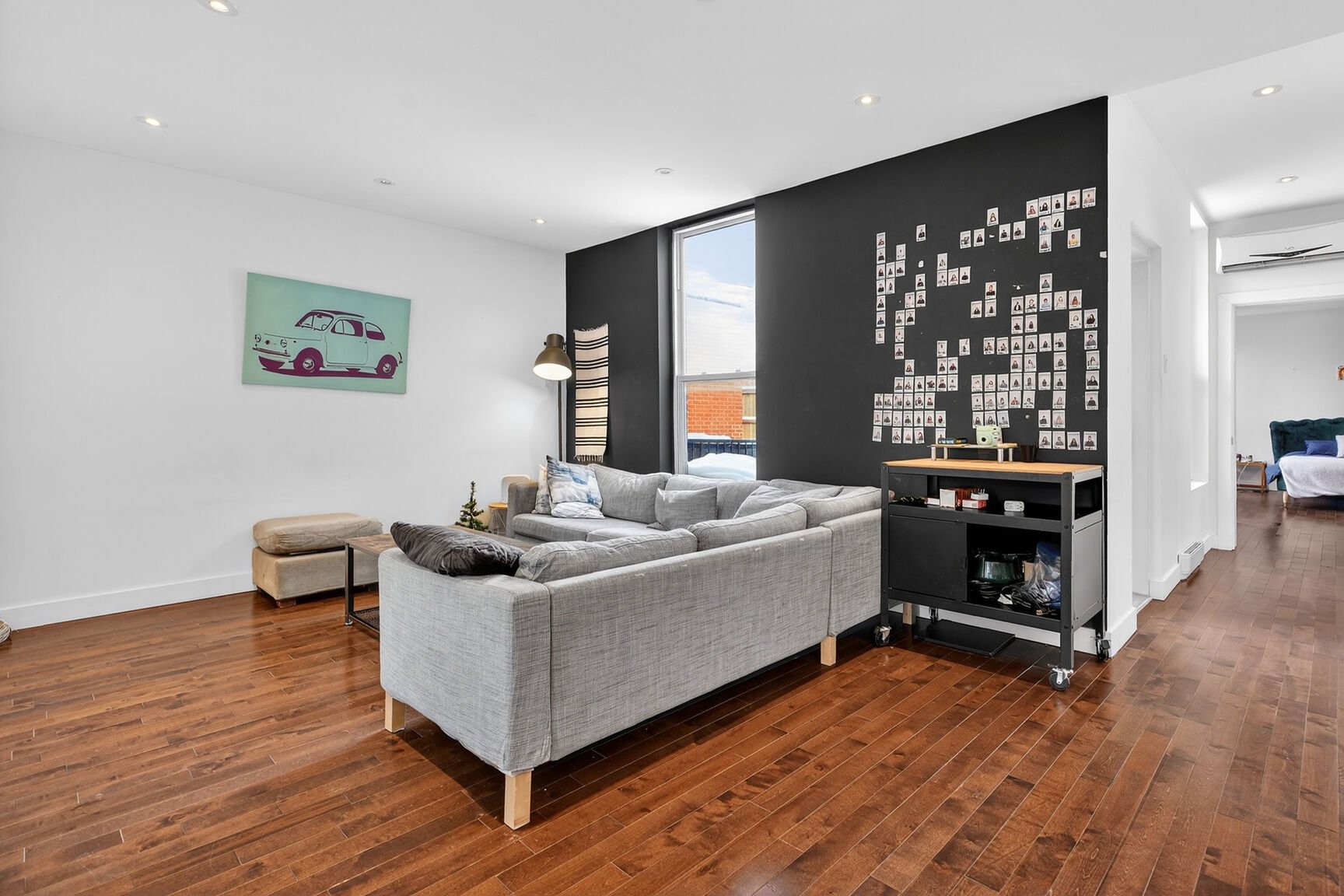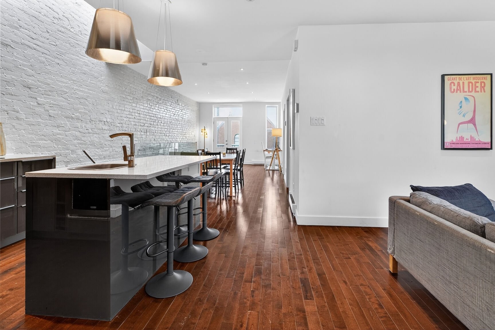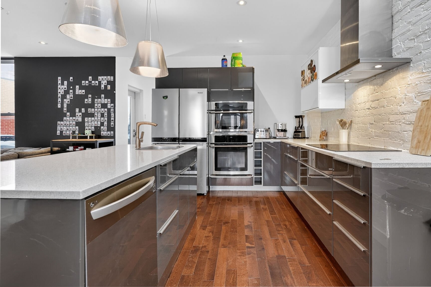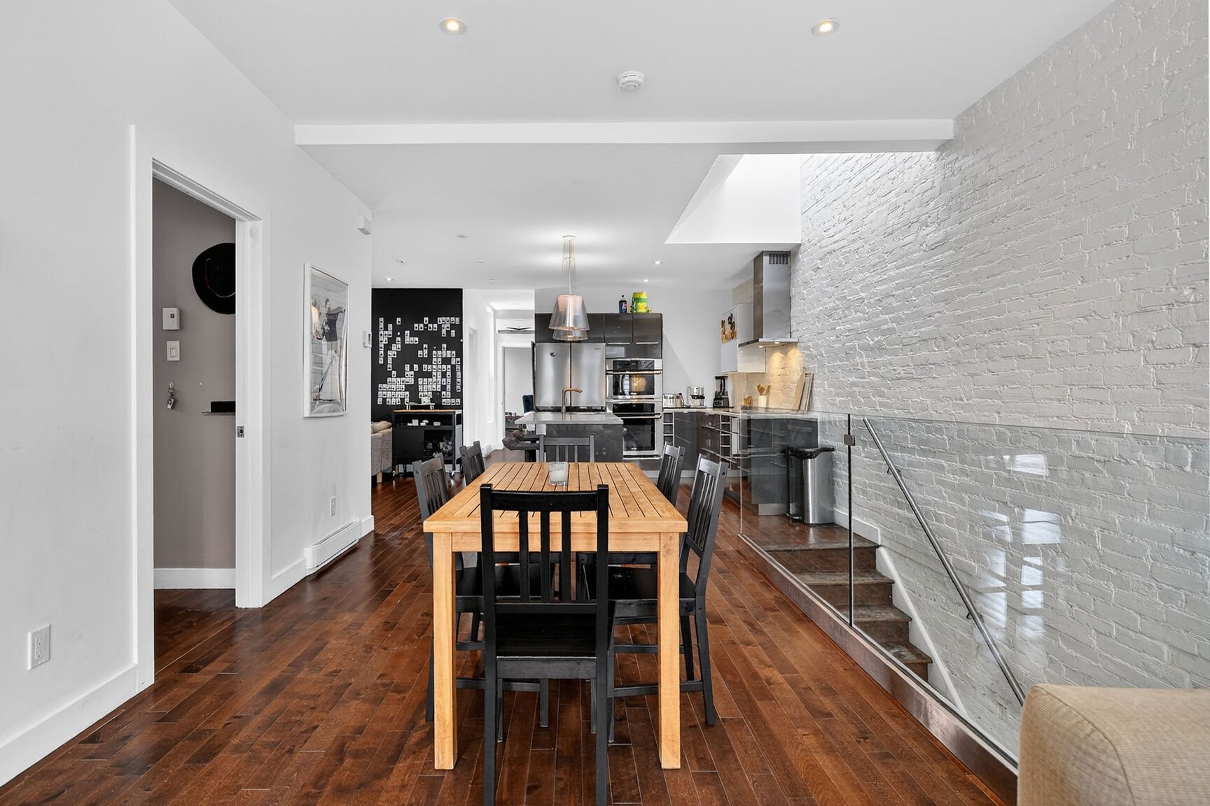 L'aire de vie séduit par ses volumes équilibrés et sa lumière naturelle abondante, grâce à une fenestration sur deux façades et à un puits de lumière judicieusement intégré à la cuisine. Les planchers de bois franc, les comptoirs de quartz et la qualité des finitions témoignent d'une rénovation complète réalisée en 2012, pensée dans une logique de durabilité, d'élégance et de fonctionnalité.