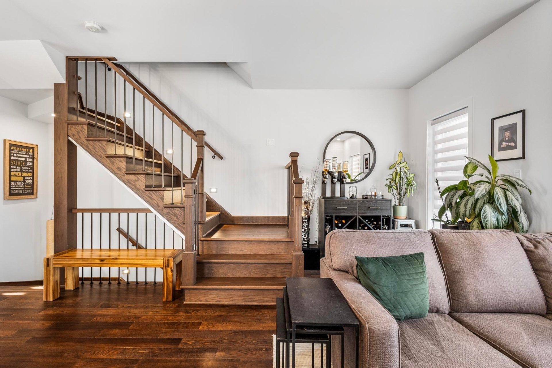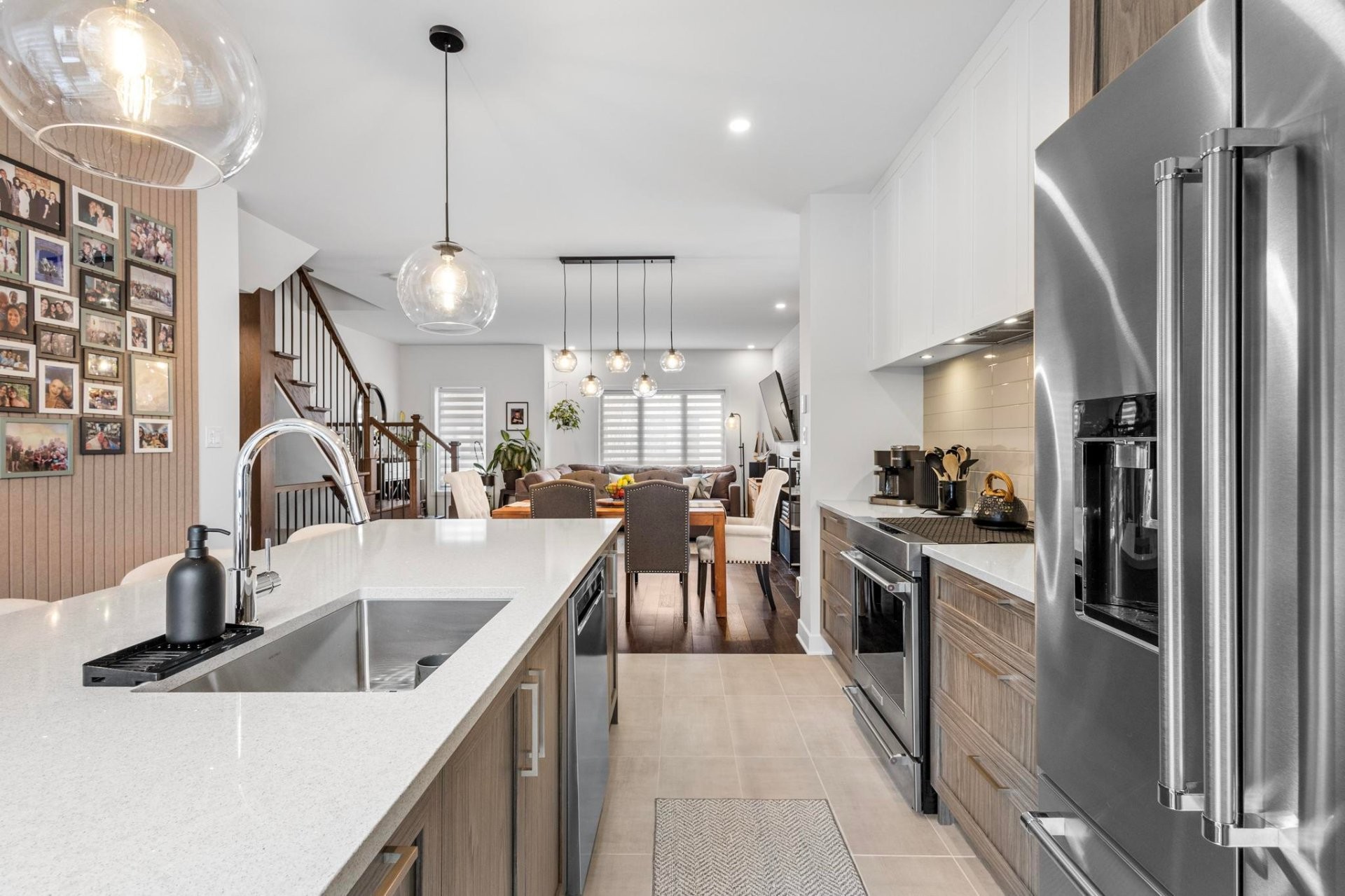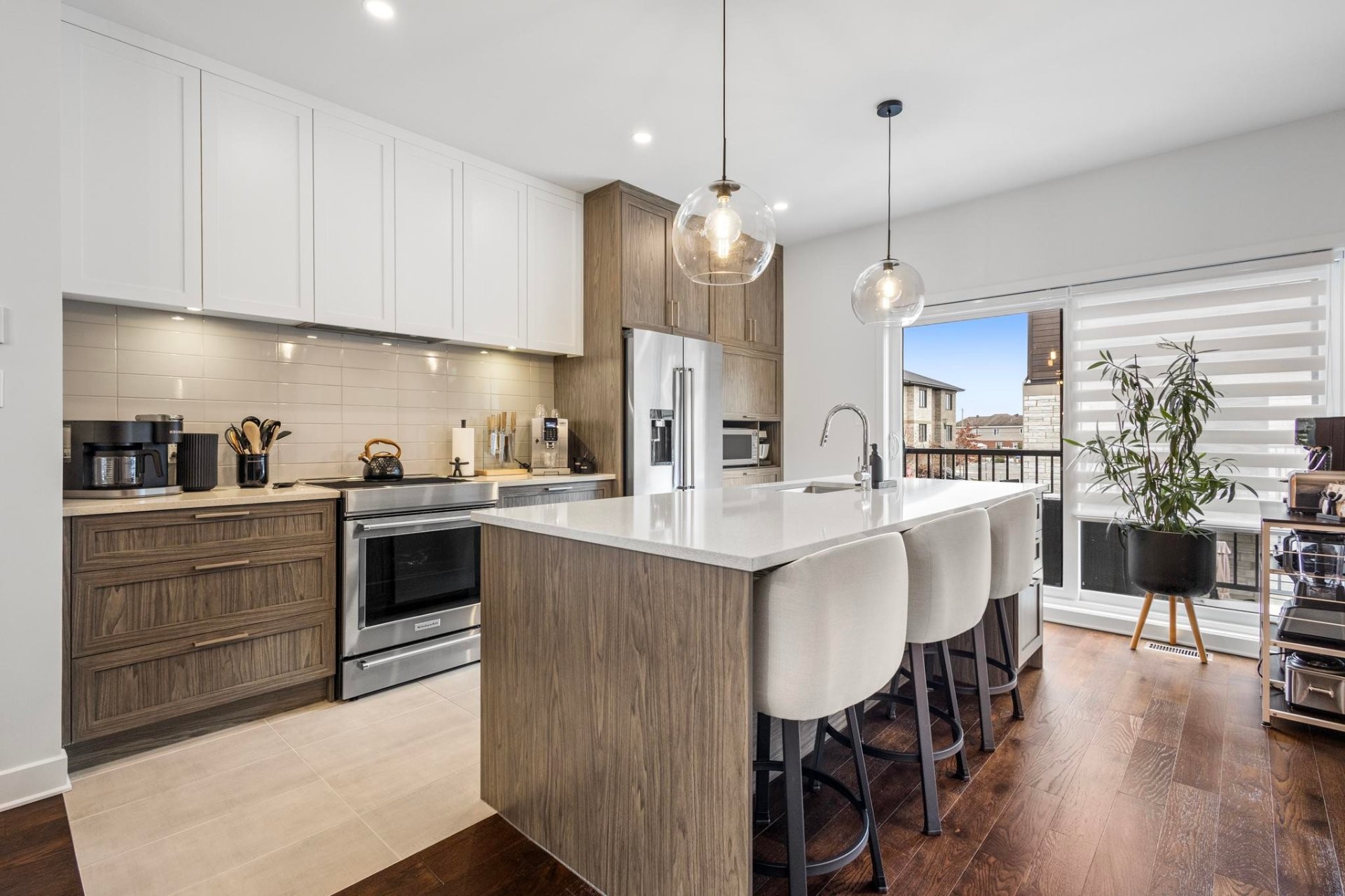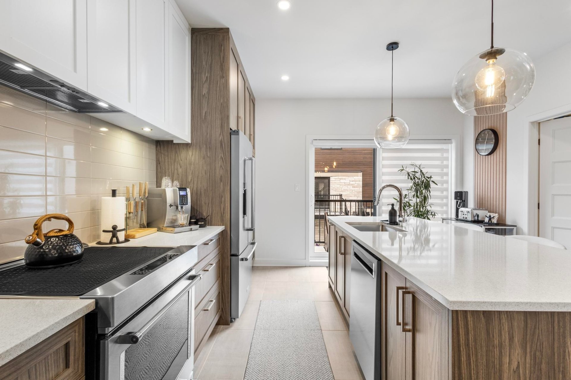 Magnifique maison de ville (2021) entretenue avec un soin exceptionnel. Matériaux de qualité, comptoirs de quartz, amortisseurs dans les cabinets, planchers chauffants (cuisine, SDB, salle d'eau), rangements intégrés dans tous les garde-robes et, petit clin d'oeil, une adorable maisonnette pour le chat intégrée sous l'escalier! Cour arrière aménagée: spa, terrasse, sofa, auvent rétractable, rangement métal, BBQ, ainsi qu'un coin café au balcon relié par un escalier privé. Garage double impeccable avec plancher époxy, racks muraux et prise pour borne de recharge électrique. Une propriété clé en main, lumineuse et chaleureuse!