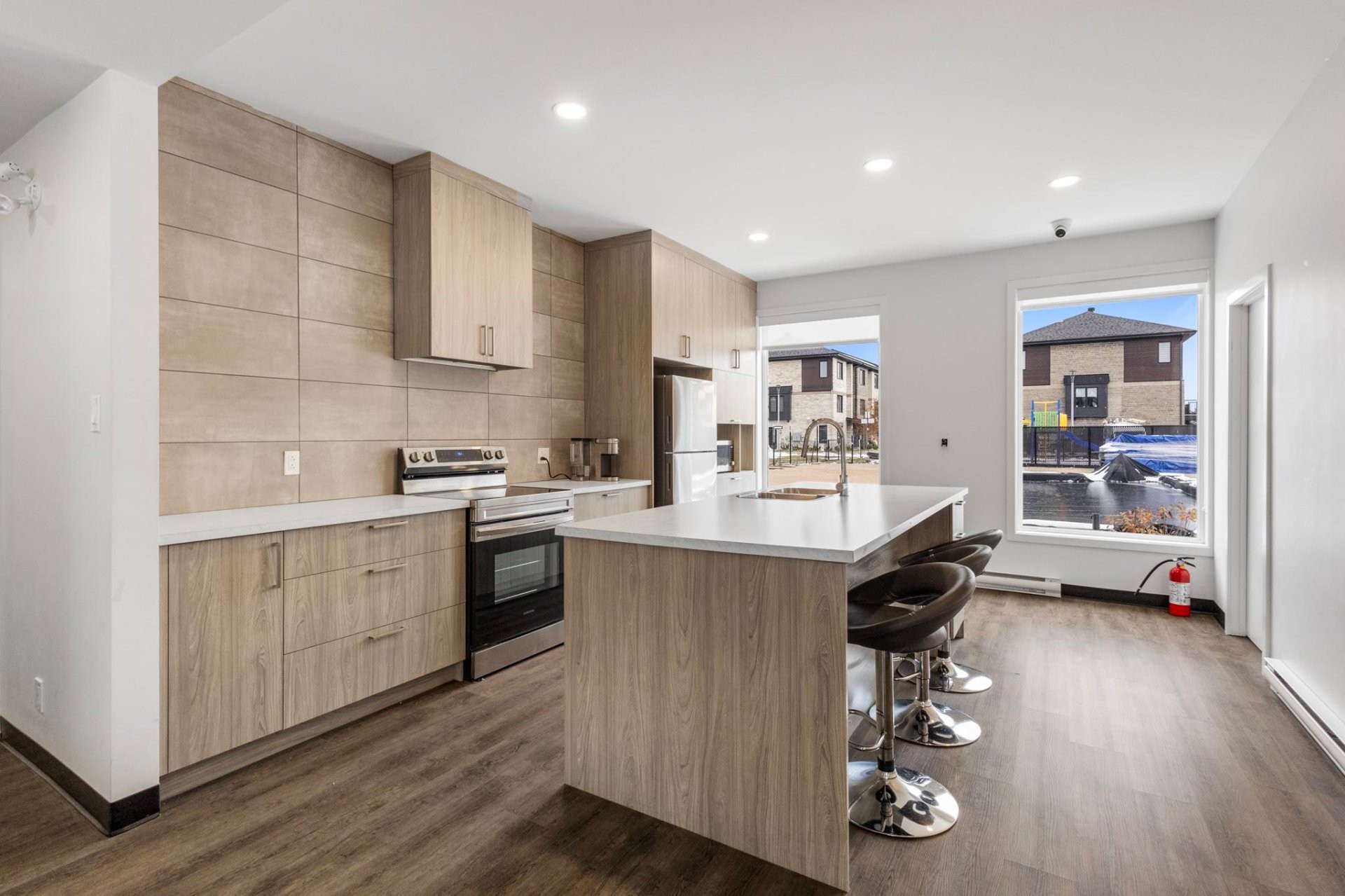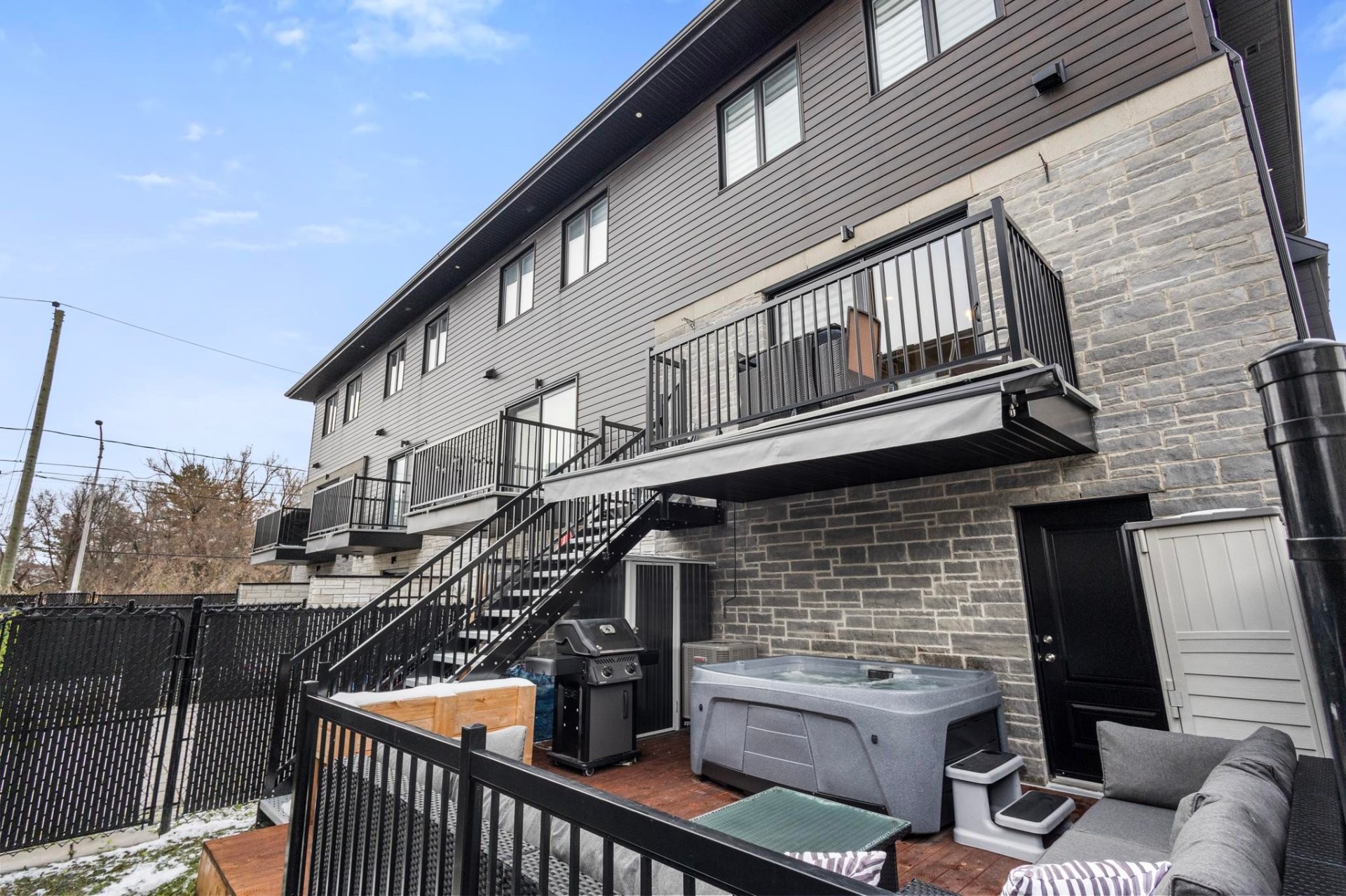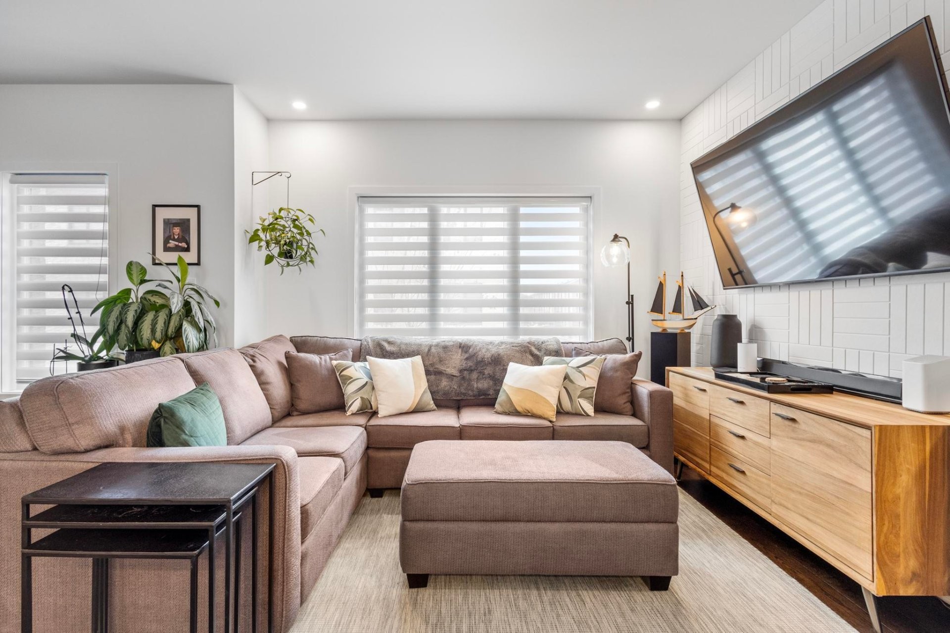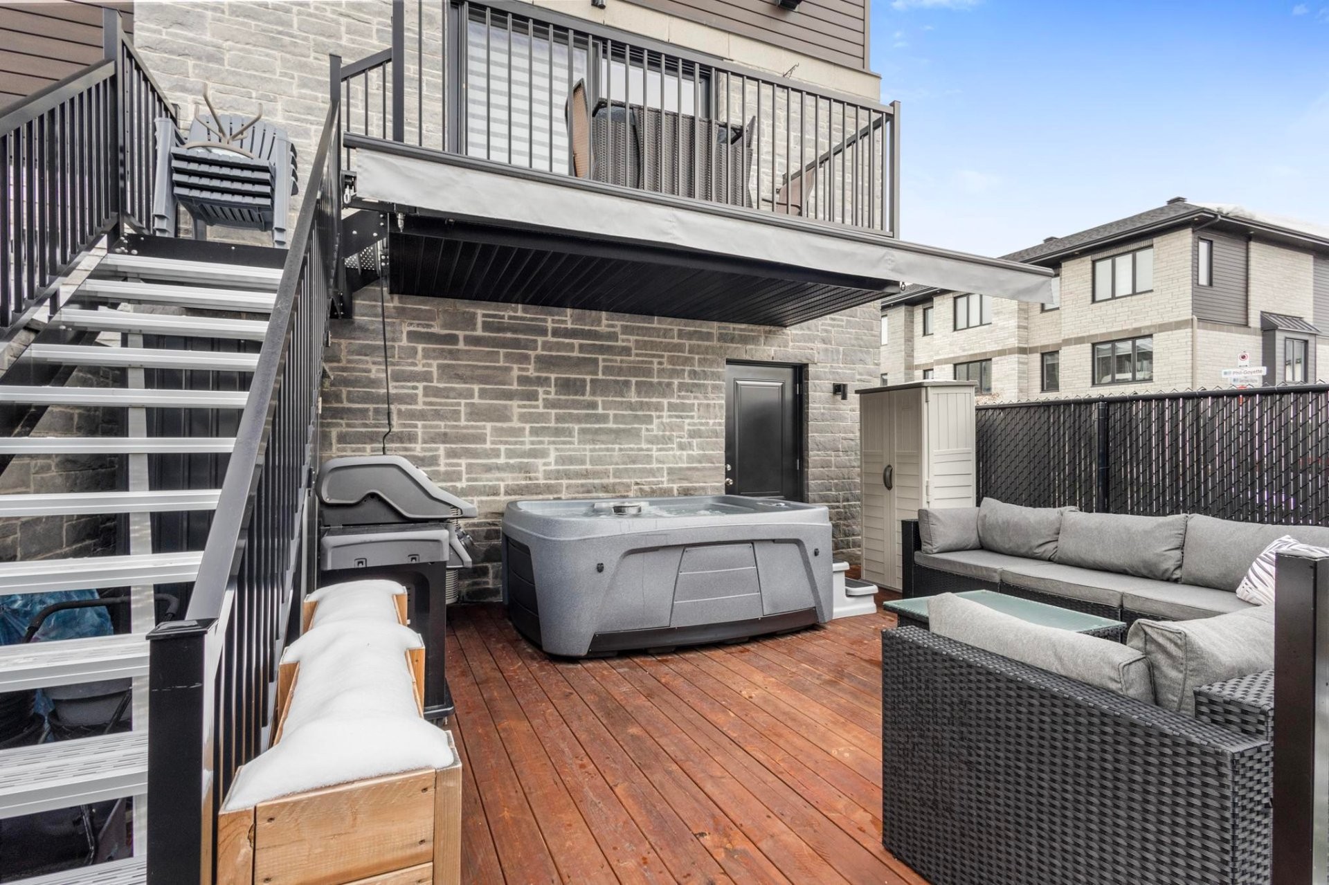 Magnifique maison de ville (2021) entretenue avec un soin exceptionnel. Matériaux de qualité, comptoirs de quartz, amortisseurs dans les cabinets, planchers chauffants (cuisine, SDB, salle d'eau), rangements intégrés dans tous les garde-robes et, petit clin d'oeil, une adorable maisonnette pour le chat intégrée sous l'escalier! Cour arrière aménagée: spa, terrasse, sofa, auvent rétractable, rangement métal, BBQ, ainsi qu'un coin café au balcon relié par un escalier privé. Garage double impeccable avec plancher époxy, racks muraux et prise pour borne de recharge électrique. Une propriété clé en main, lumineuse et chaleureuse!