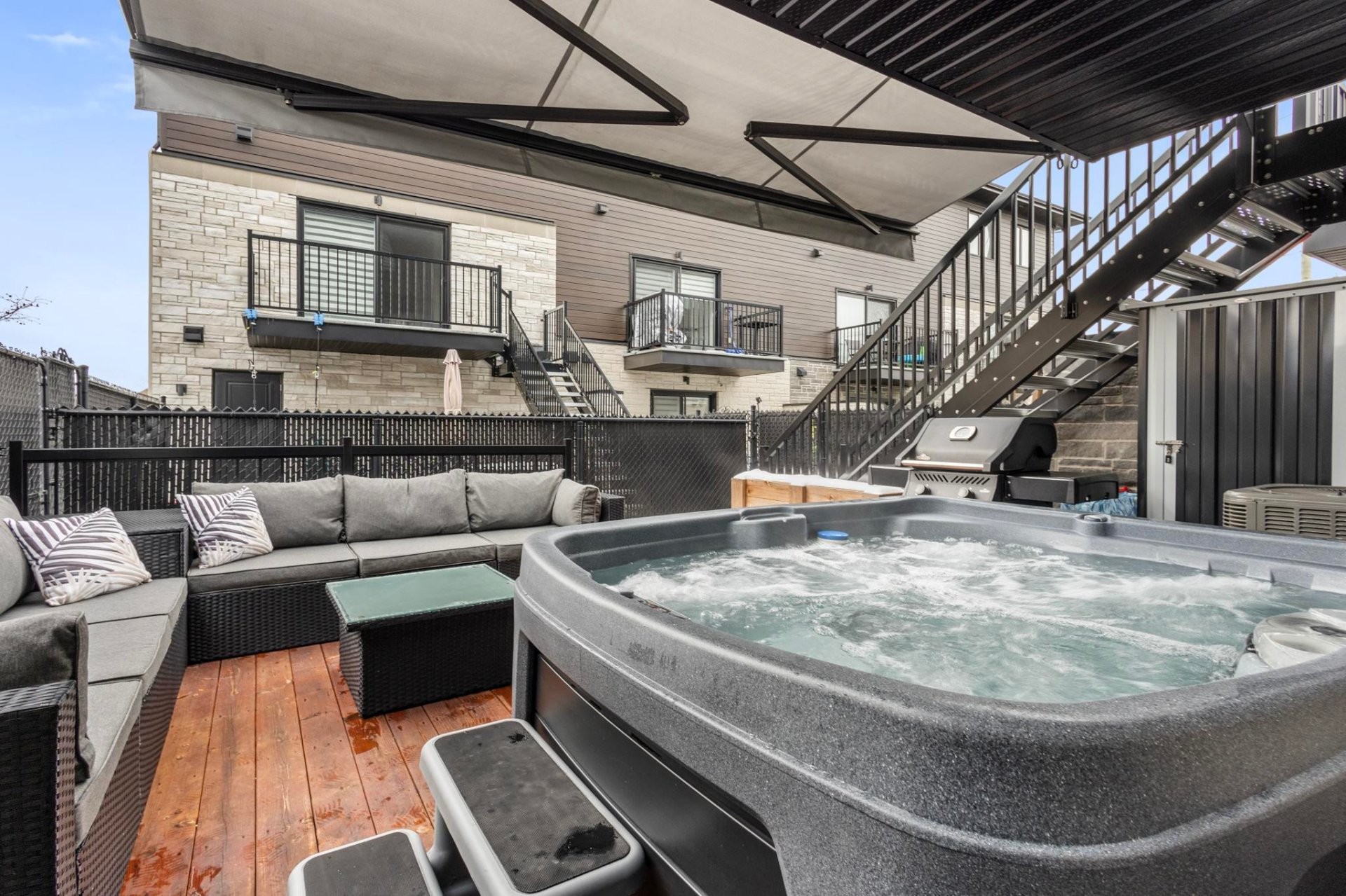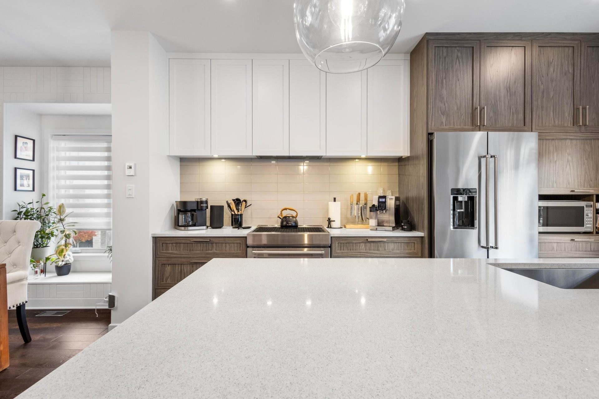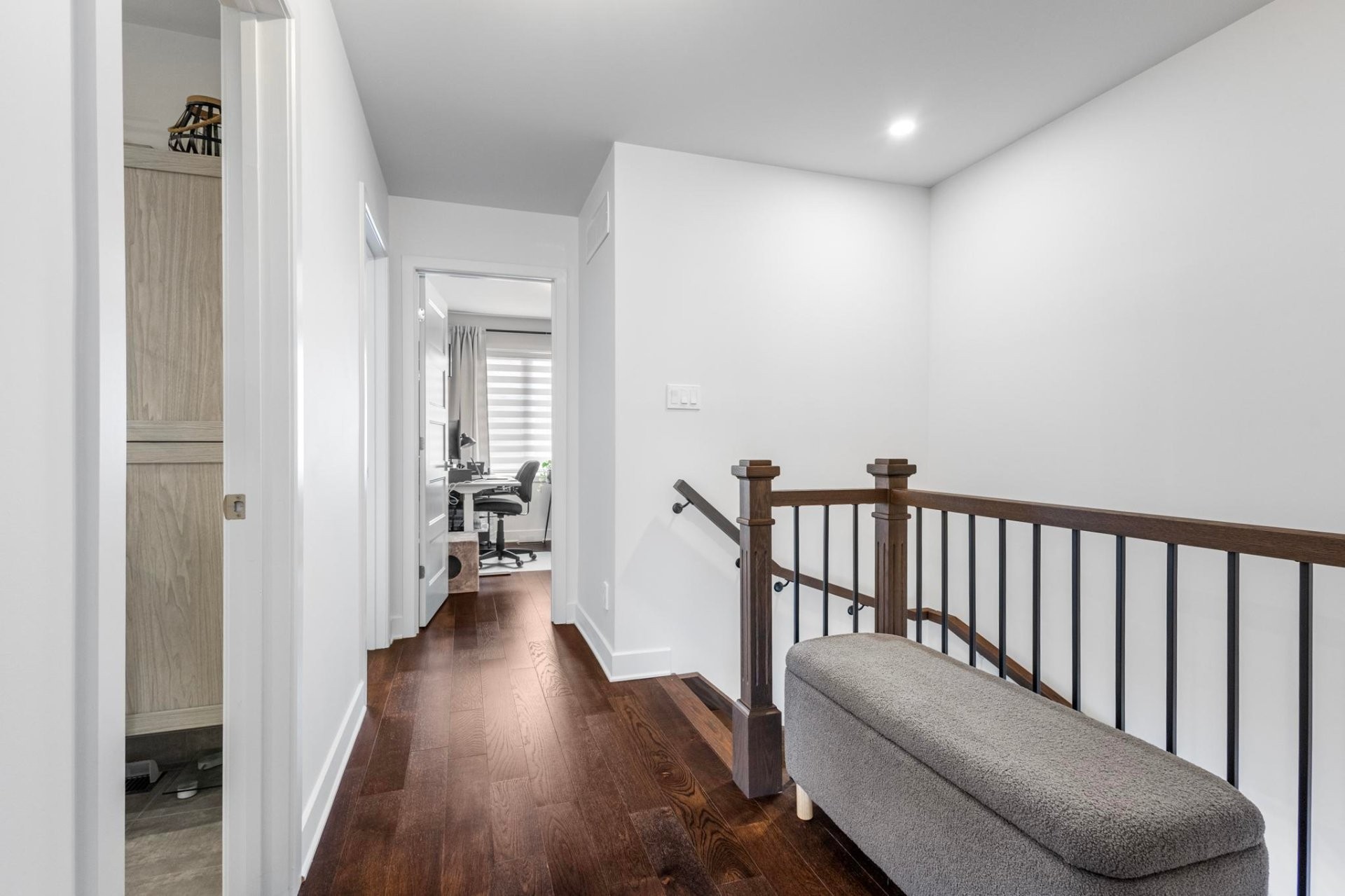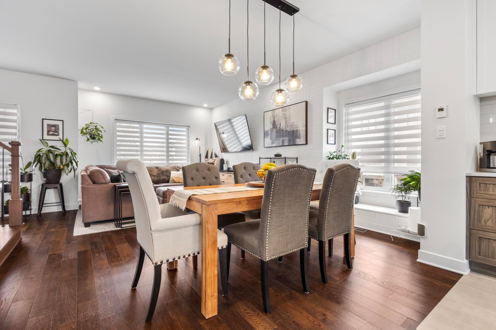 Magnifique maison de ville (2021) entretenue avec un soin exceptionnel. Matériaux de qualité, comptoirs de quartz, amortisseurs dans les cabinets, planchers chauffants (cuisine, SDB, salle d'eau), rangements intégrés dans tous les garde-robes et, petit clin d'oeil, une adorable maisonnette pour le chat intégrée sous l'escalier! Cour arrière aménagée: spa, terrasse, sofa, auvent rétractable, rangement métal, BBQ, ainsi qu'un coin café au balcon relié par un escalier privé. Garage double impeccable avec plancher époxy, racks muraux et prise pour borne de recharge électrique. Une propriété clé en main, lumineuse et chaleureuse!
