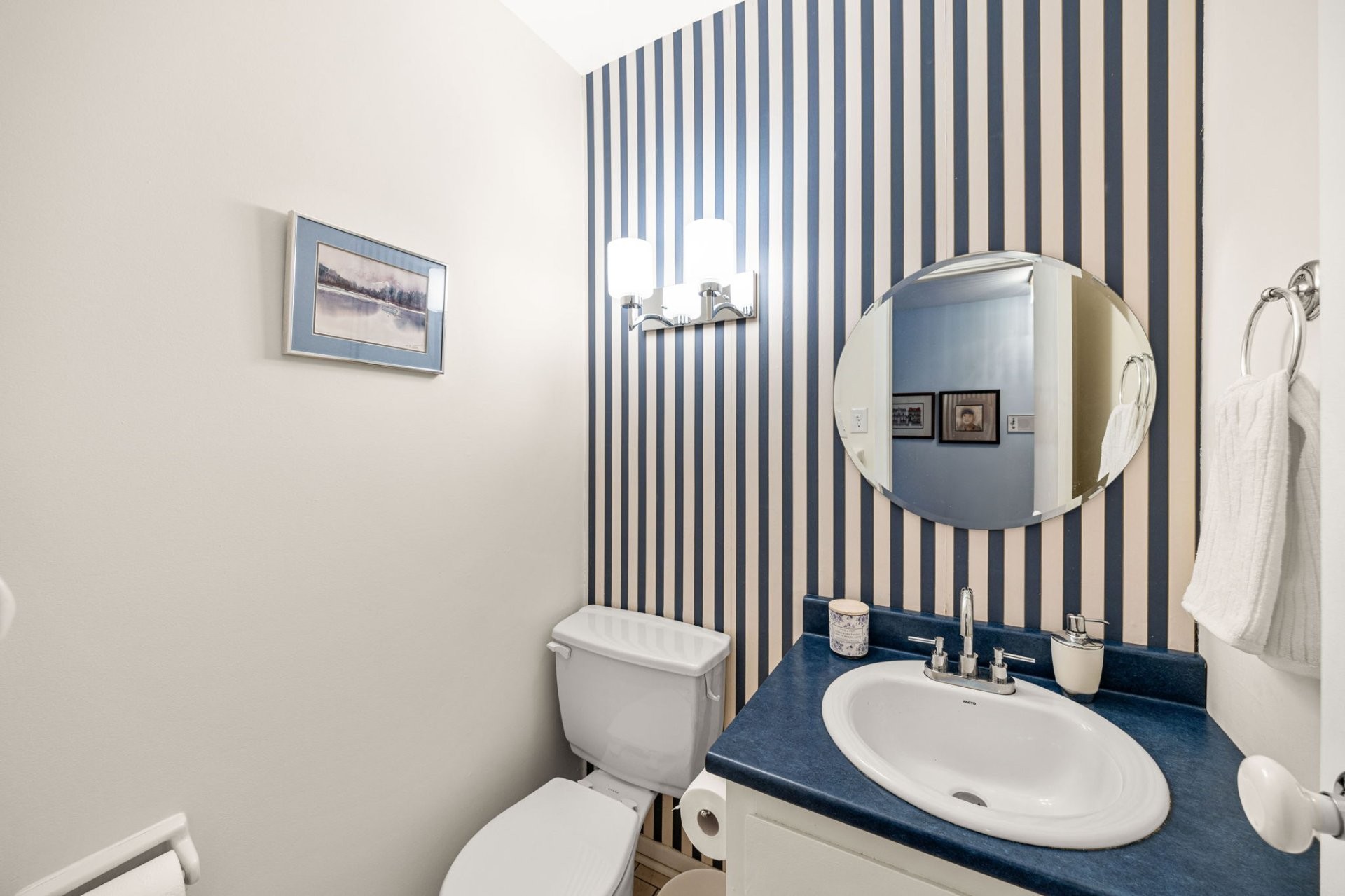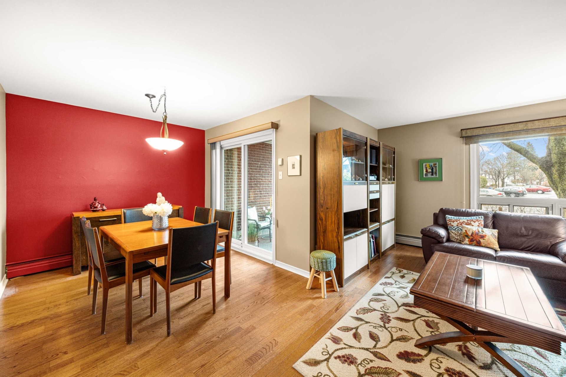 Le rez-de-chaussée offre un espace de vie et salle à manger lumineux à aire ouverte, parfait pour recevoir. Des portes-patio mènent à un balcon privé, avec l'avantage d'un stationnement extérieur situé juste en face. La cuisine avec coin repas ainsi qu'une salle d'eau complètent cet étage.
