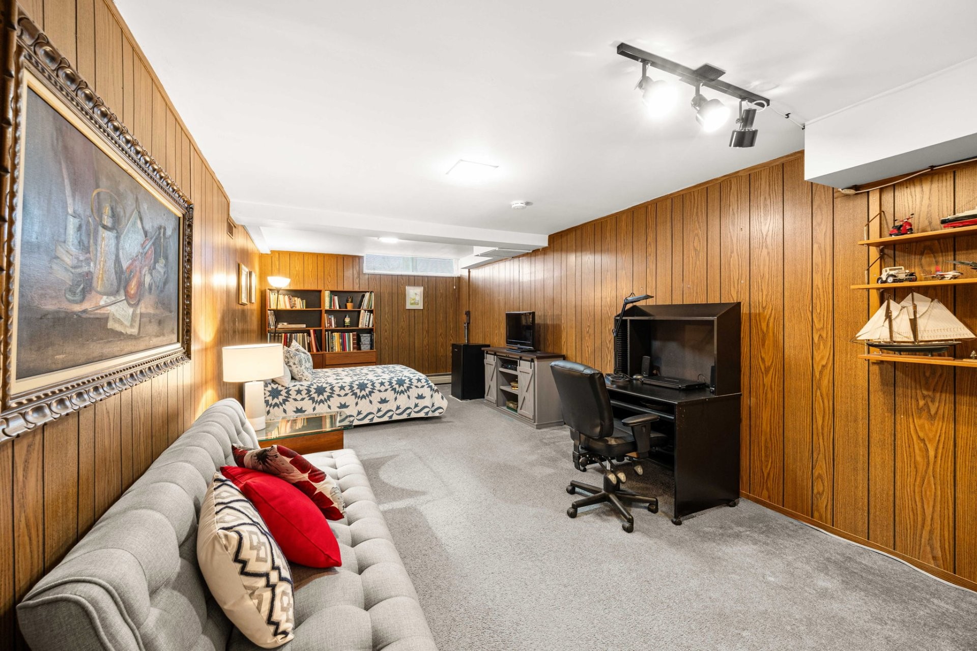 Le sous-sol aménagé comprend une chambre polyvalente pouvant servir de salle familiale ou de bureau, ainsi qu'un espace atelier, une salle de lavage et de nombreux espaces de rangement.