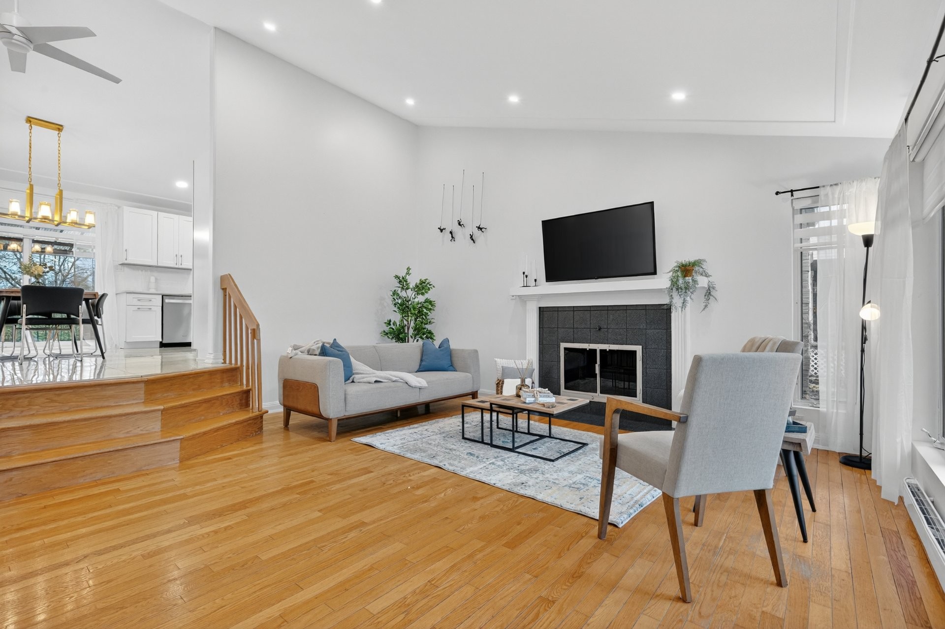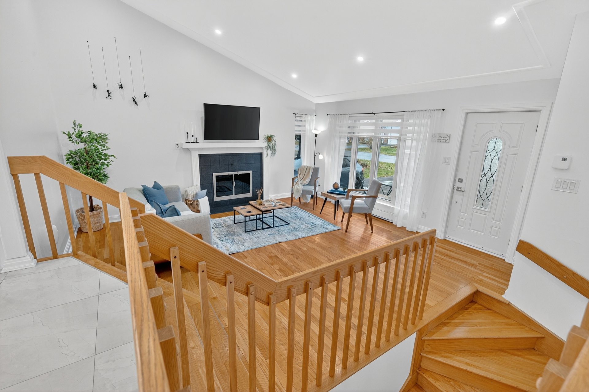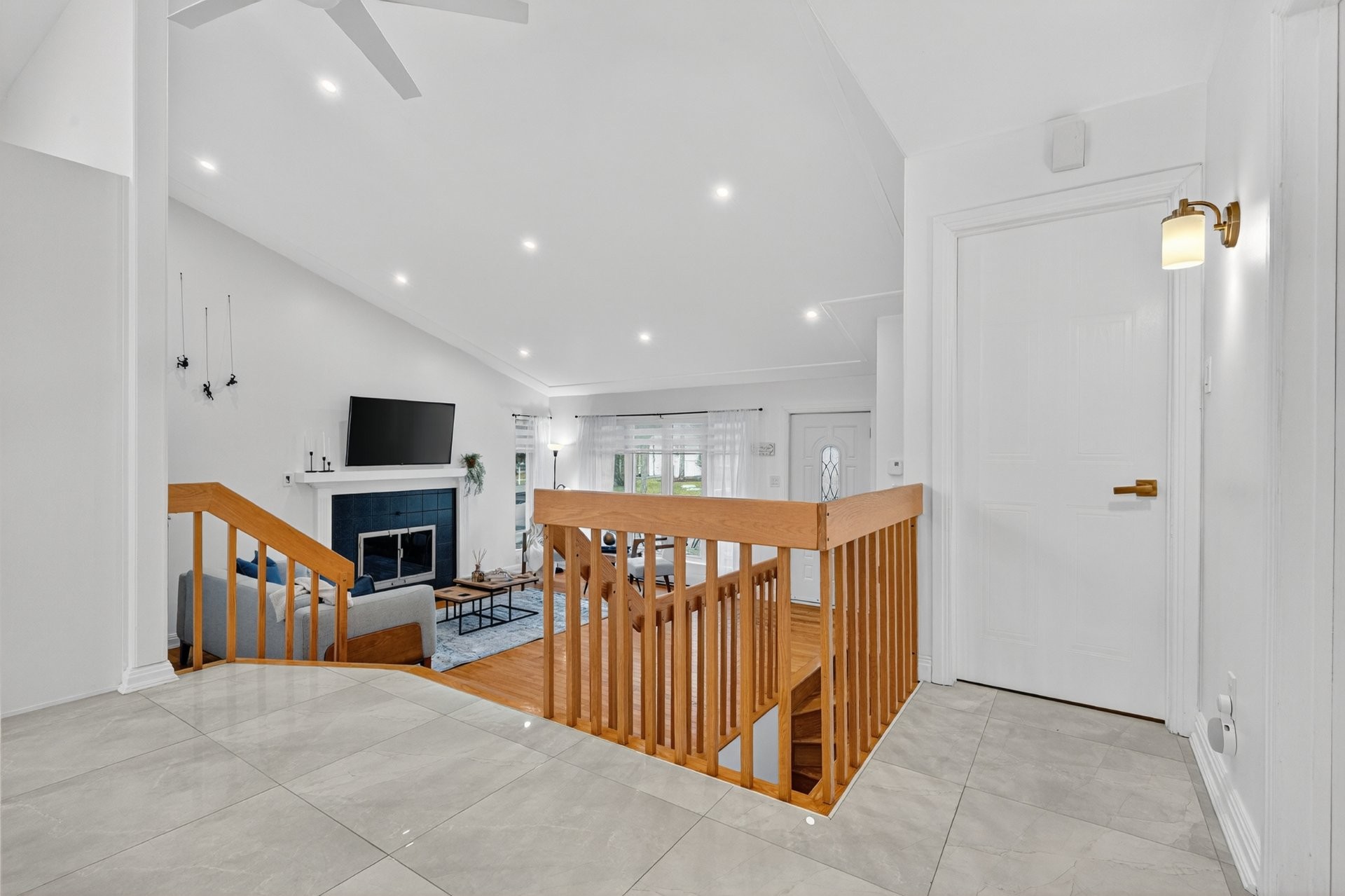 Dès l'entrée, l'aire de vie principale séduit par sa luminosité abondante, ses plafonds cathédrales et son foyer au bois qui crée une ambiance chaleureuse et invitante. La cuisine a été entièrement rénovée: nouveaux planchers de céramique, finitions modernes, armoires actualisées et une grande porte-patio donnant directement sur la cour arrière, afin de favoriser une transition fluide entre l'intérieur et l'extérieur.