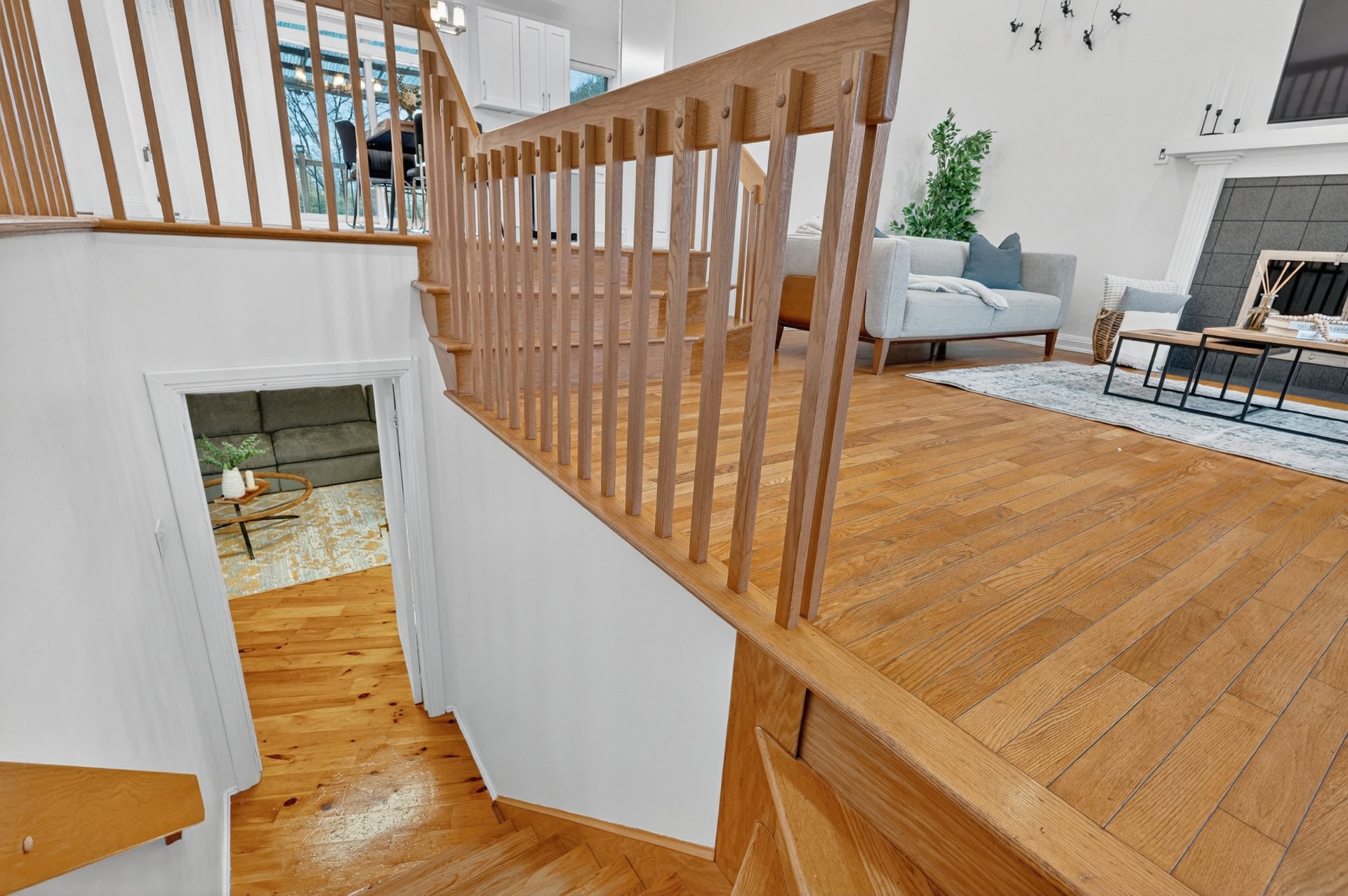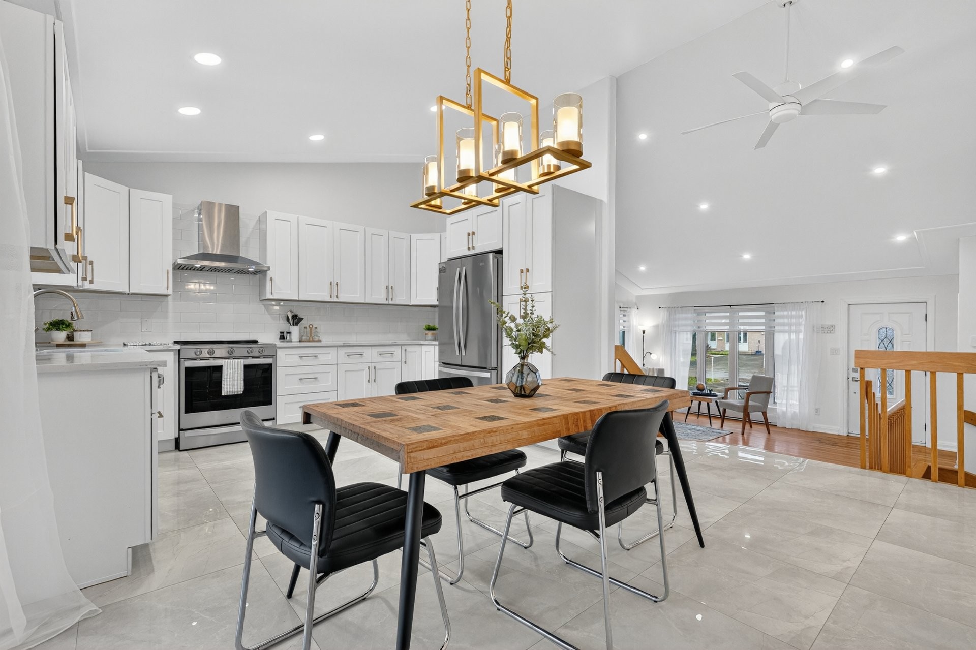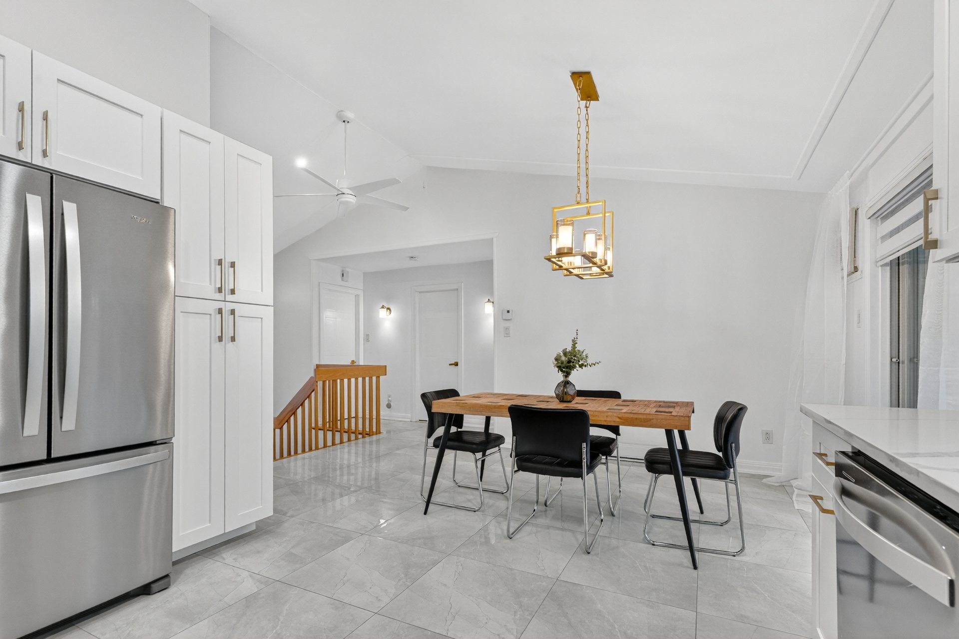 Dès l'entrée, l'aire de vie principale séduit par sa luminosité abondante, ses plafonds cathédrales et son foyer au bois qui crée une ambiance chaleureuse et invitante. La cuisine a été entièrement rénovée: nouveaux planchers de céramique, finitions modernes, armoires actualisées et une grande porte-patio donnant directement sur la cour arrière, afin de favoriser une transition fluide entre l'intérieur et l'extérieur.