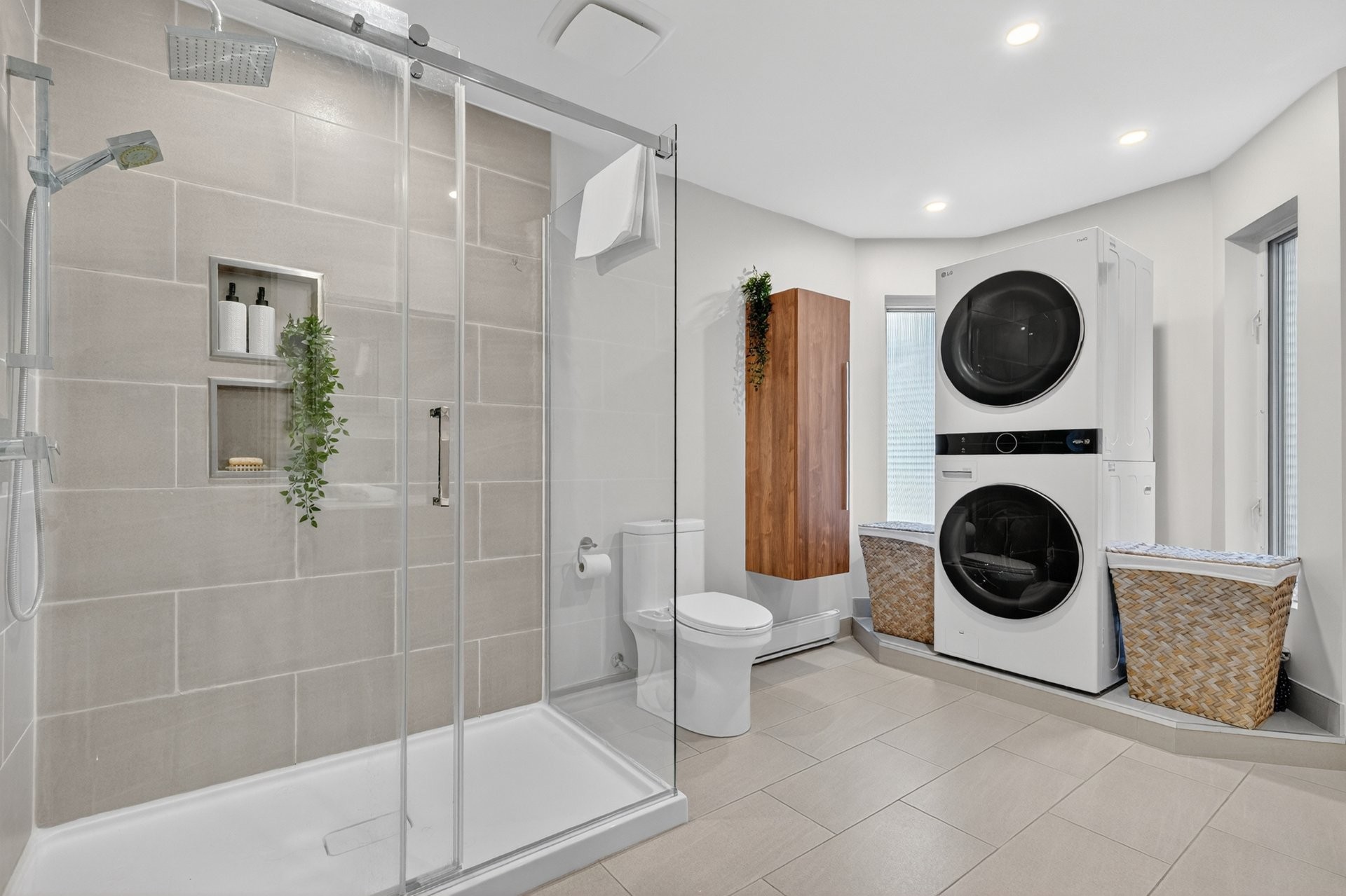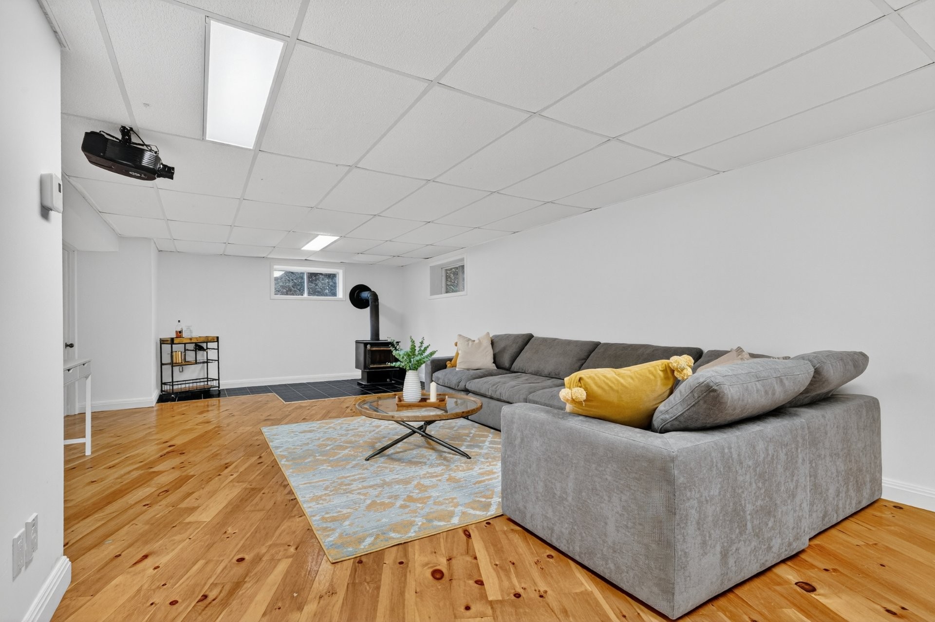 Le sous-sol entièrement aménagé ajoute une superficie de vie appréciable avec une vaste salle familiale, un poêle au bois pour plus de confort, une salle d'eau ainsi qu'un accès intérieur au garage chauffé, un avantage non négligeable durant les mois d'hiver. Parmi les caractéristiques supplémentaires: chauffage électrique, climatiseur mural et système d'aspirateur central.