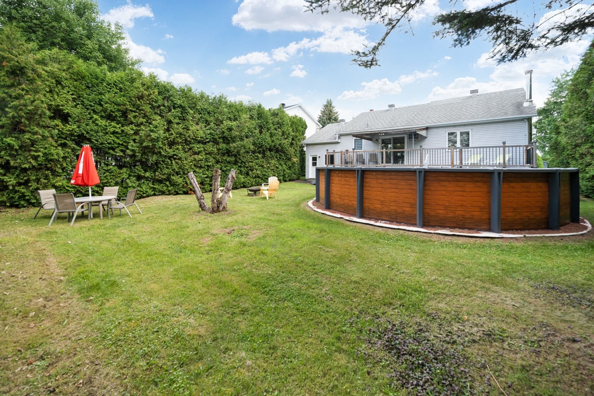 À l'extérieur, la propriété se trouve sur un terrain privé bordé de cèdres, sans voisins à l'arrière, offrant un cadre paisible rarement offert à ce prix. La piscine hors terre de 24 pieds permet de profiter pleinement des journées estivales, tout en assurant un entretien simple et efficace.