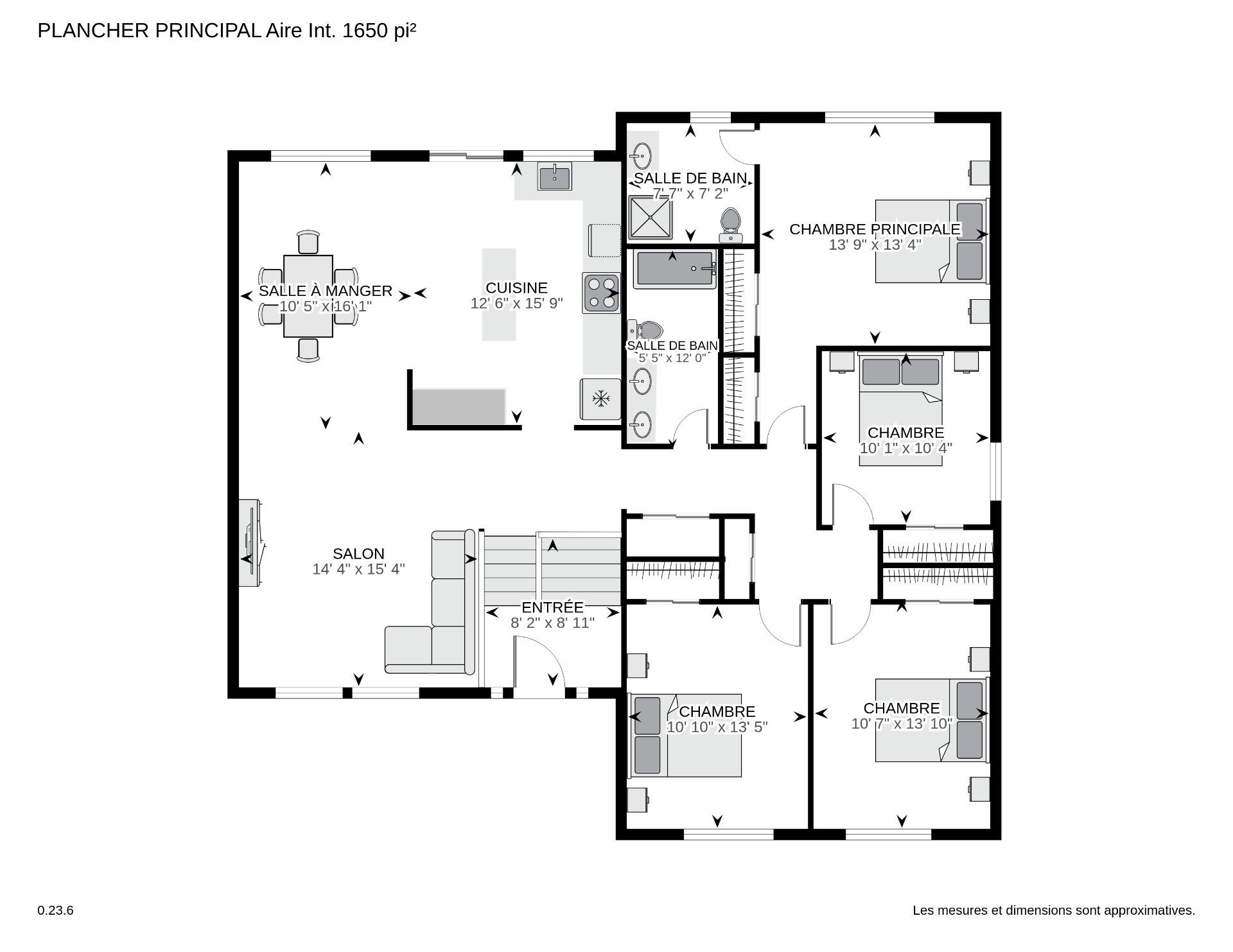 | Salon | Rez-de-chaussée | 14.4x15.4 P | Bois | |