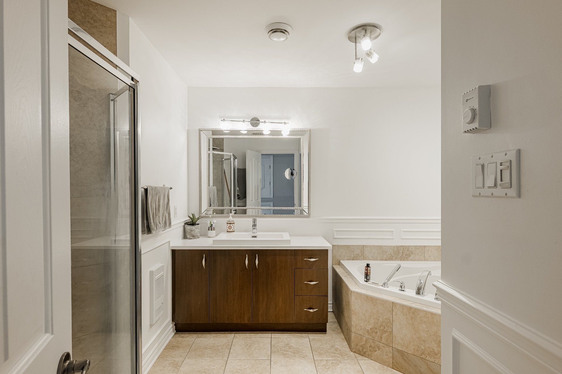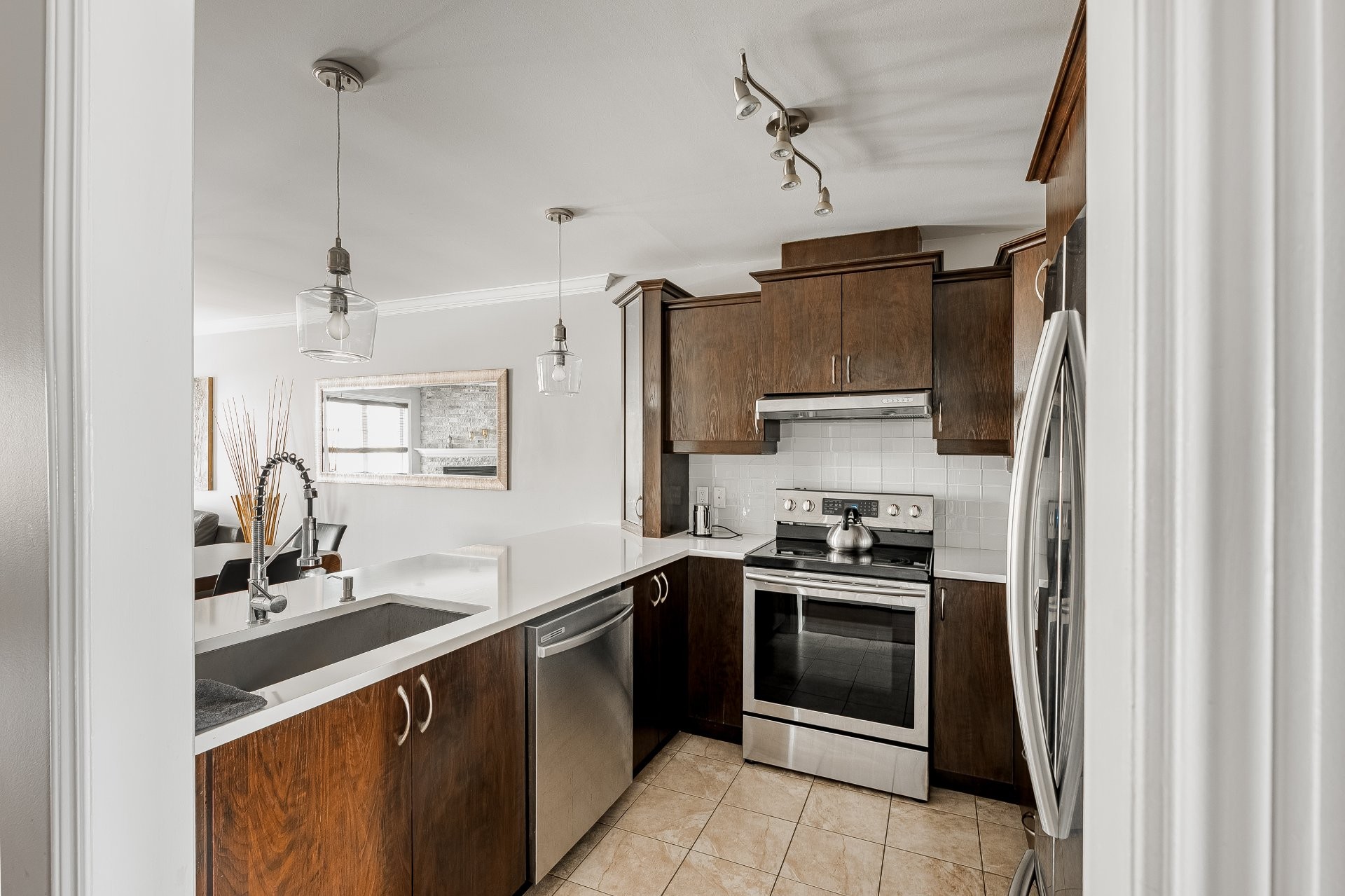 Bienvenue dans ce magnifique condo lumineux de 2 chambres à coucher et 1 salle de bain, plein de charme et de style ! La cuisine moderne est dotée de superbes comptoirs en quartz, assortis à la vanité élégante de la salle de bain. Les espaces de vie sont accueillants et baignés de lumière naturelle, offrant un confort au quotidien. Profitez également d'un garage intérieur privé ainsi que d'un espace de stationnement extérieur. Parfait pour un premier acheteur ou pour simplifier votre quotidien. Une propriété pétillante à ne pas manquer!