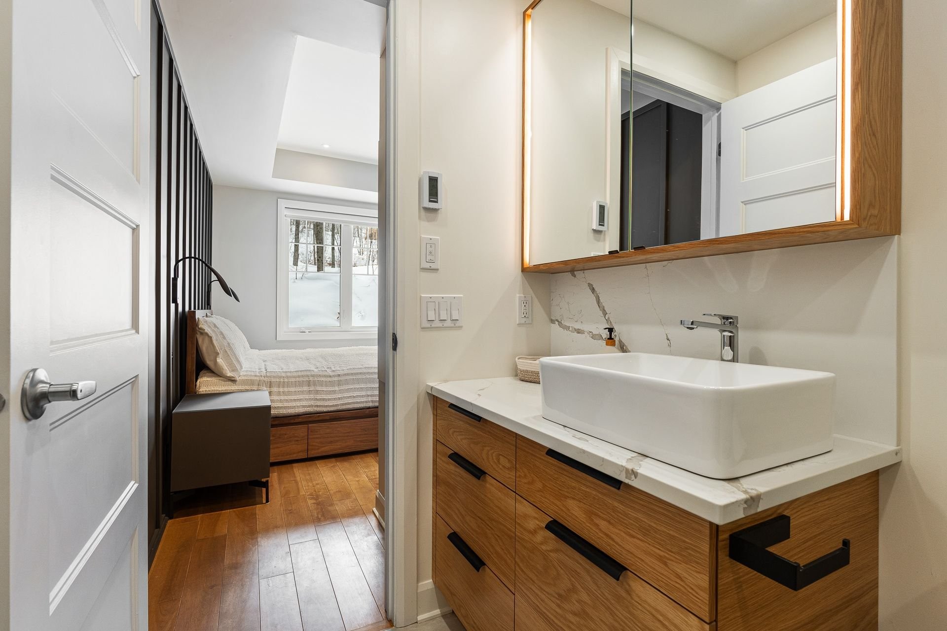 Occasion rare d'acquérir un condo ski-in/ski-out au rez-de-chaussée à Bromont. Découvrez l'art de vivre en montagne dans cette résidence moderne de 2 chambres avec garage et espace de rangement, offrant un accès direct aux pistes ainsi qu'une intimité exceptionnelle à l'année. Concept ouvert avec foyer au gaz et coin café sur mesure, idéal pour le quotidien et les fins de semaine en famille. Les résidents bénéficient également d'une piscine extérieure ainsi que de sentiers, parfaits pour la randonnée, le ski de fond et le vélo. Parfait comme pied-à-terre pour les amateurs de plein air ou comme résidence clé en main à une heure de Montréal.