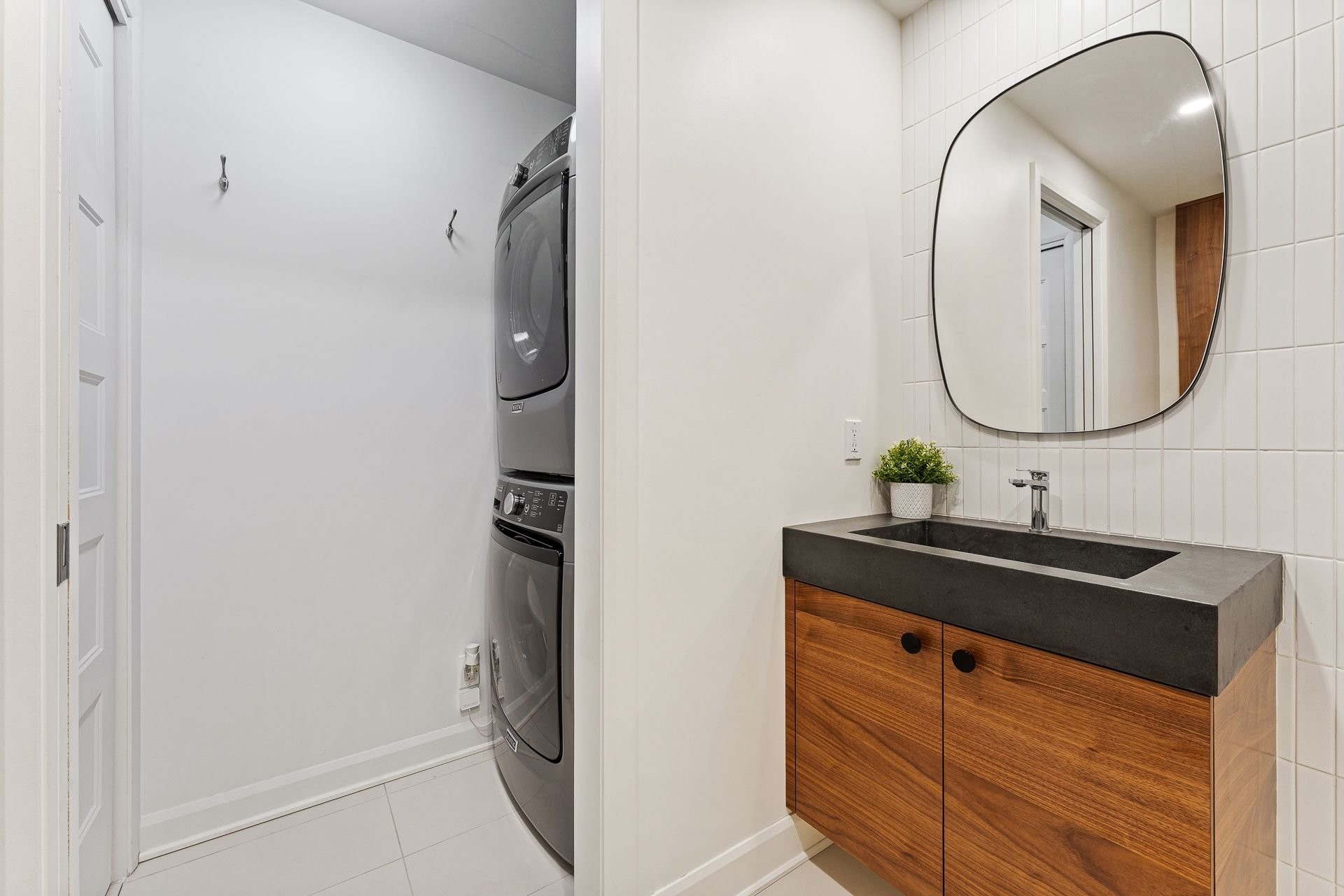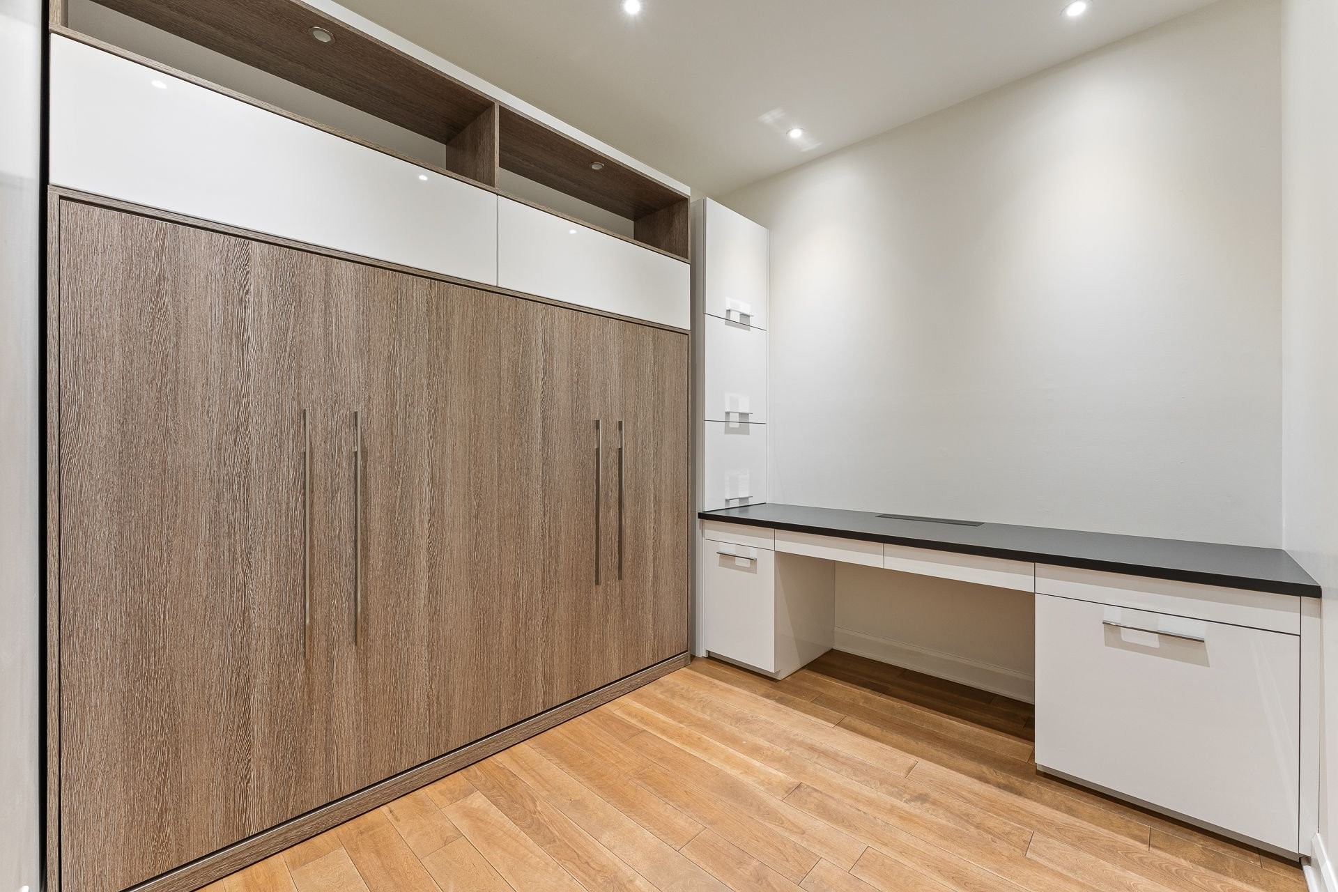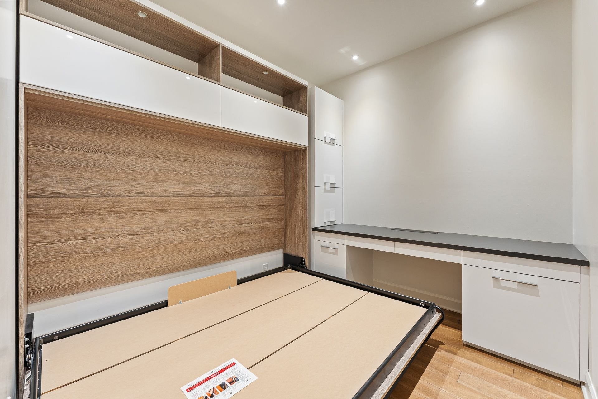 Lave-vaiselle, Cuisinière, Hotte, Stores, Cellier, Laveuse, Sécheuse, Lit mural (sans matelas), Micro-onde, Étagère mural et 2 lumières de la chambre principale