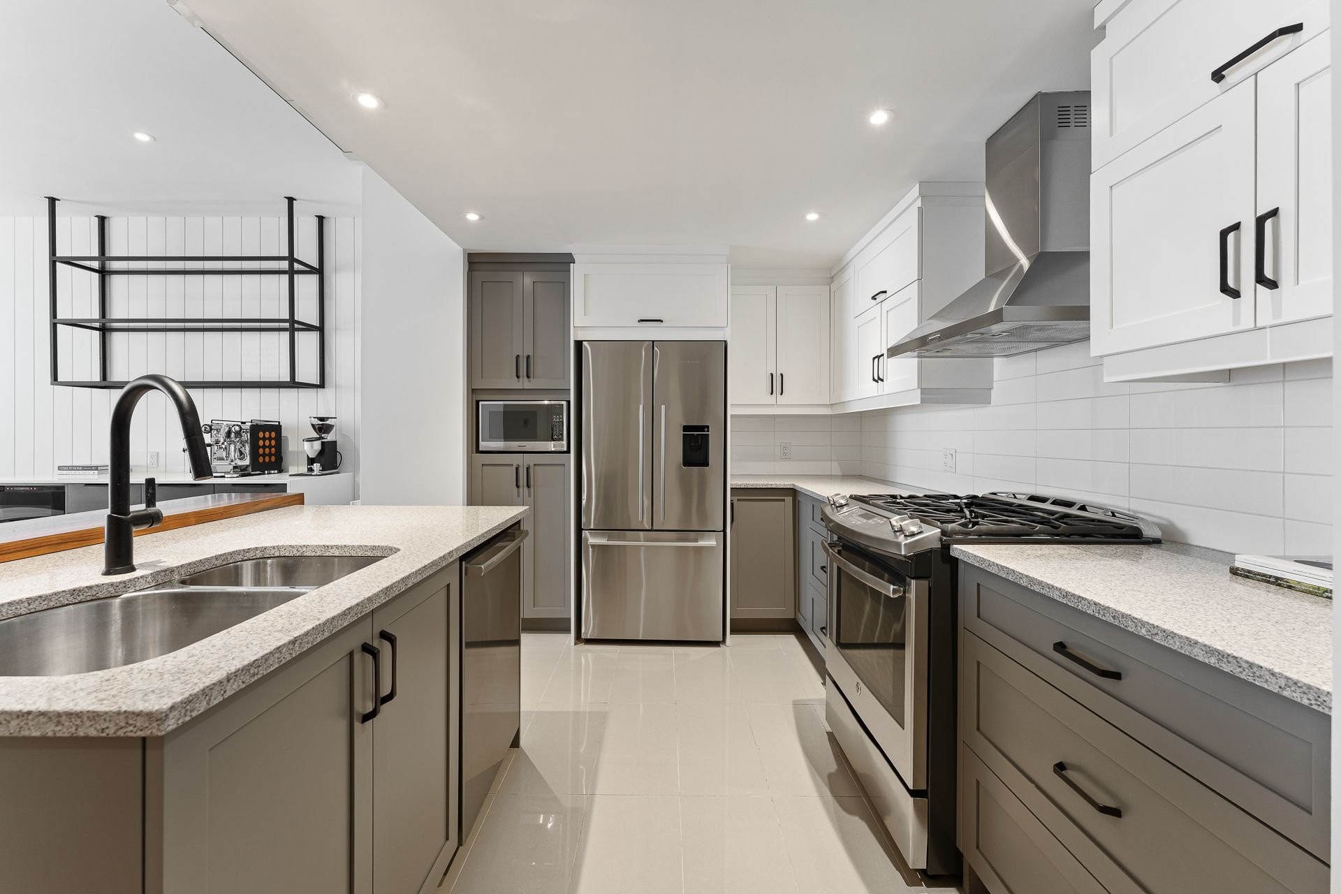 Réfrigérateur, Télé avec bar son, 2 vélos sur support vélo garage, Bureau mobile du Den (petite chambre), machine et moulin à café Rocket, Les meubles (2 chaise tabourets comptoir, table salle diner et les 4 chaises, divan salon, table ronde salon, Lit chambre, 2 tables chevet chambre, chaise cuir gris chambre, table d'appoint noir chambre, lampe sur pied chambre, Banc d'entrée noir)