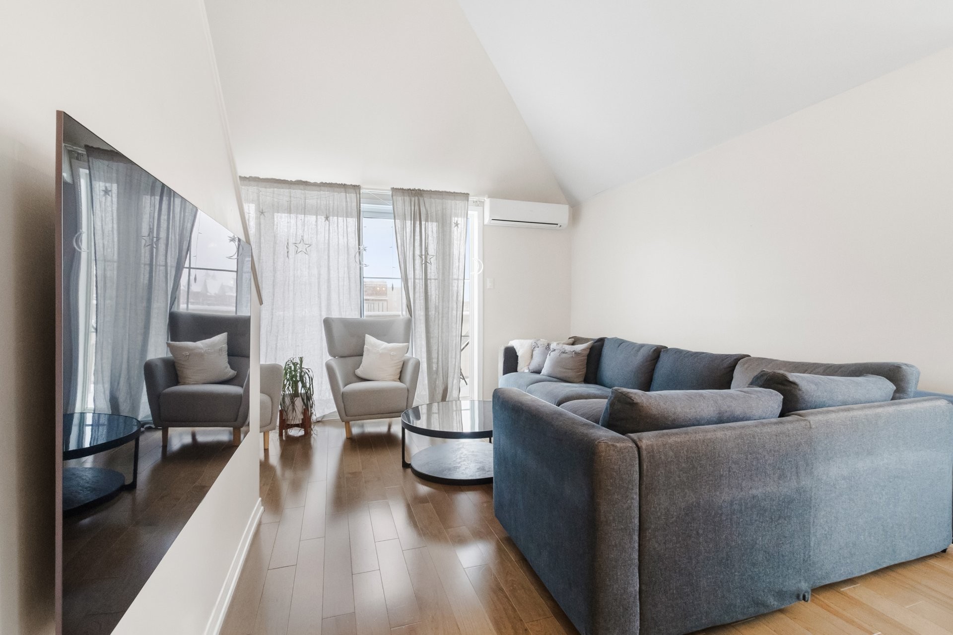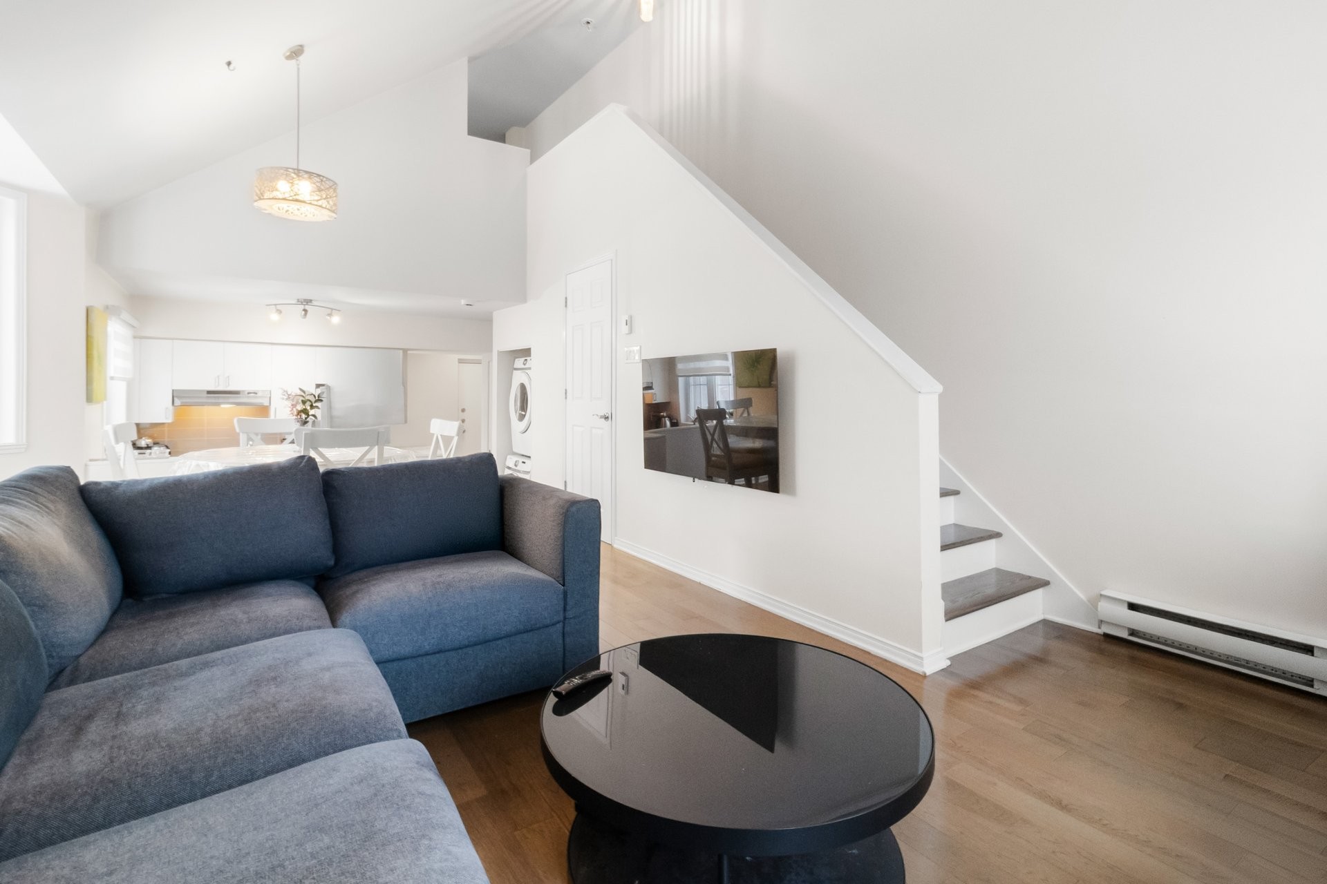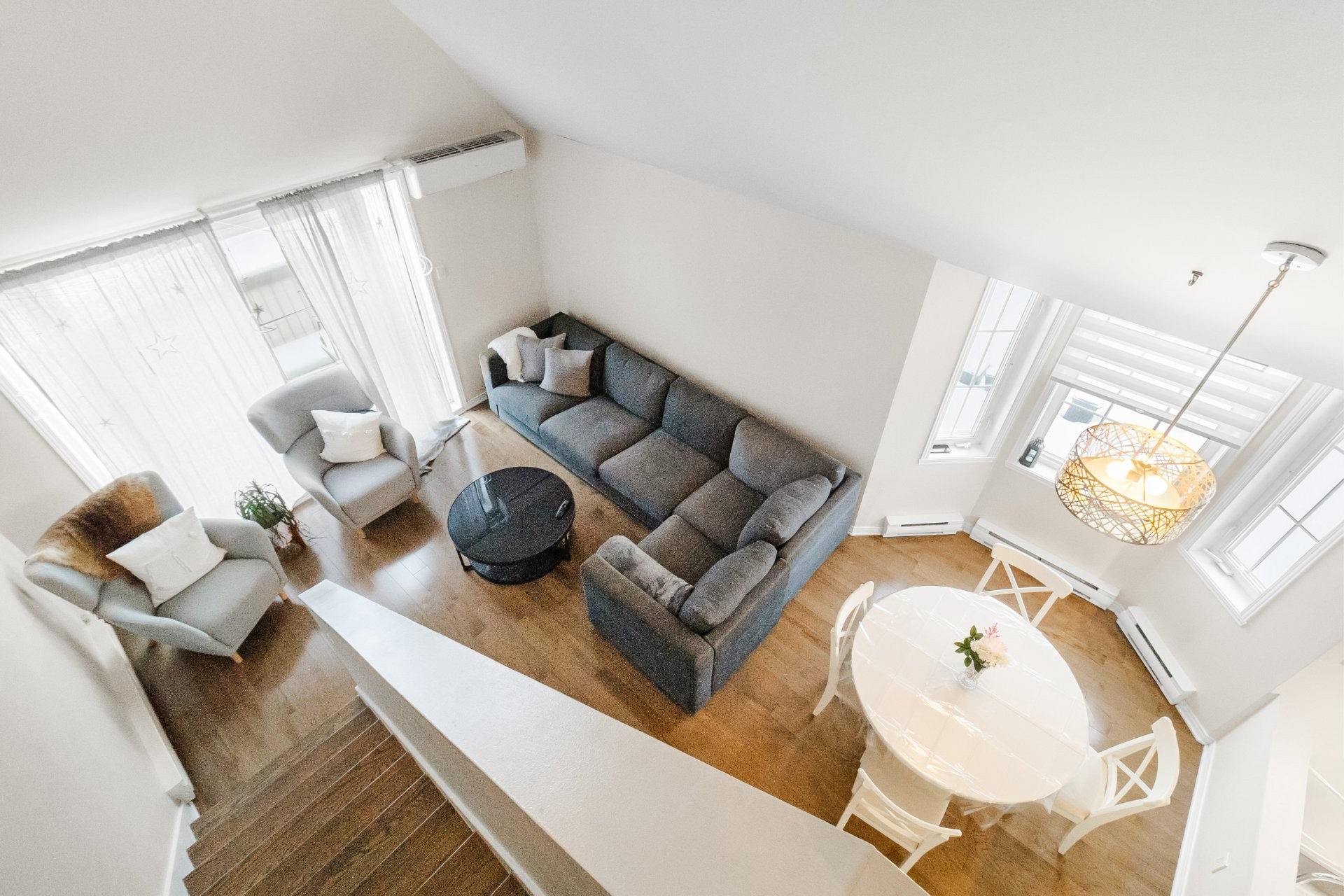 Unité lumineuse et aérée de 1 chambre sur deux niveaux, avec chambre en mezzanine et plafonds de 15 pieds. Cuisine rénovée avec comptoirs en quartz, salle à manger avec baie vitrée et salle de bain rénovée. L'unité comprend un stationnement intérieur, un espace de rangement et un climatiseur mural. Située à 8 minutes de la station REM de Bois-Franc, avec accès facile au transport en commun et aux principales autoroutes. À proximité de l'aéroport YUL, de restaurants, d'épiceries et boulangeries à distance de marche, ainsi que de plusieurs gyms. Disponible à compter du 1er juillet.