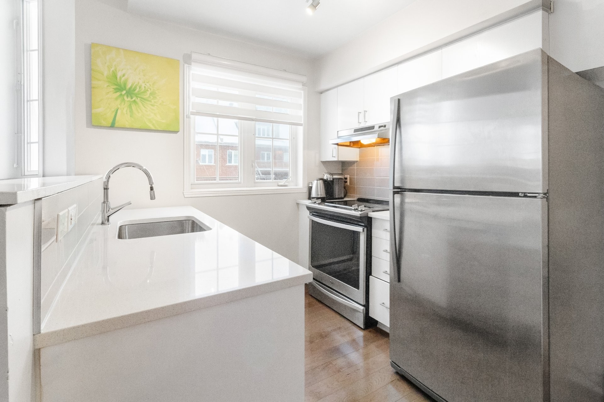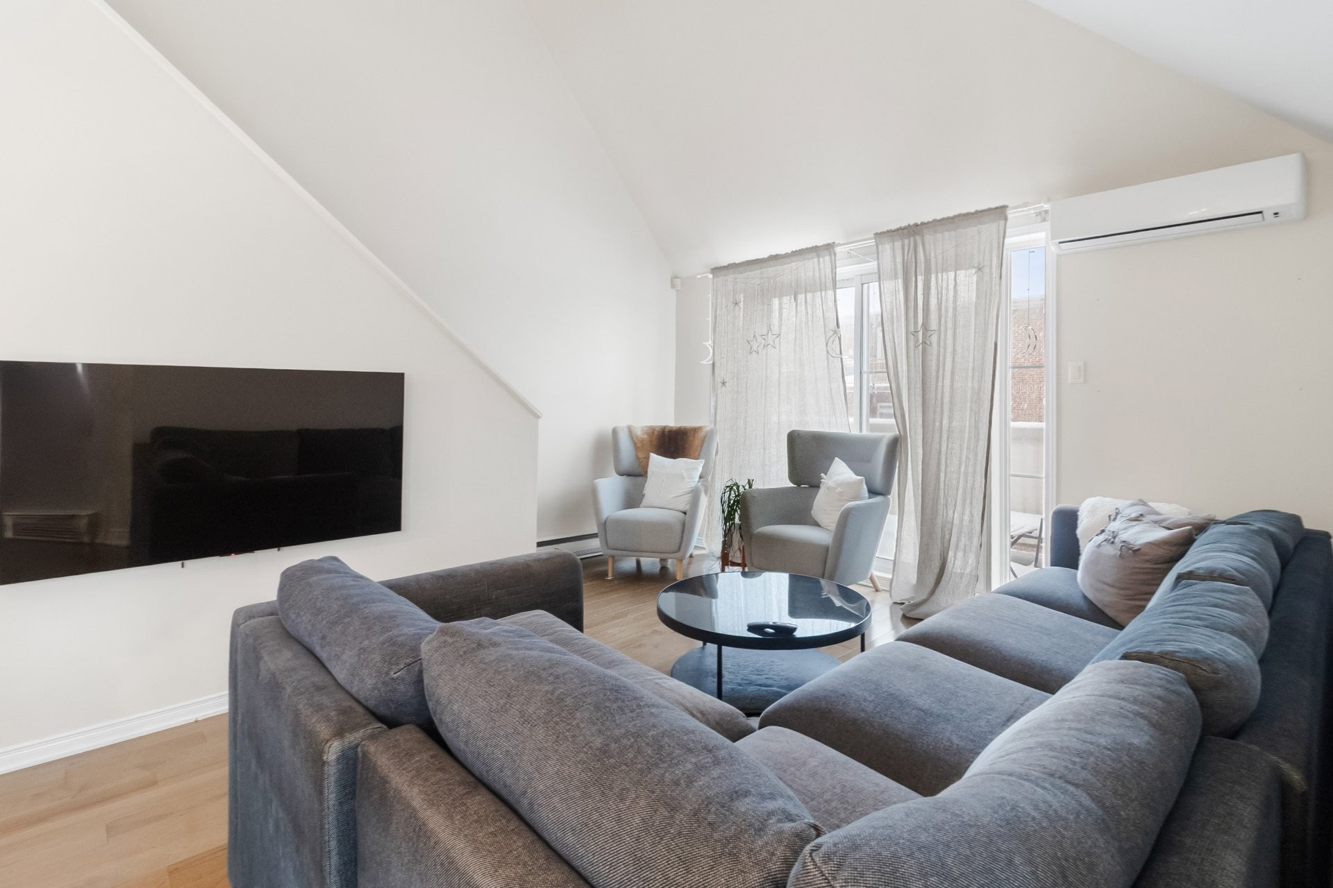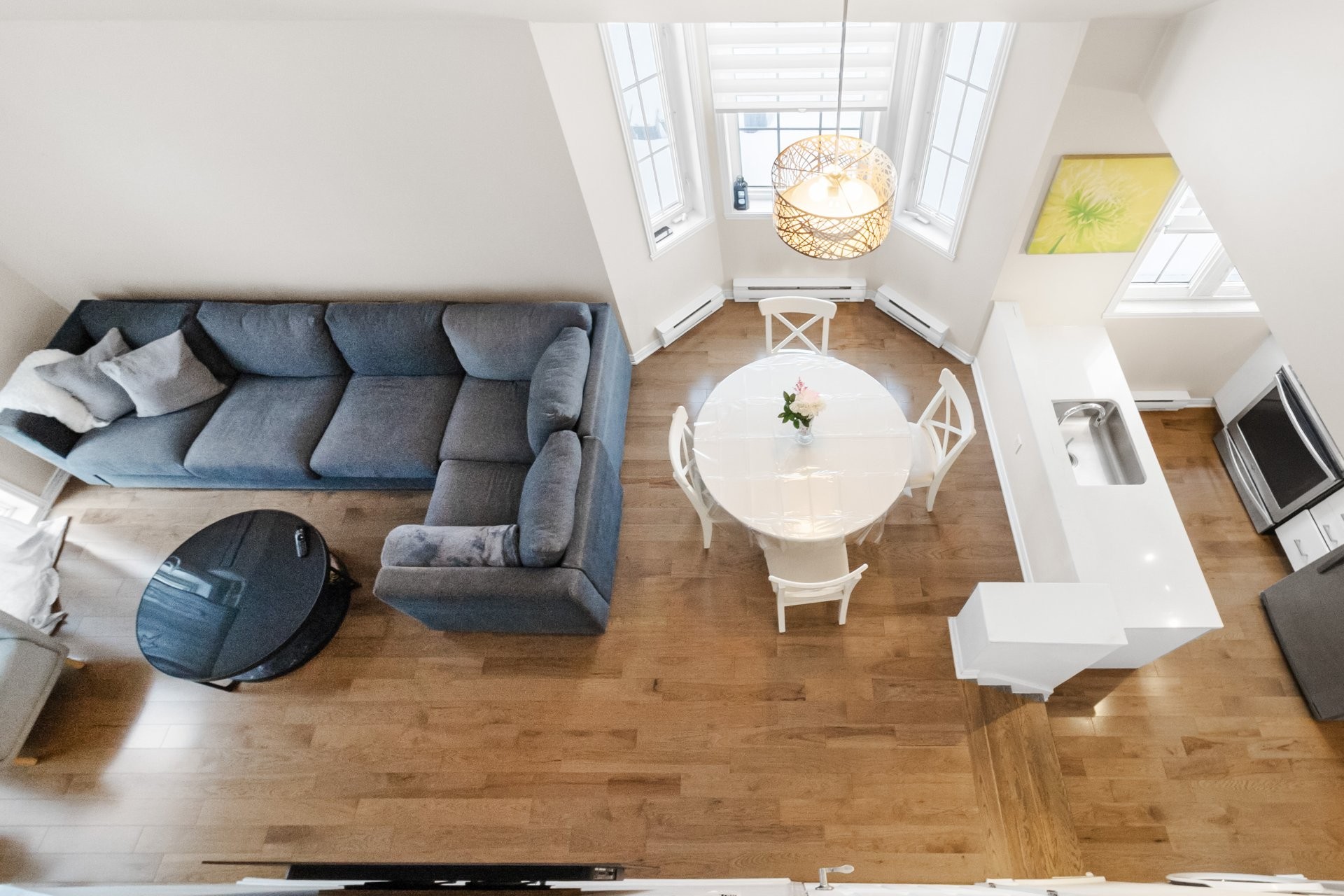 Unité lumineuse et aérée de 1 chambre sur deux niveaux, avec chambre en mezzanine et plafonds de 15 pieds. Cuisine rénovée avec comptoirs en quartz, salle à manger avec baie vitrée et salle de bain rénovée. L'unité comprend un stationnement intérieur, un espace de rangement et un climatiseur mural. Située à 8 minutes de la station REM de Bois-Franc, avec accès facile au transport en commun et aux principales autoroutes. À proximité de l'aéroport YUL, de restaurants, d'épiceries et boulangeries à distance de marche, ainsi que de plusieurs gyms. Disponible à compter du 1er juillet.