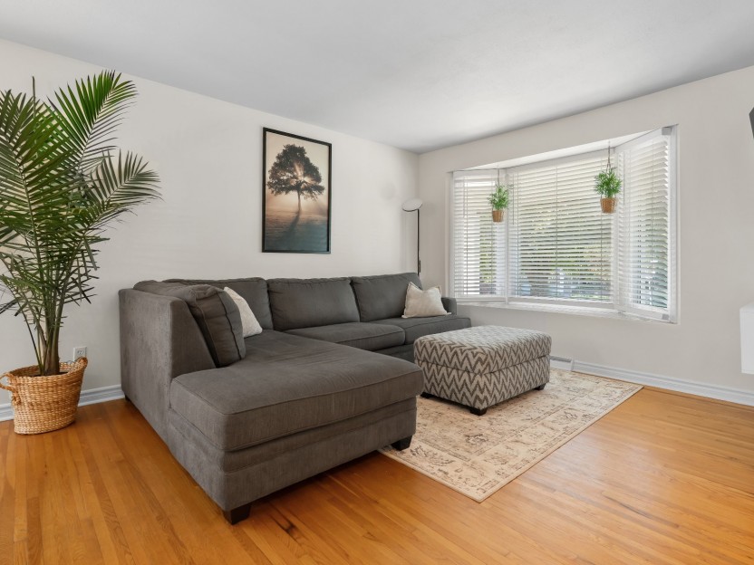 Salon | Rez-de-chaussée | 16.8x17.8 P | Bois | Fenêtres à hauteur du plafond |