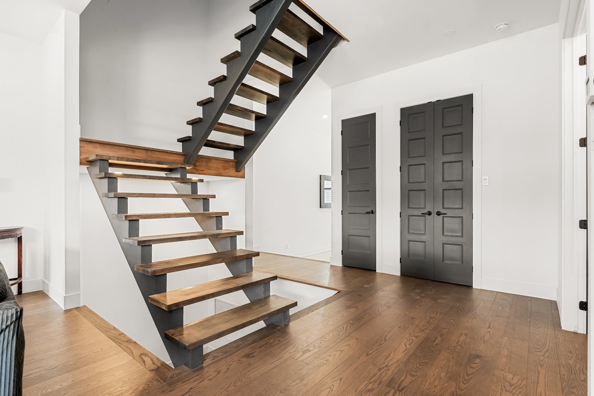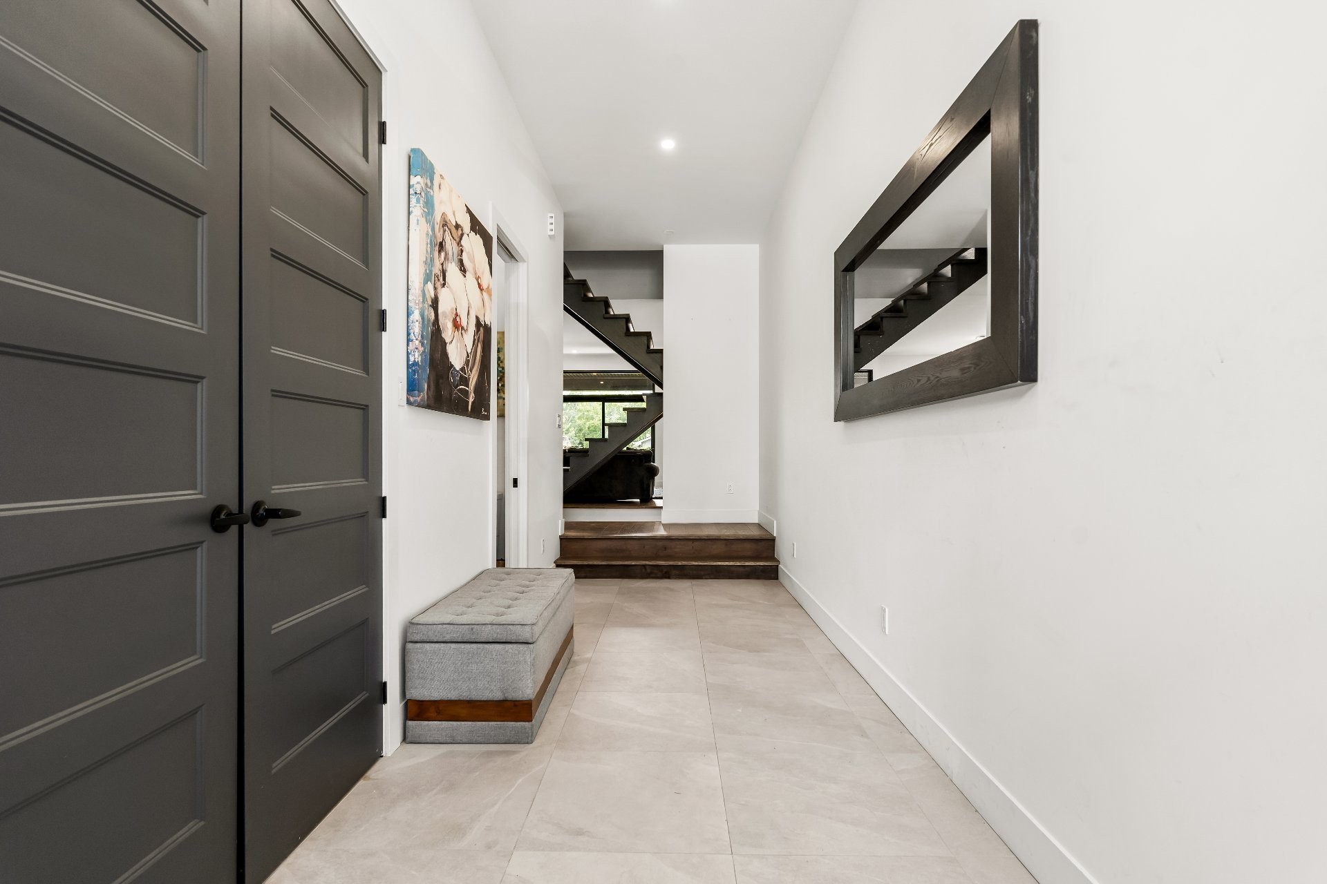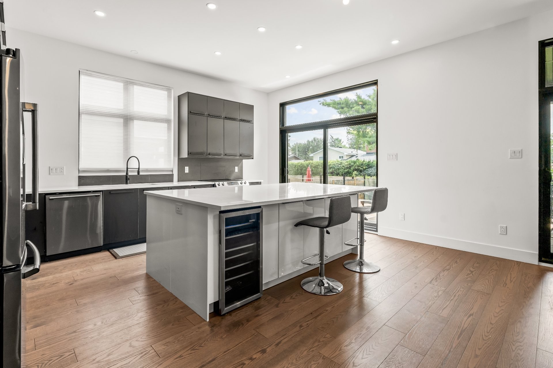 Résidence moderne et élégante de 4+1 chambres, récemment construite avec une qualité de finition exceptionnelle. Offrant des espaces ouverts raffinés, plafonds de 9 à 12 pieds, escalier flottant architectural, cuisine de chef avec îlot et fenêtres pleine hauteur. Toutes les chambres disposent d'une salle de bain attenante et d'un walk-in, dont la suite principale avec balcon privé. Accès extérieur au sous-sol, grande terrasse, garage double, entrée en pavé uni. À deux pas de l'eau, du parc, du Collège Beaubois et du futur REM.